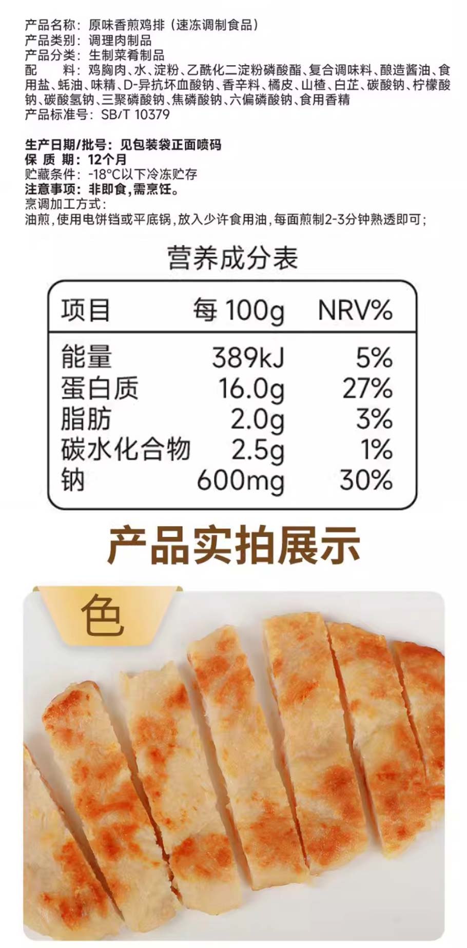 金锣香煎鸡排 500g/袋(5片) 20袋/件