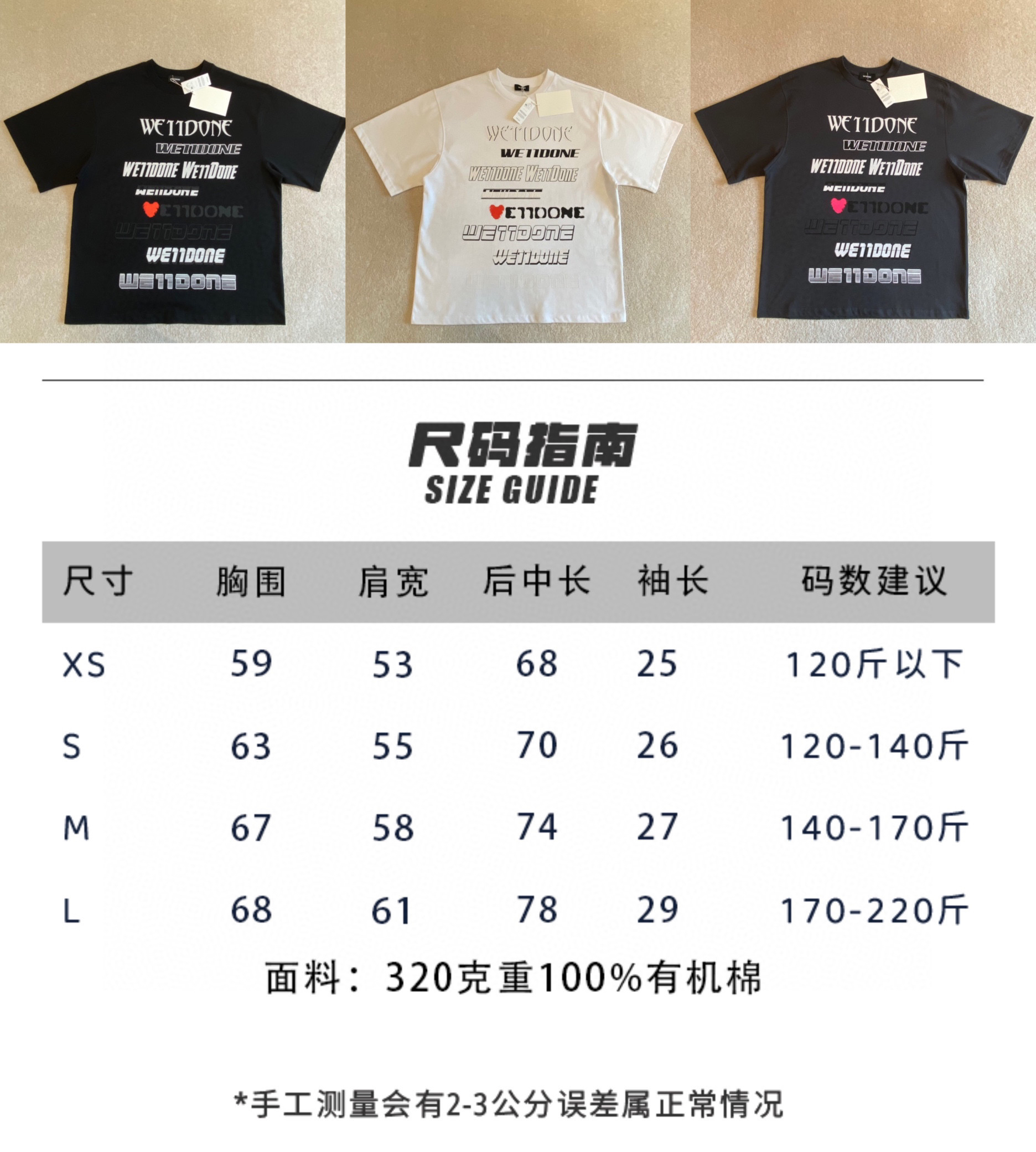 We11done23春夏超大版型有机棉弹幕印花T恤