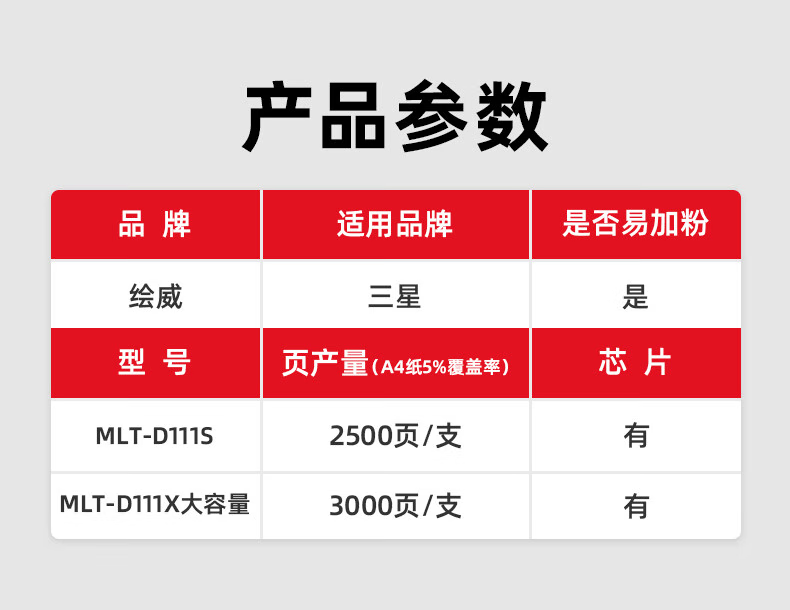 绘威商专 硒鼓MLT-D111S 适用三星M2020 M2021 M2070 M207 M2020W M2022W 1支