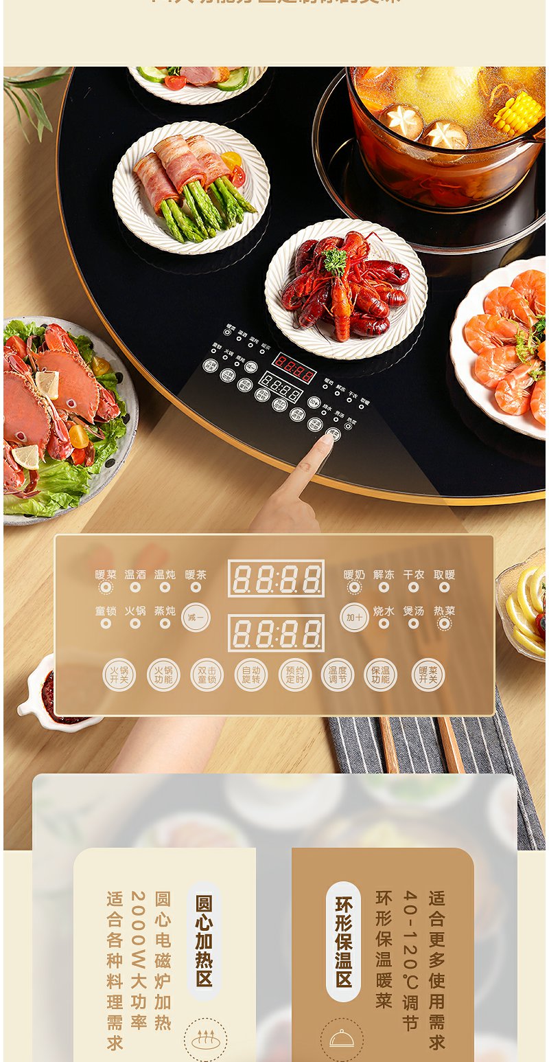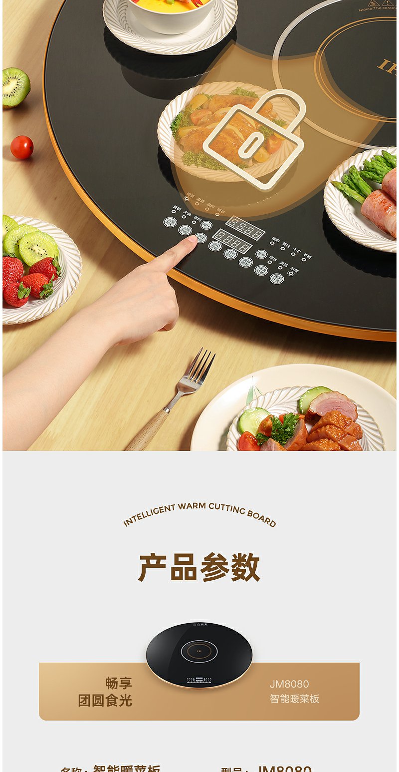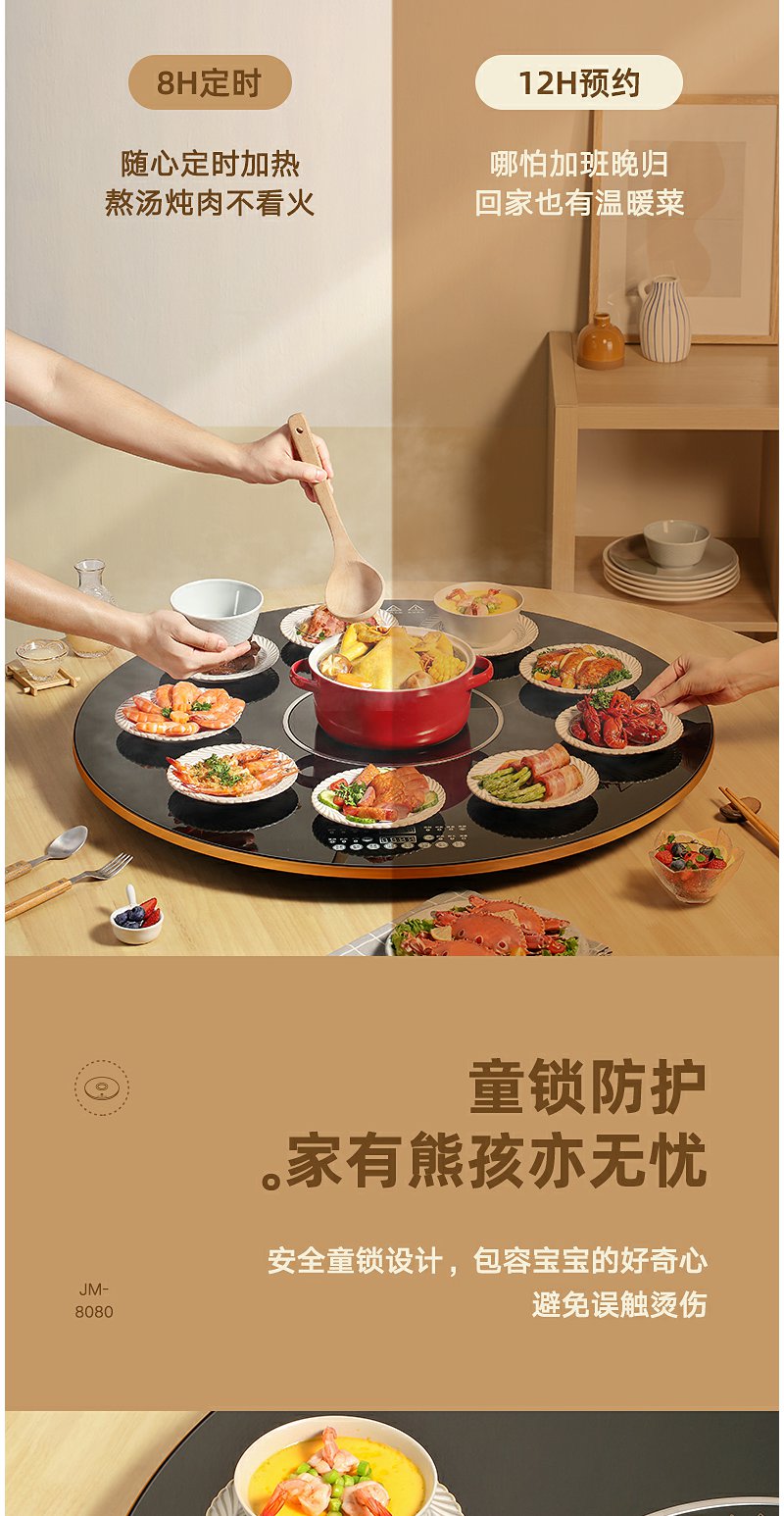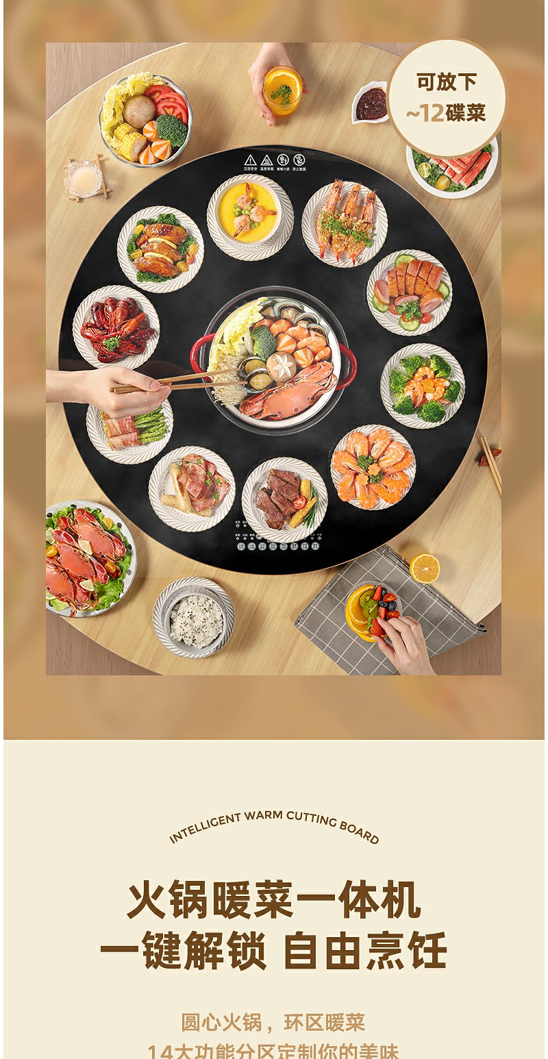 积米圆形饭菜保温板家用暖菜板热菜板加热旋转盘餐桌多功能神器园形手动8个菜园形手自动12个菜方形6个菜方形8个菜
