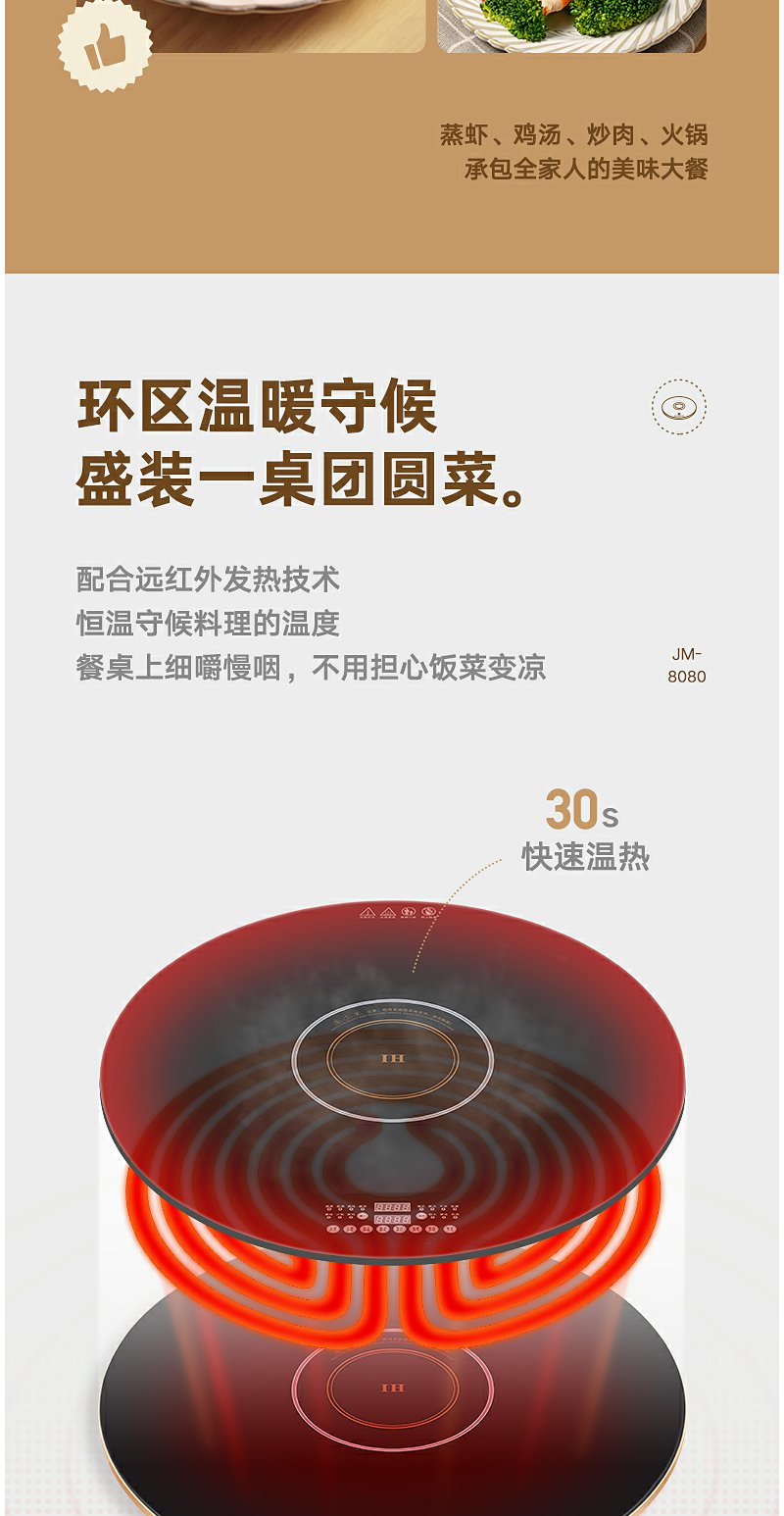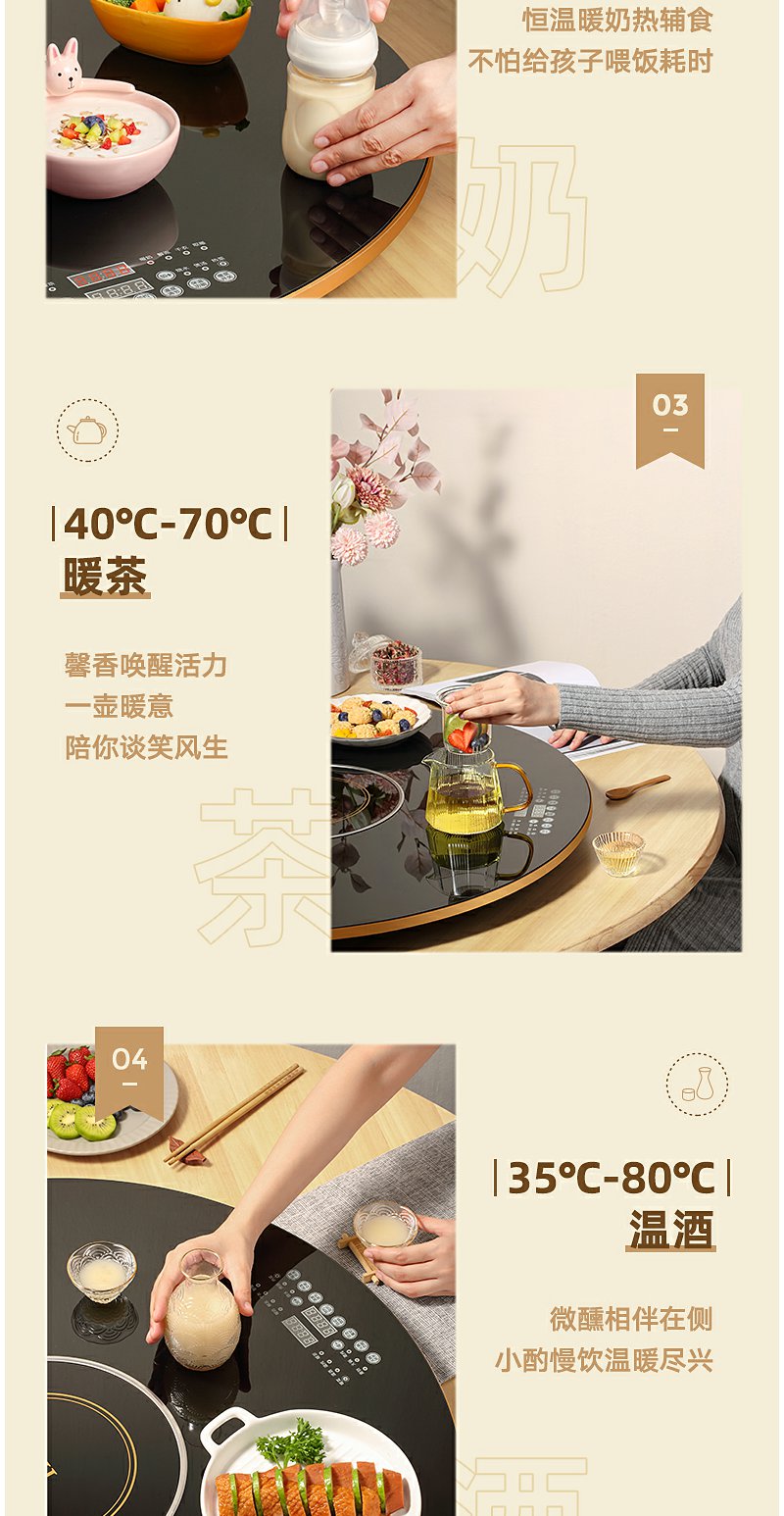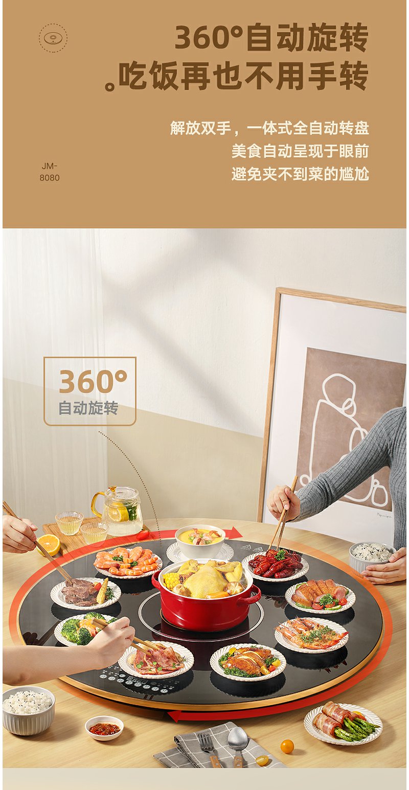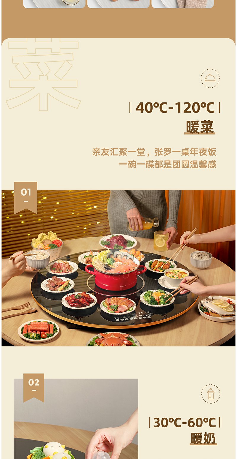 积米圆形饭菜保温板家用暖菜板热菜板加热旋转盘餐桌多功能神器园形手动8个菜园形手自动12个菜方形6个菜方形8个菜