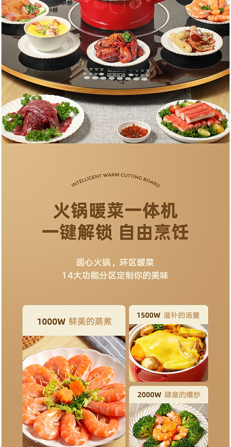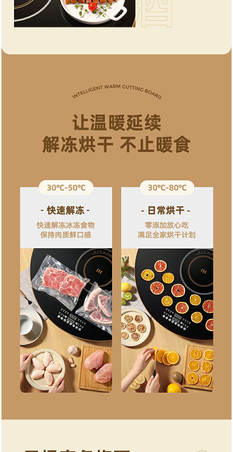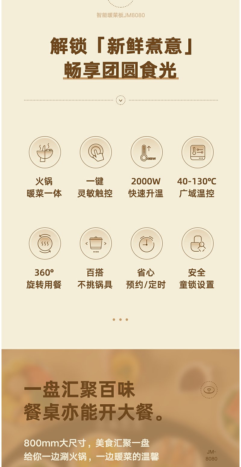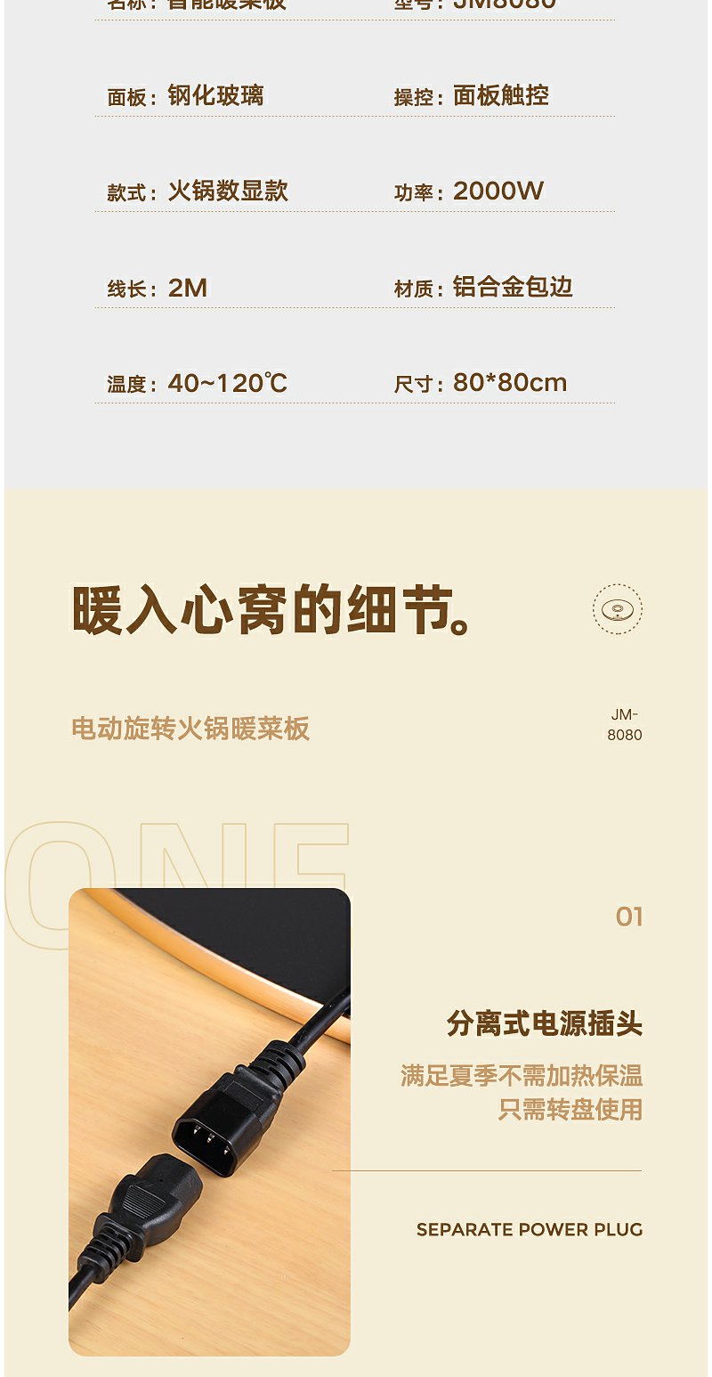 积米圆形饭菜保温板家用暖菜板热菜板加热旋转盘餐桌多功能神器园形手动8个菜园形手自动12个菜方形6个菜方形8个菜