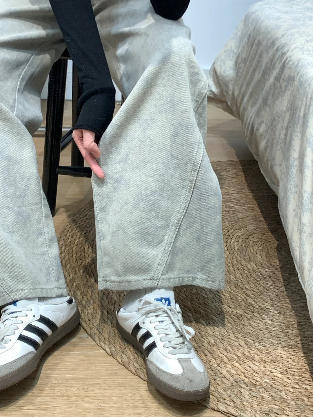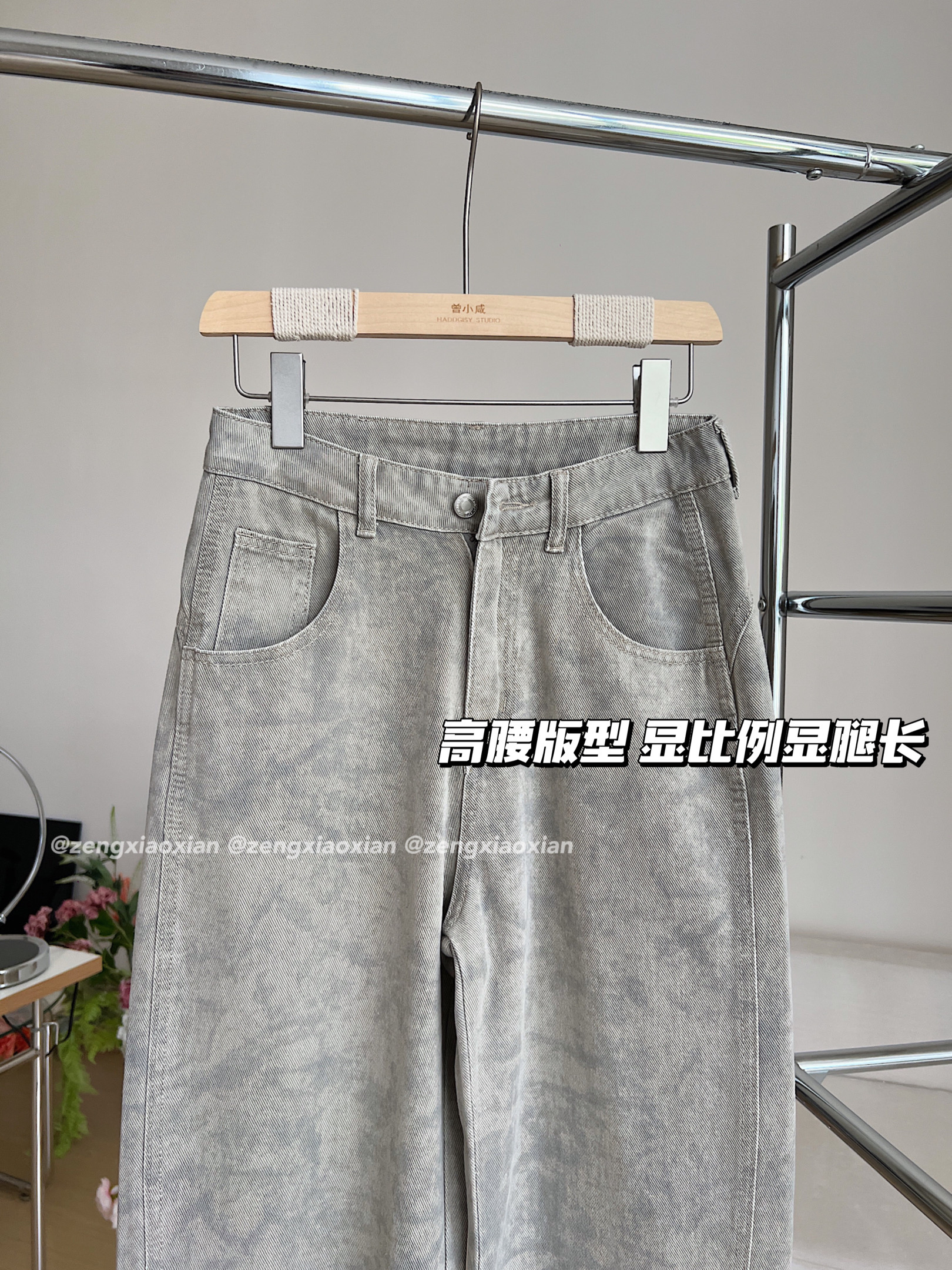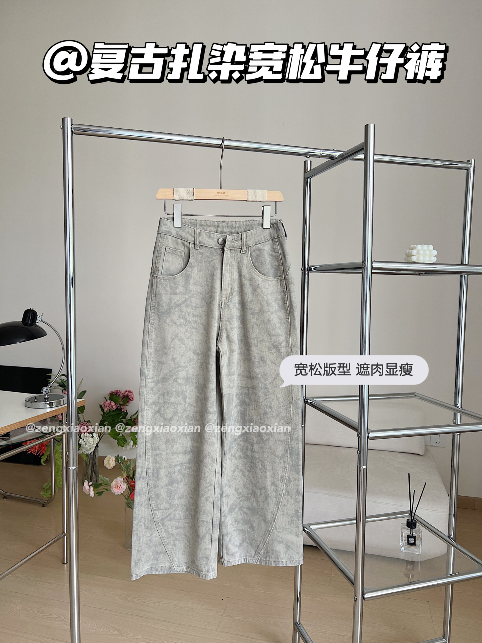 <曾小咸推荐> 复古扎染阔腿牛仔裤