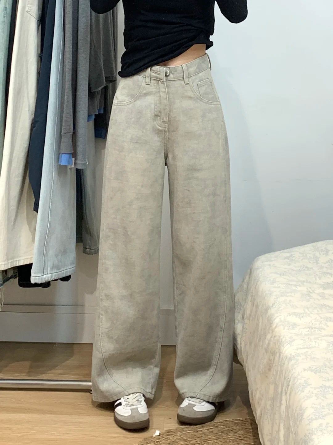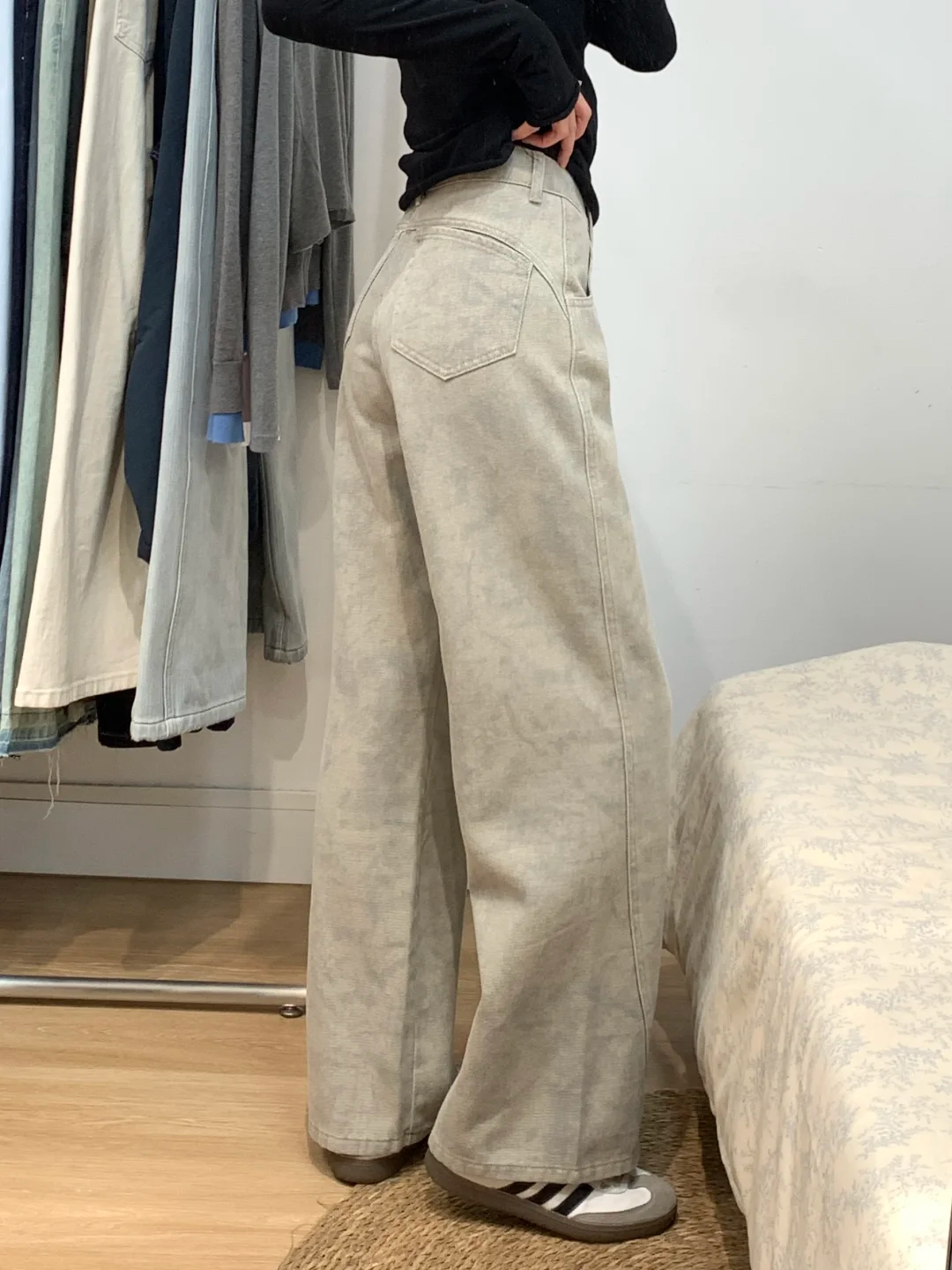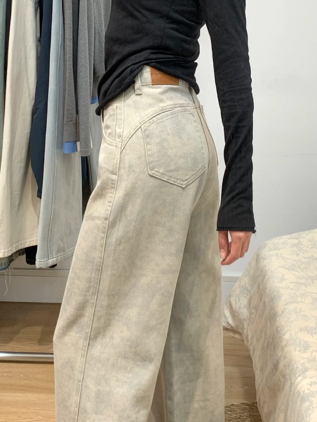 <曾小咸推荐> 复古扎染阔腿牛仔裤