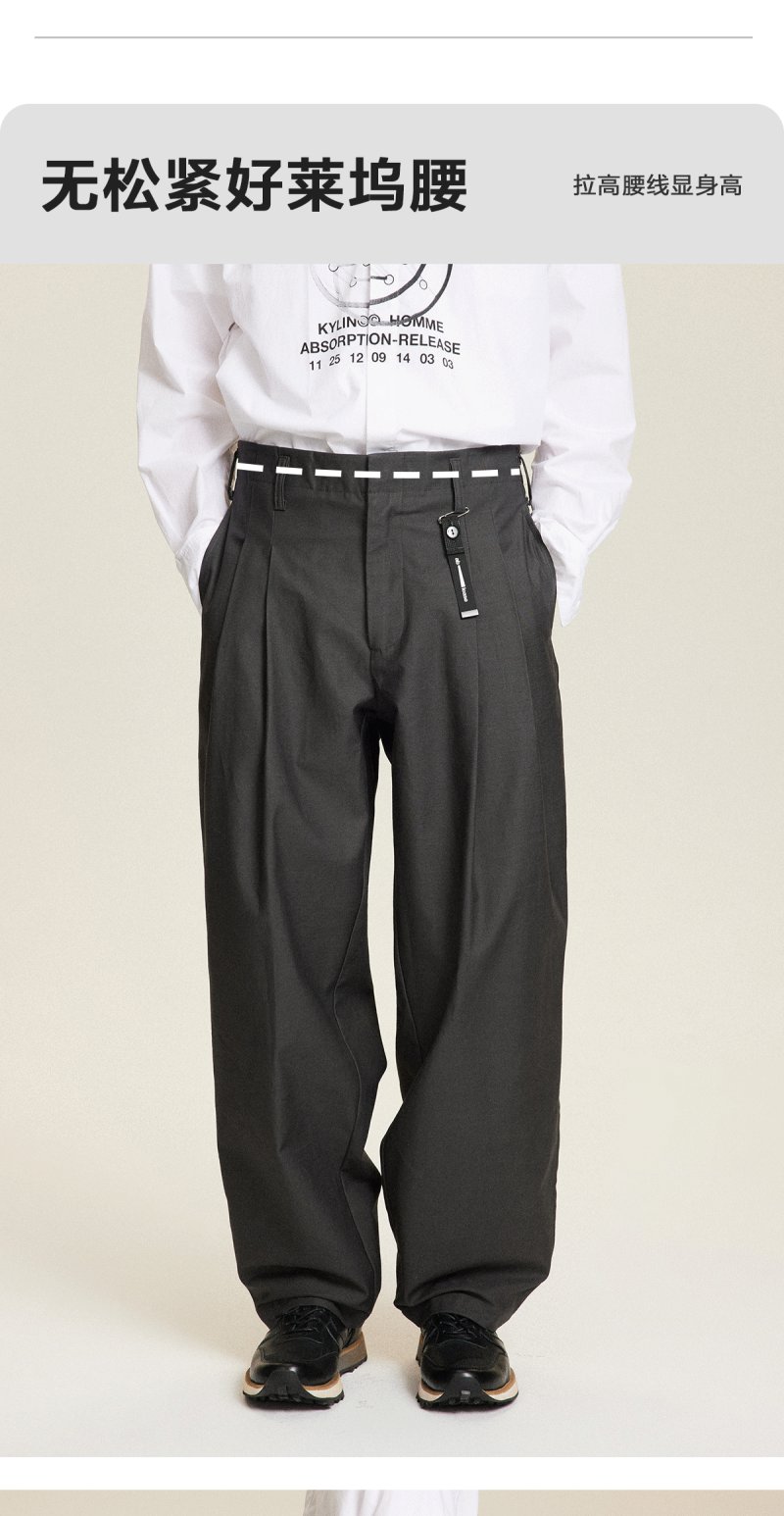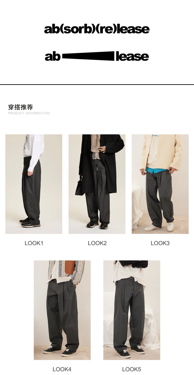 absorbrelease ab白噪灰色西装裤男宽松直筒西裤男士裤子休闲裤