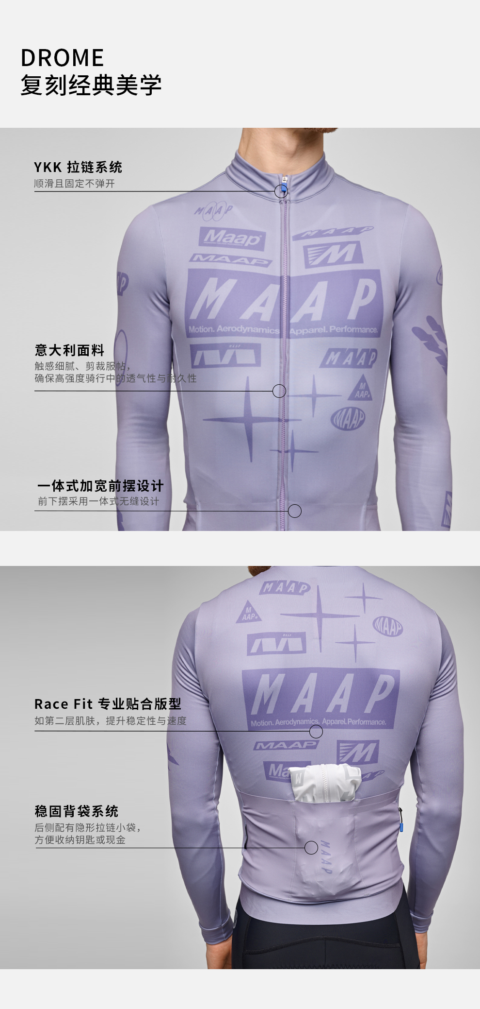 MAAP 男士 Drome 系列 加绒长袖骑行服 闪银�