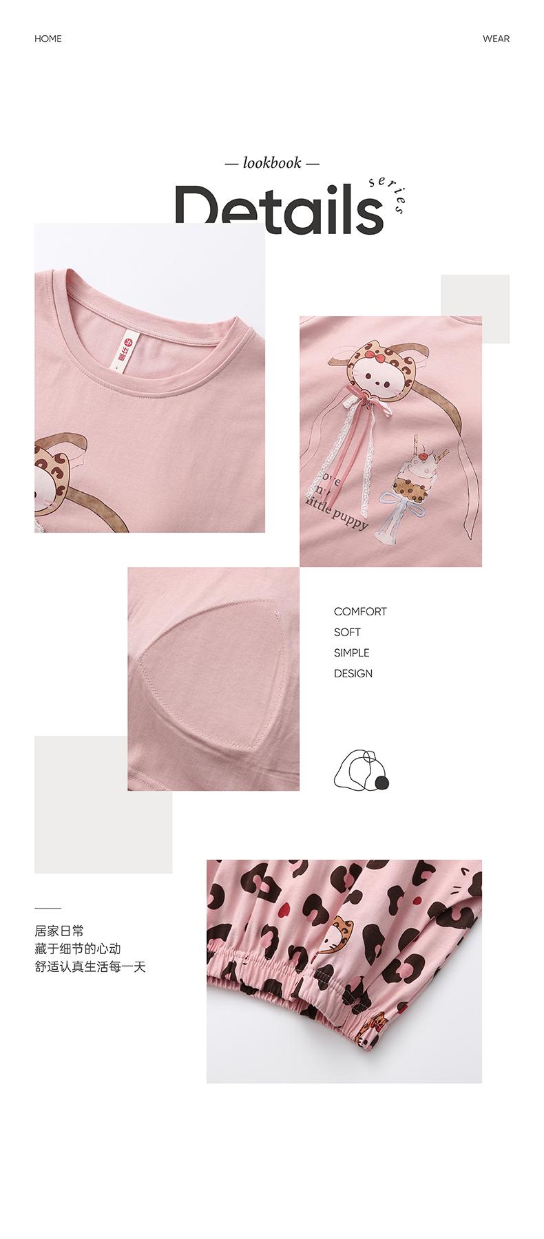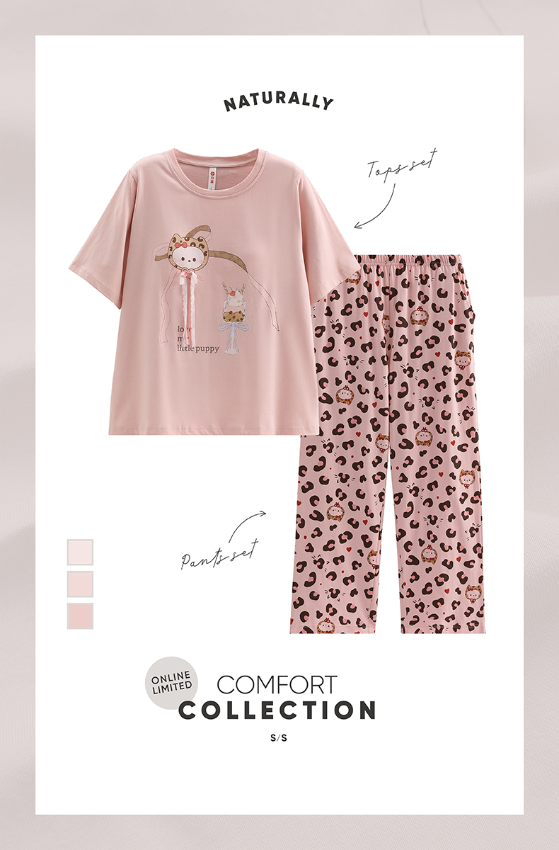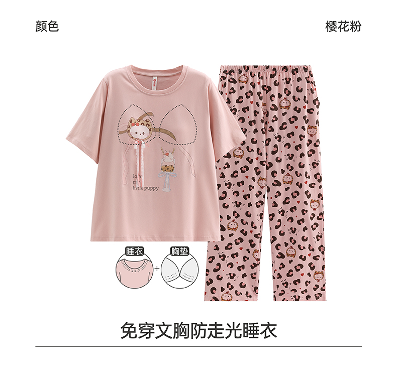 芬腾【带胸垫】防凸点新款女士睡衣春夏季纯棉短袖长裤家居服套装