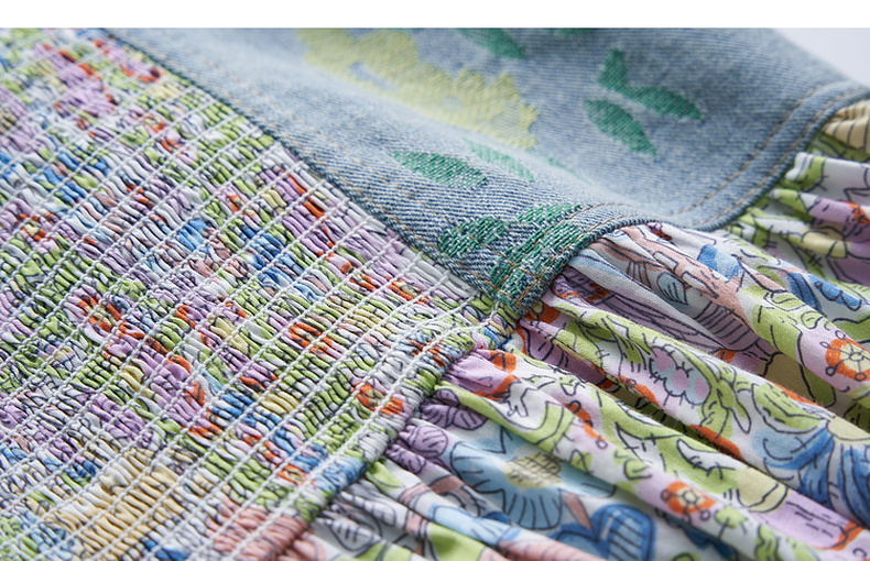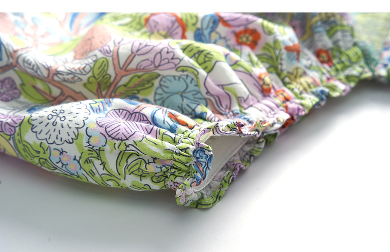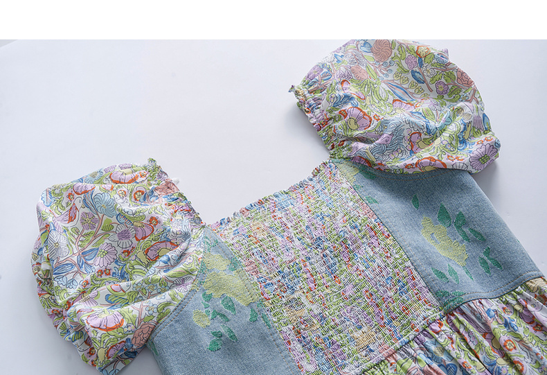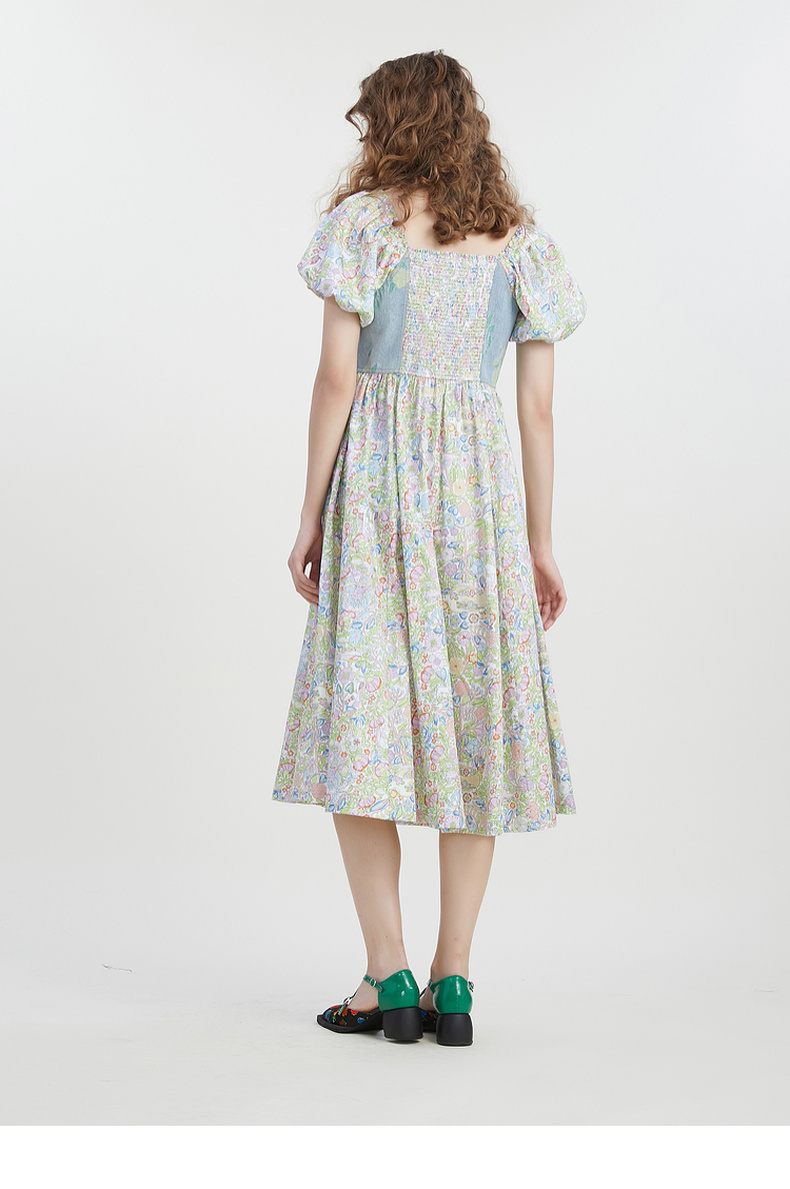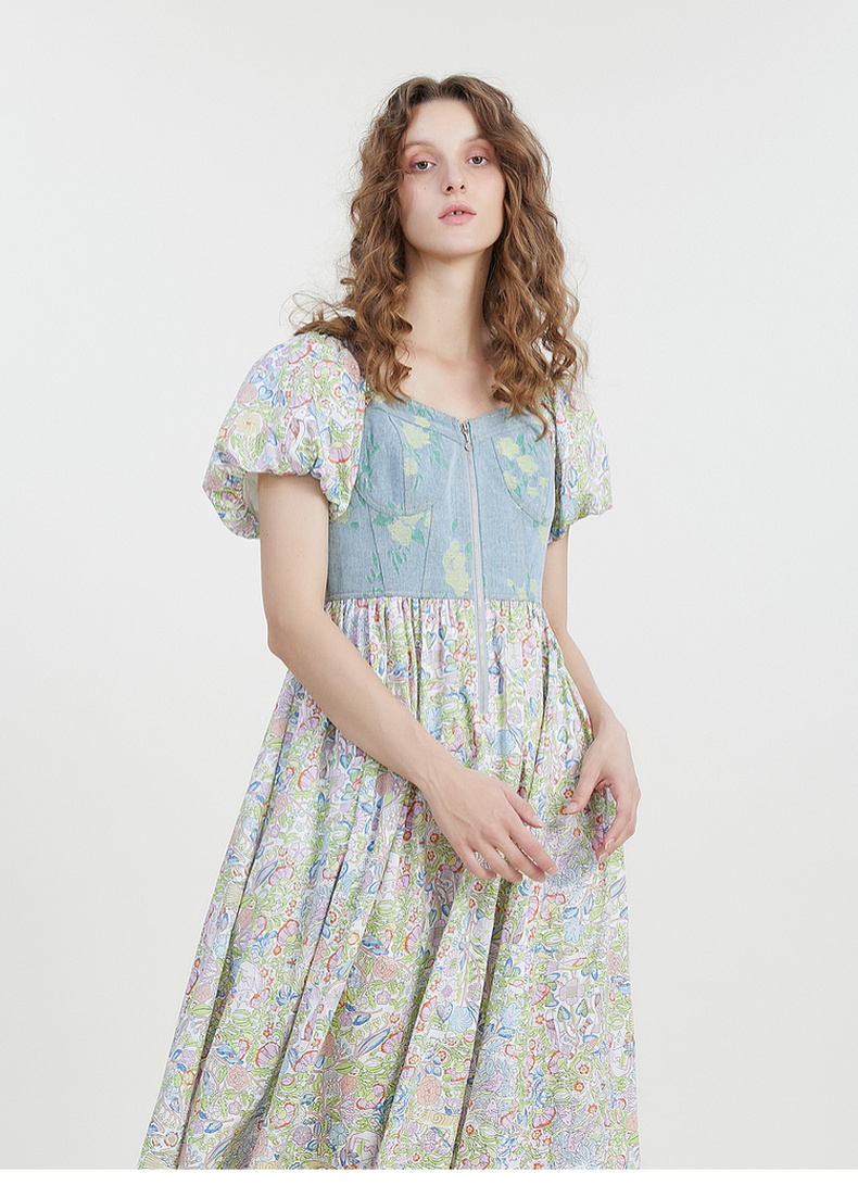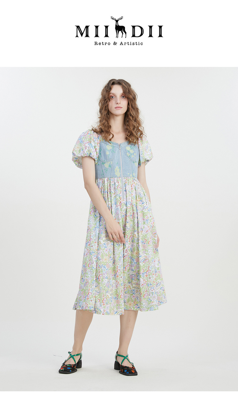 谜底碎花连衣裙短袖2023夏新款文艺拼接修身中长裙短袖232ML0543