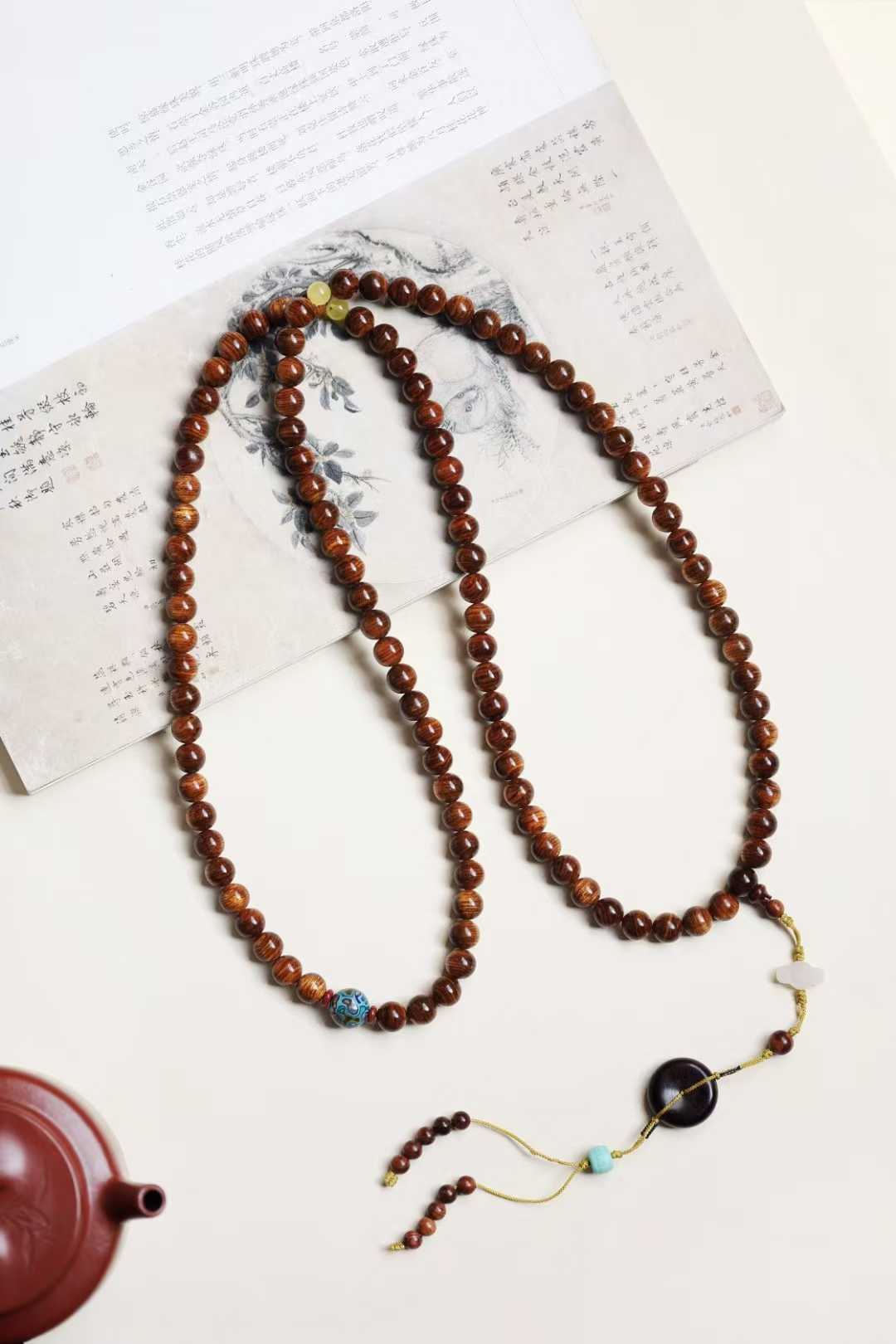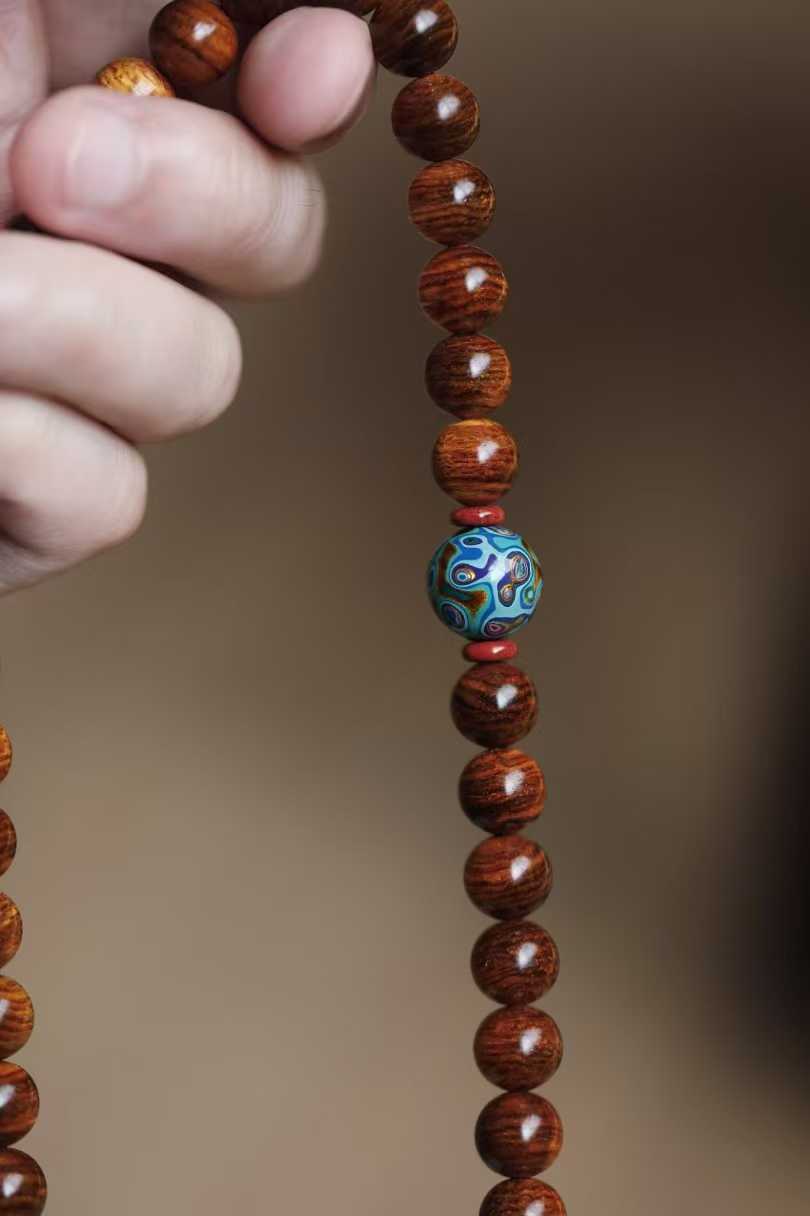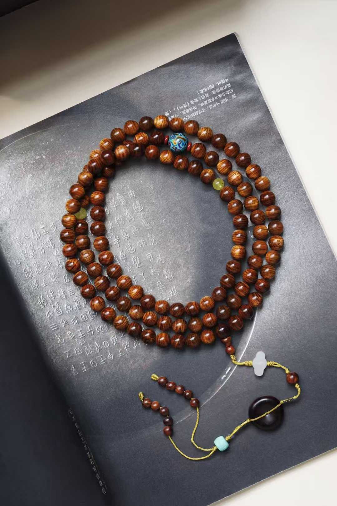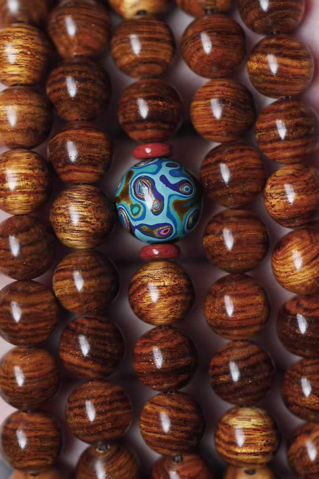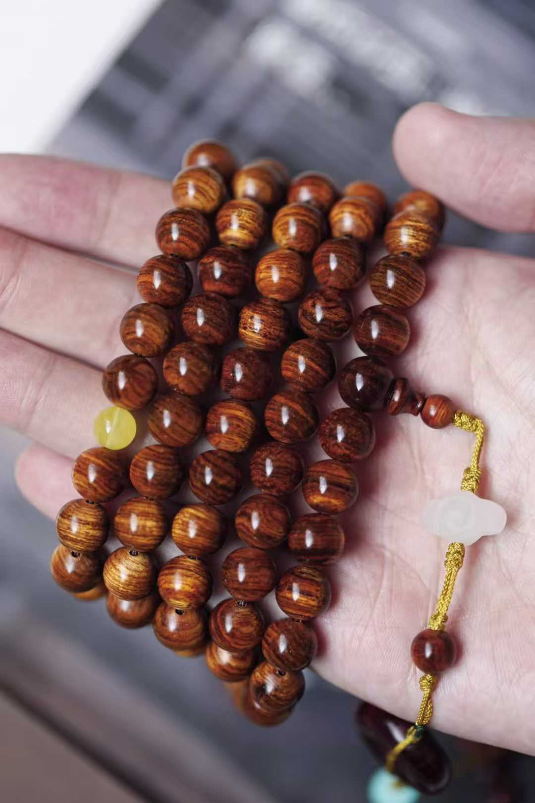 6050 海黄 绚丽山水纹手串1.0x108颗