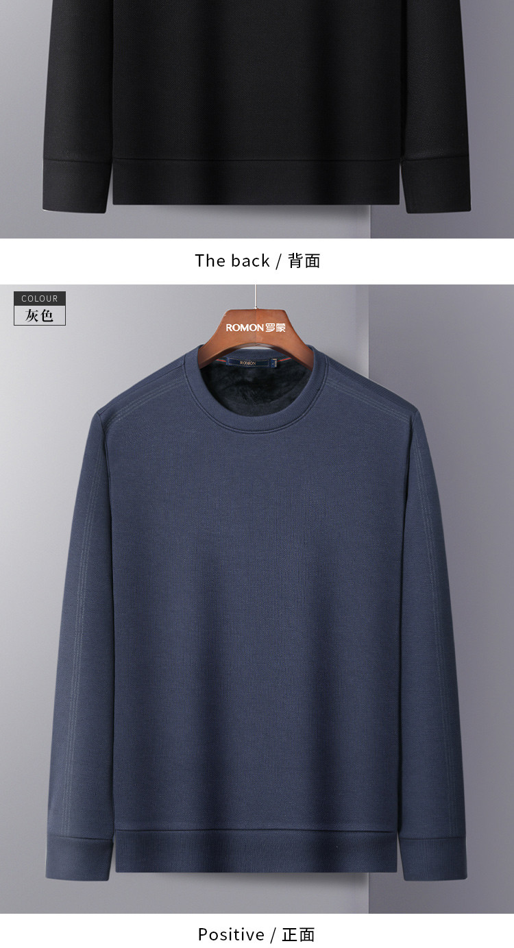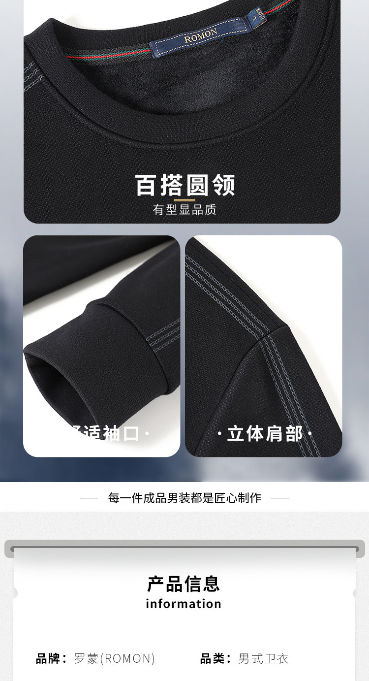 【加绒加厚】罗蒙秋冬保暖卫衣男士休闲学院风简约长袖T恤衫男