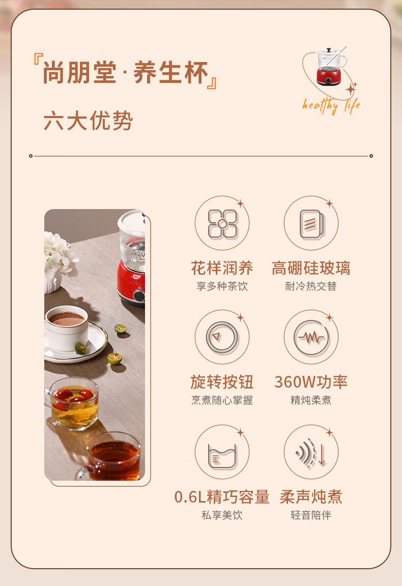 【多样屋专柜】尚朋堂养生壶家用办公室恒温养生杯600ML