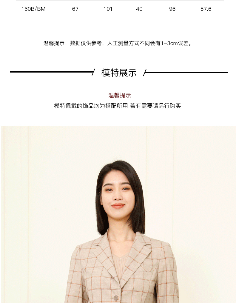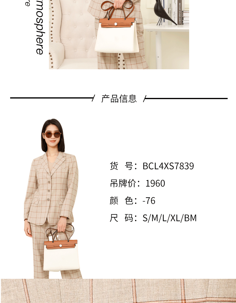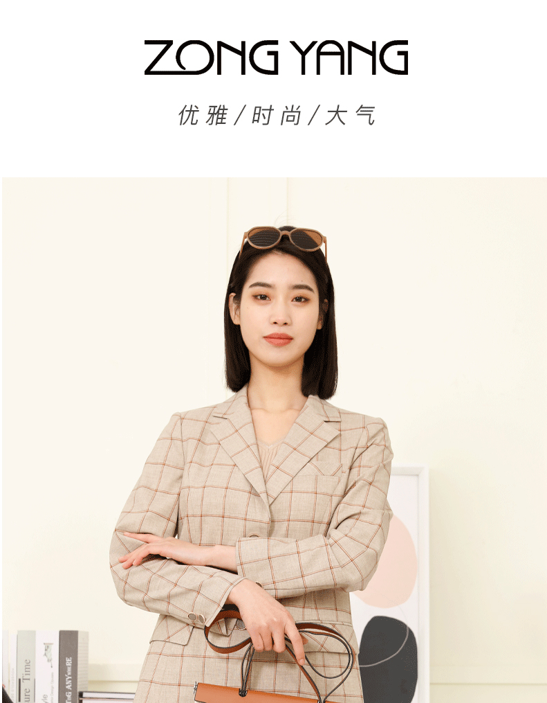 宗洋zongyang女装2022春季新品西装上衣长袖格子显瘦外套BCL4XS7839-76