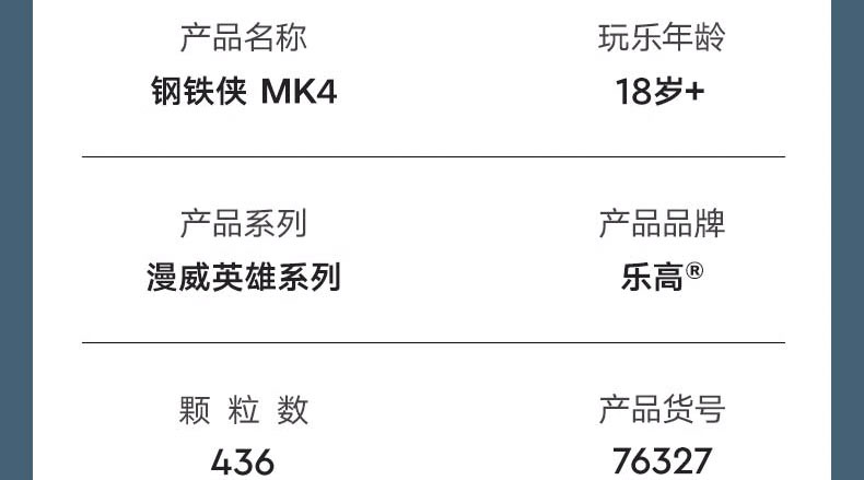 乐高积木 L76327 乐高超级英雄系列钢铁侠 MK4