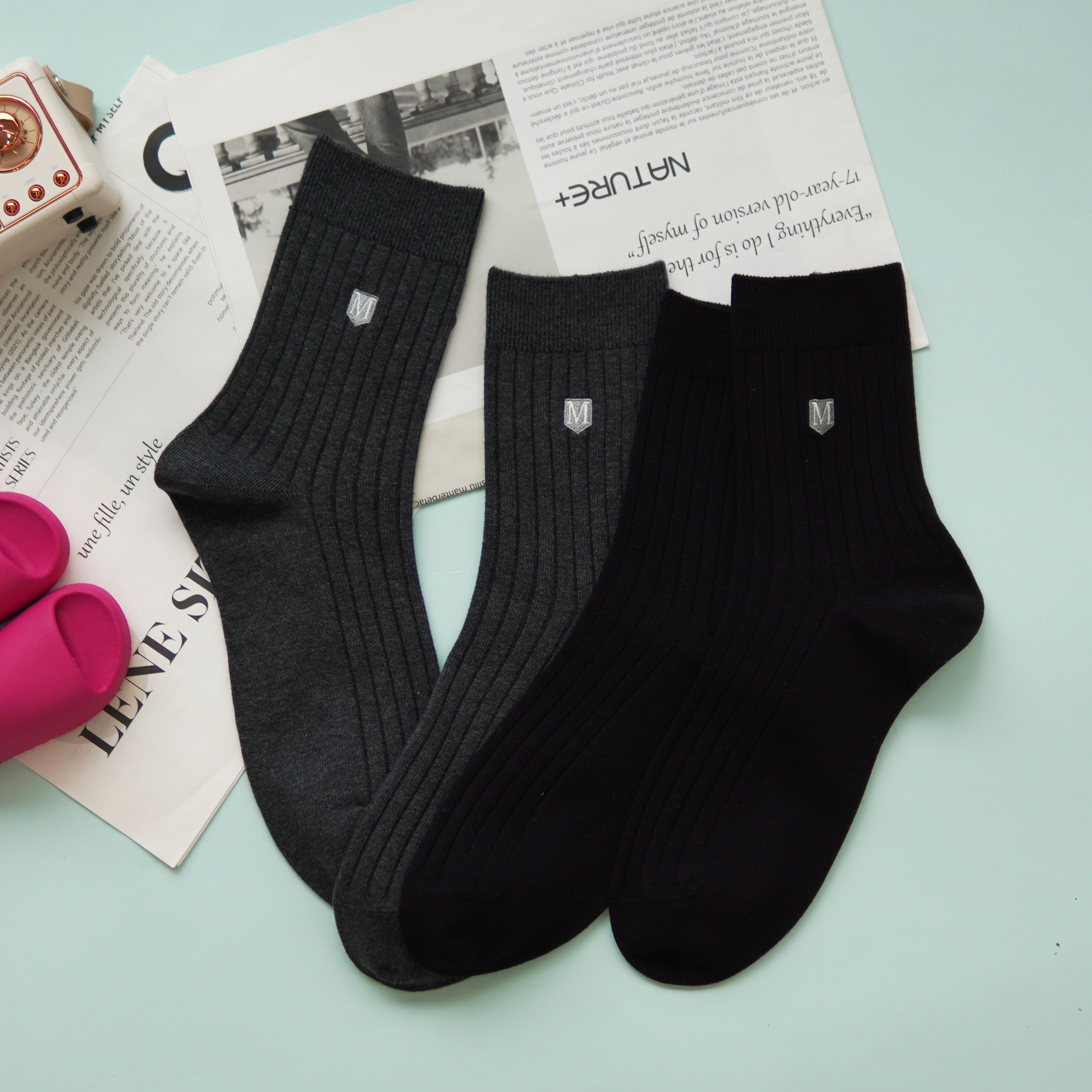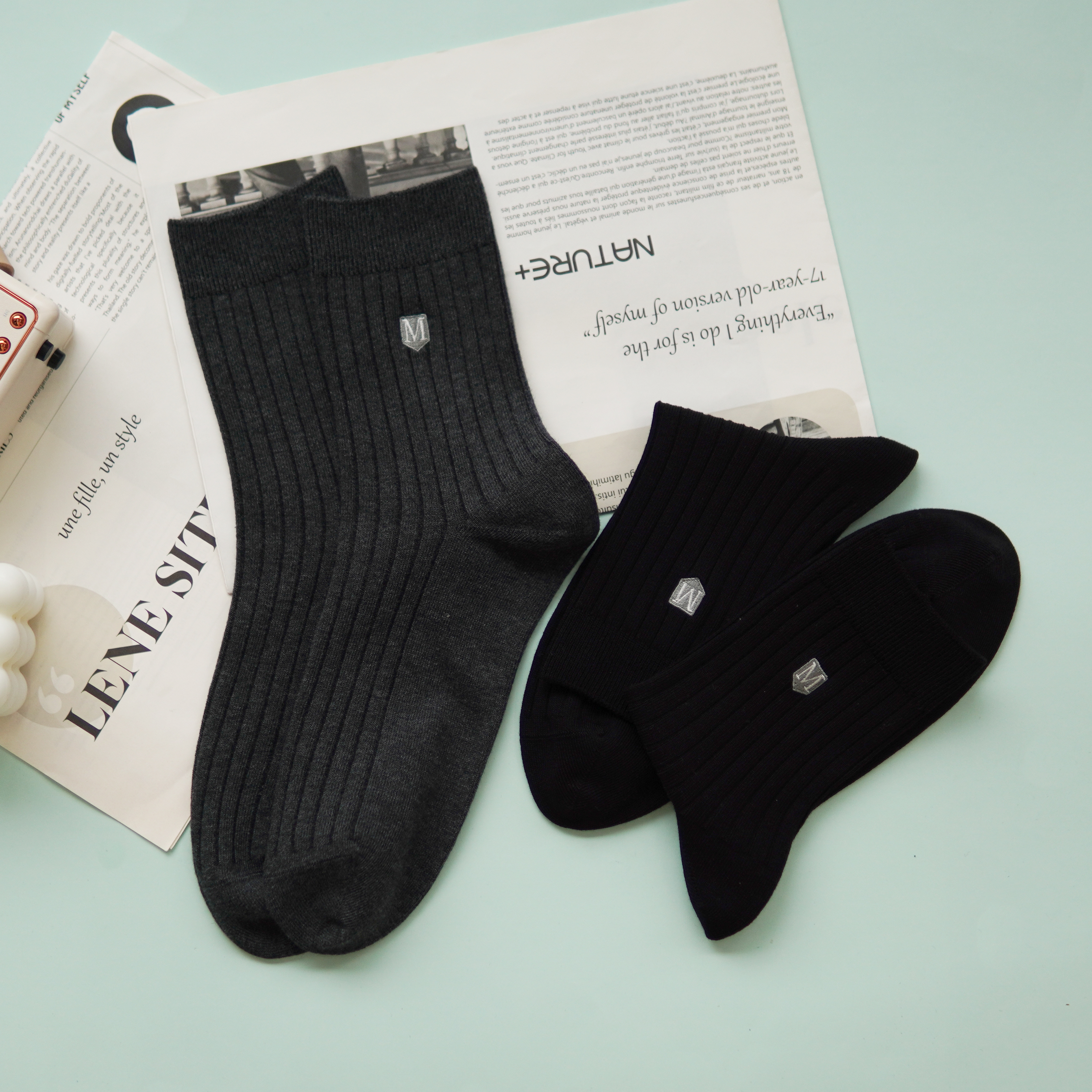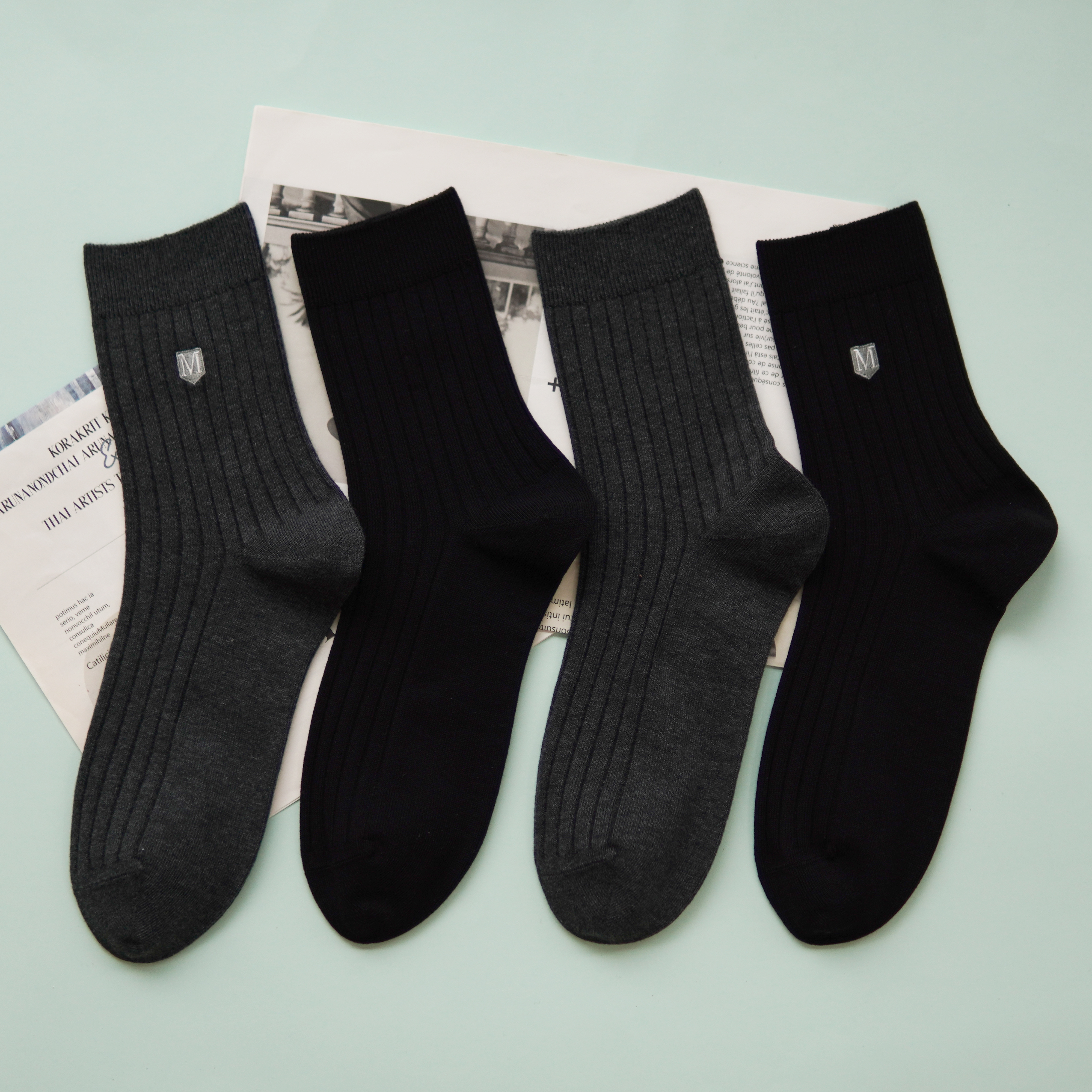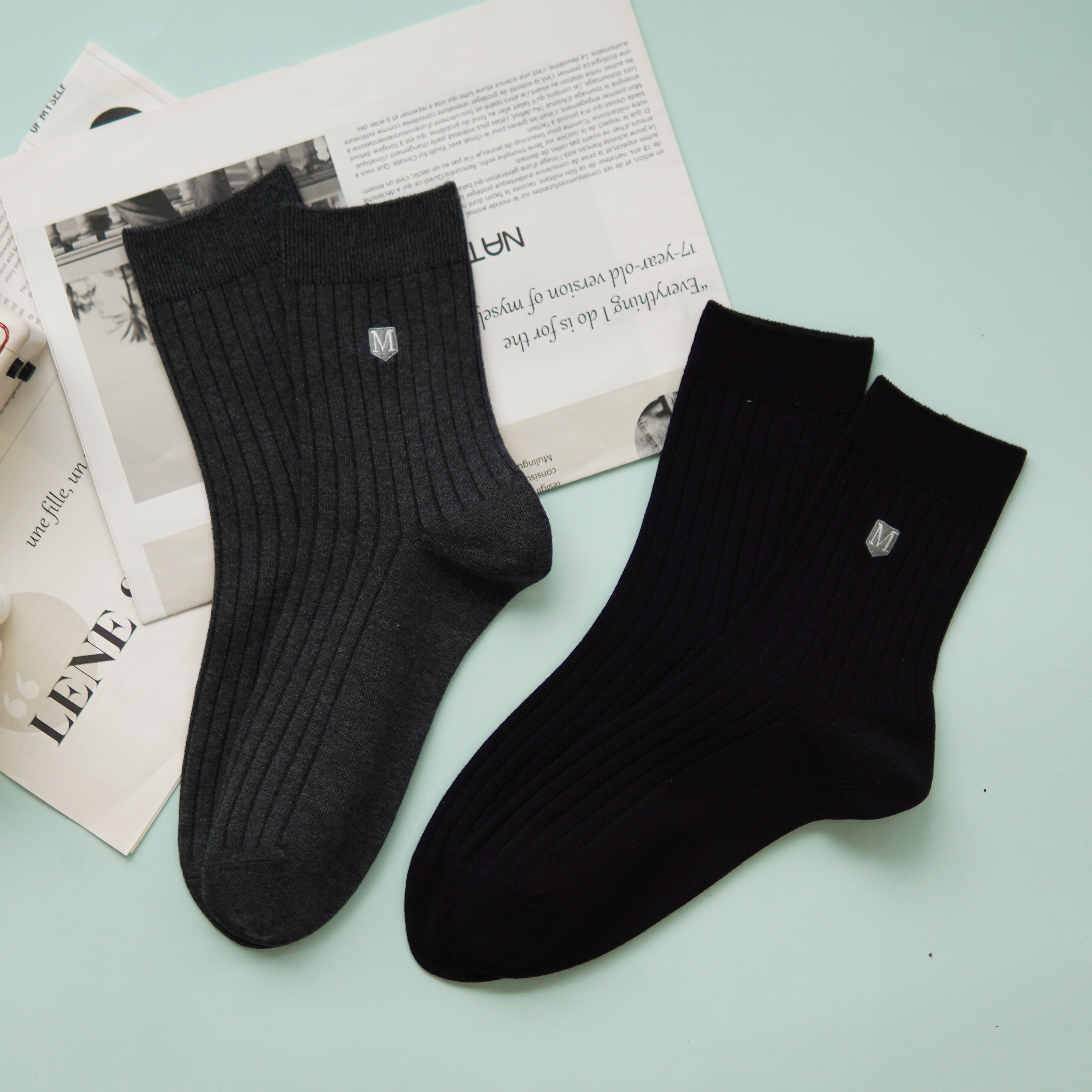 【2双装】男士刺绣休闲袜中长筒四季棉袜【6双6折 2521601】