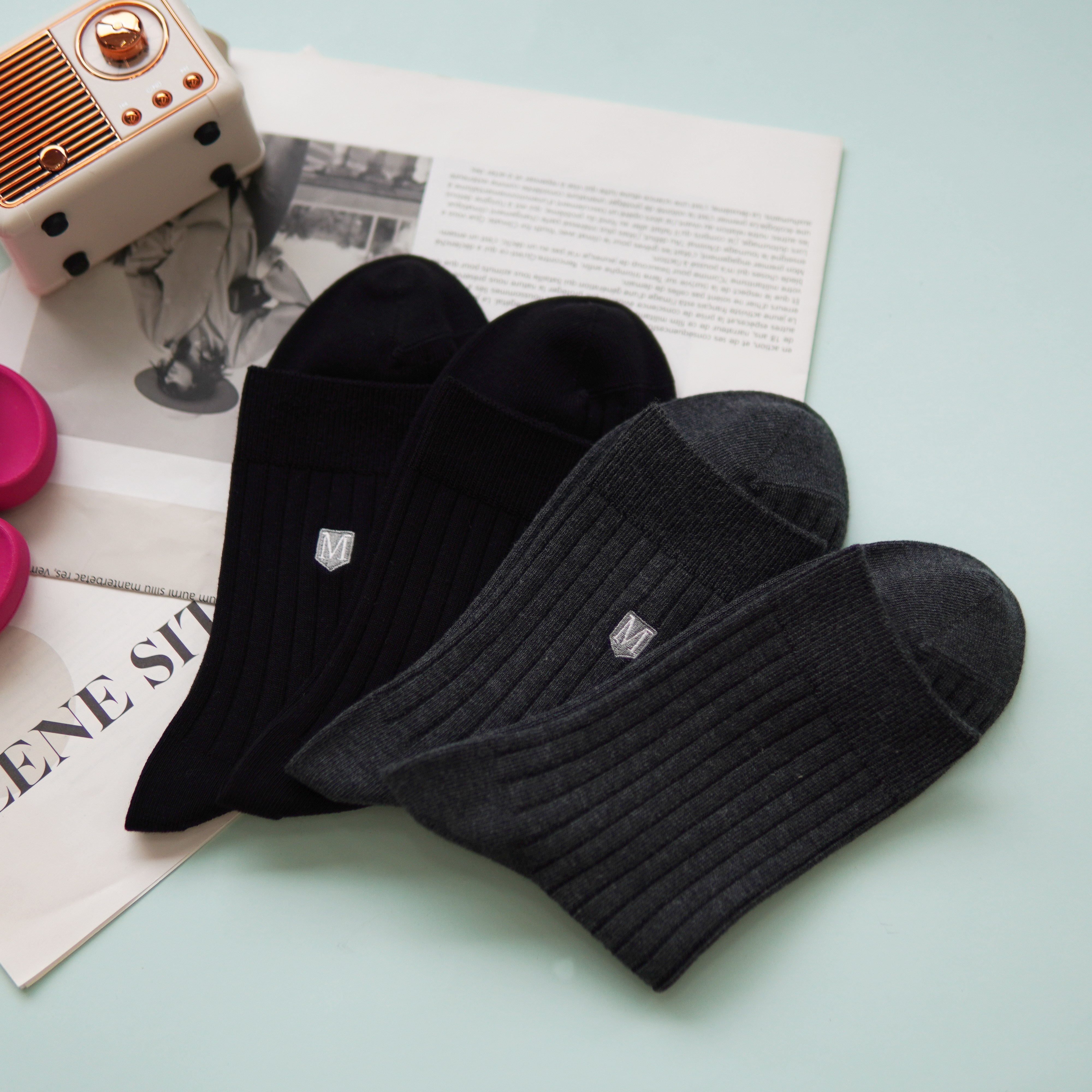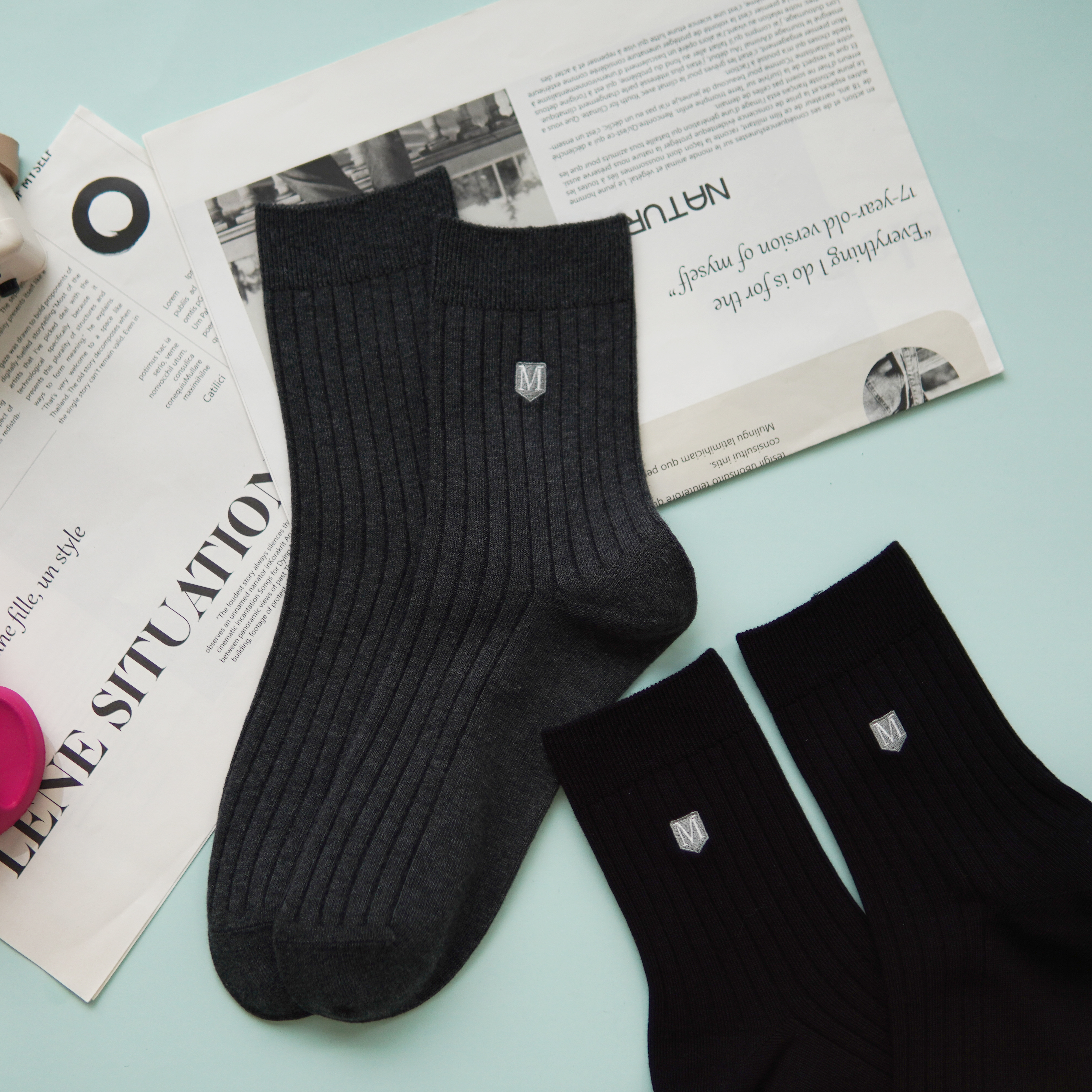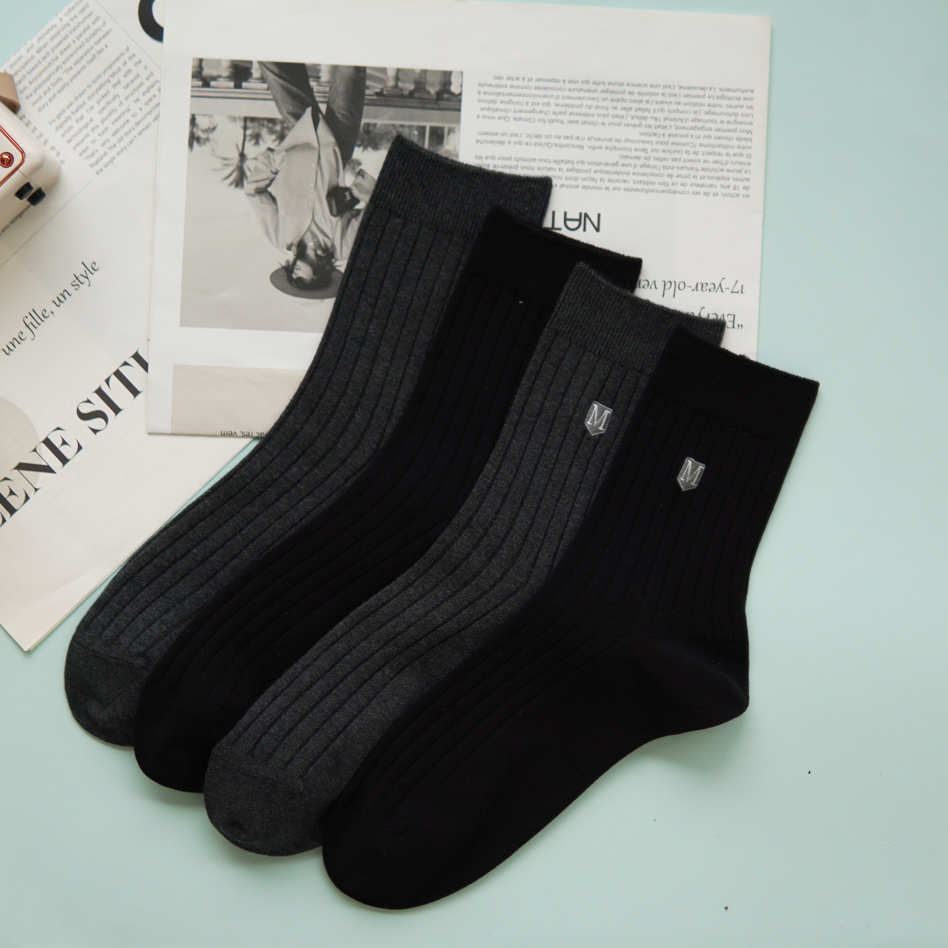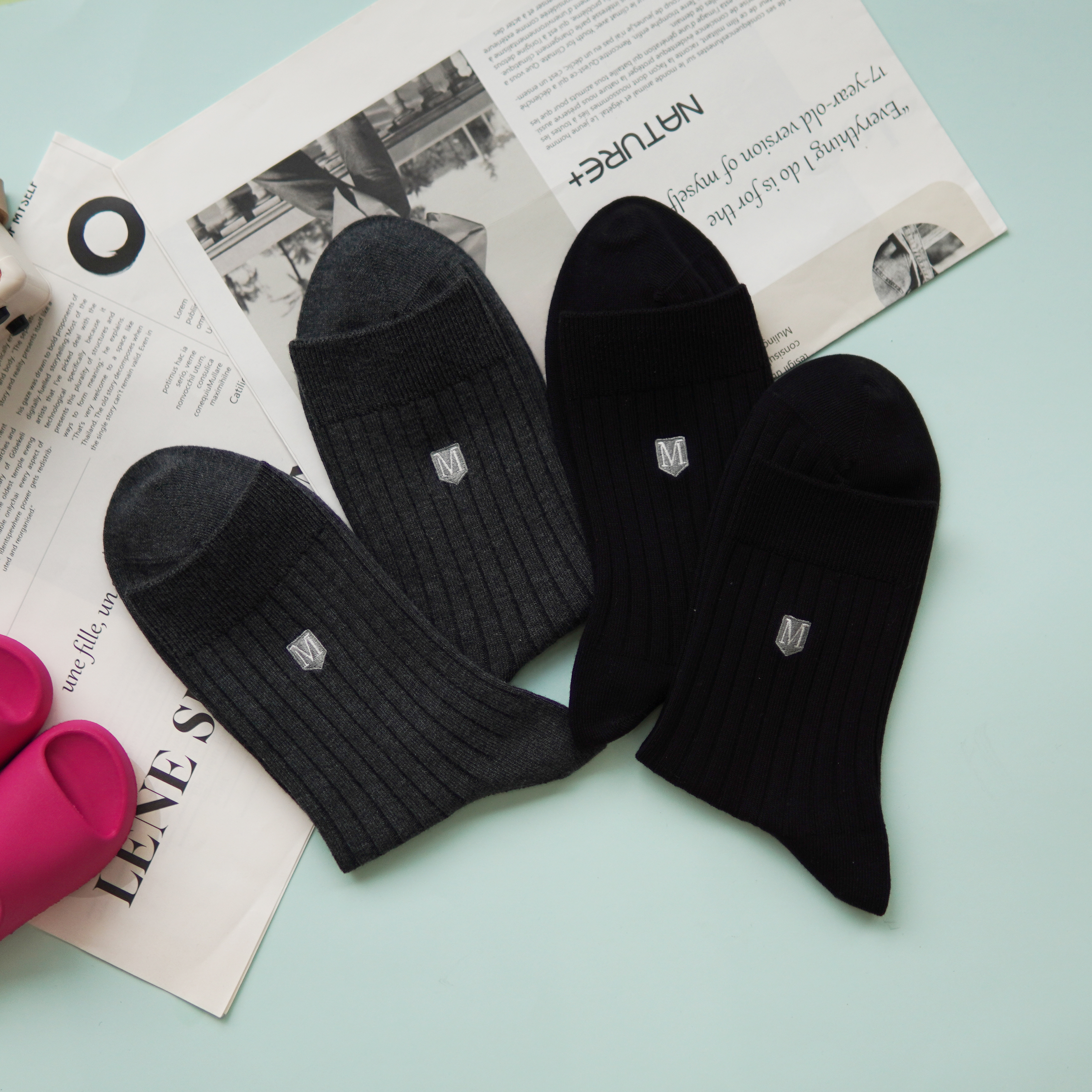 【2双装】男士刺绣休闲袜中长筒四季棉袜【6双6折 2521601】