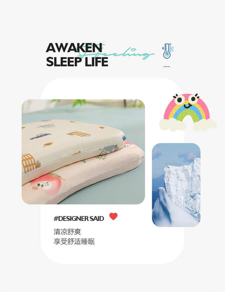 YOOE【2025新品记忆凉枕】]软软糯糯夏凉枕 凉感面料凉而不冰触感 儿童凉感枕慢回弹记忆棉 枕芯套可拆洗