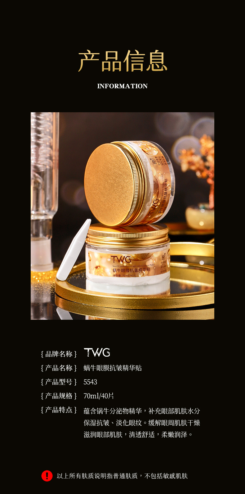 「买1送1」TWG蜗牛眼膜抗皱精华贴 补水保湿改善黑眼圈眼纹精华贴