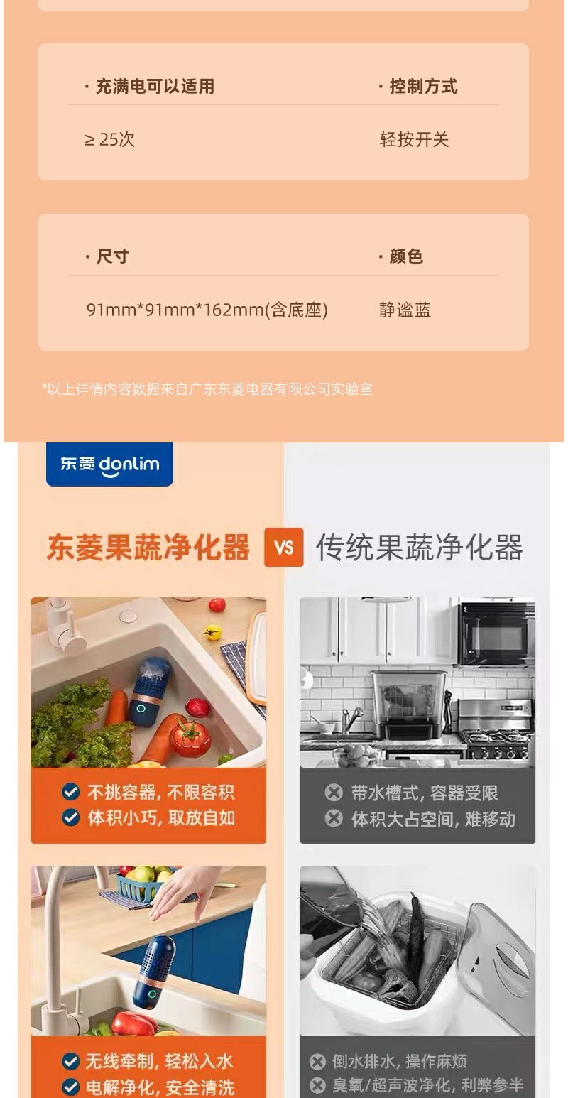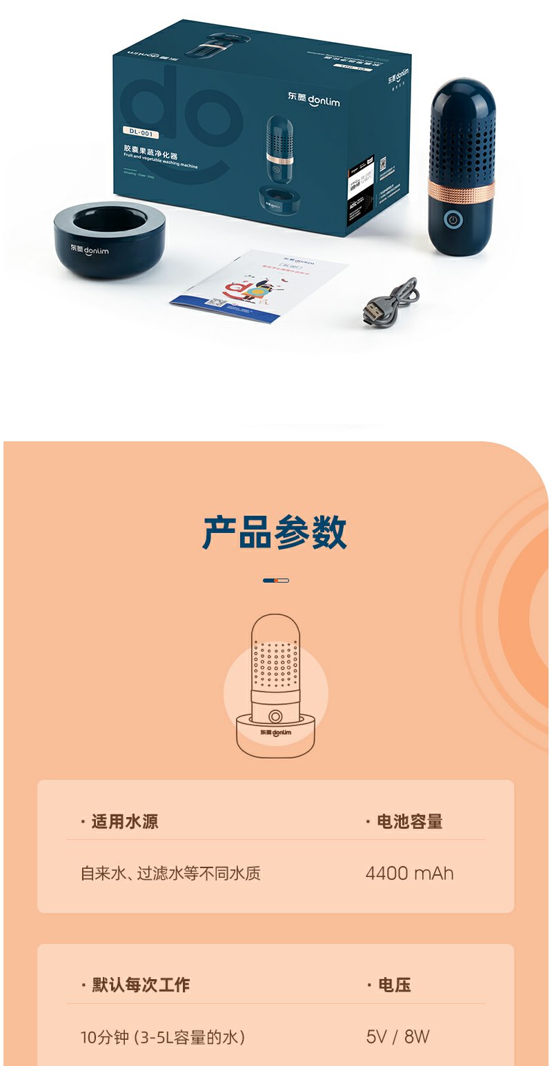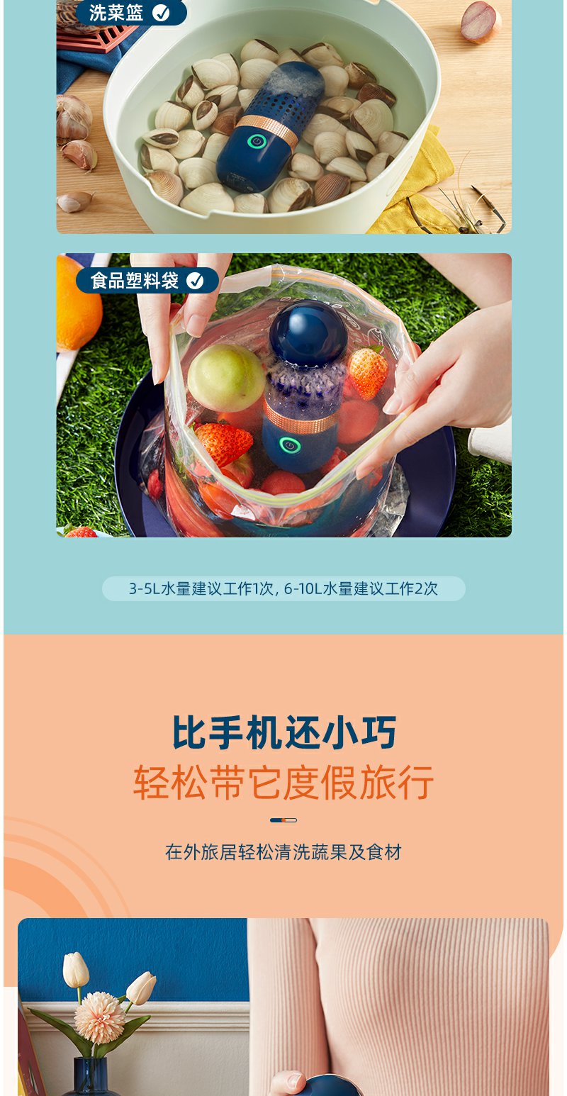 东菱胶囊果蔬净化器食材清洗机家用杀菌便携无线除农残自动洗菜机