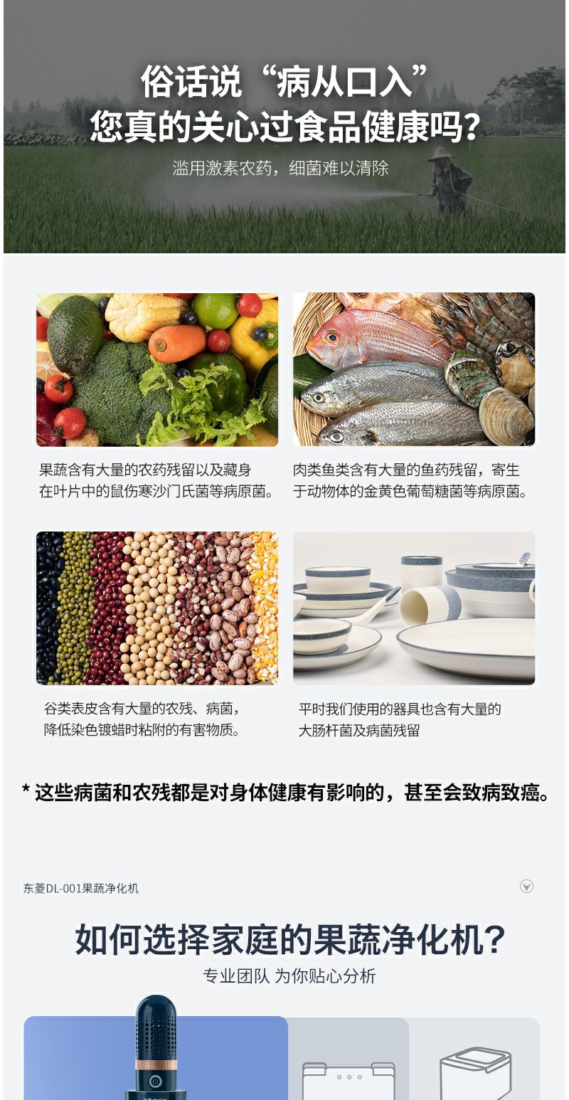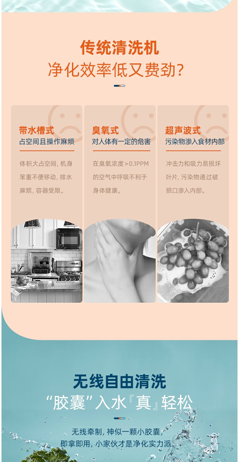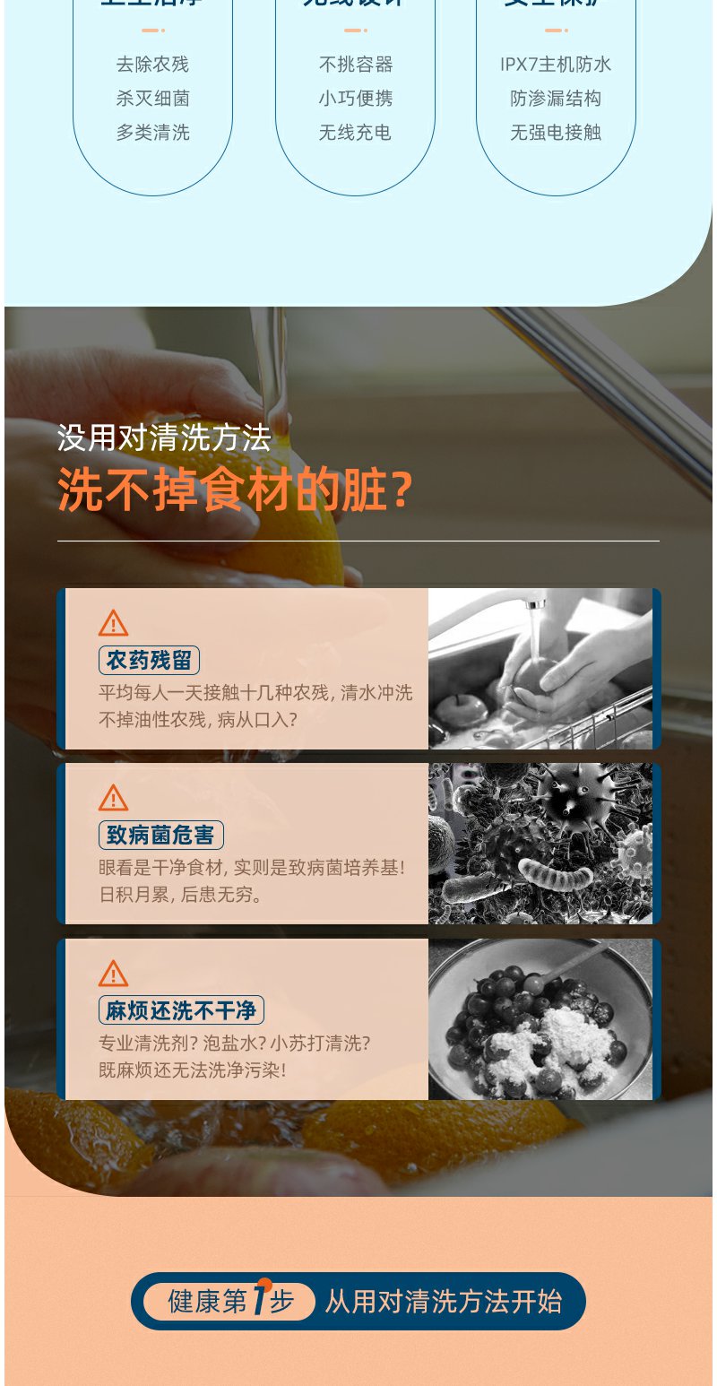 东菱胶囊果蔬净化器食材清洗机家用杀菌便携无线除农残自动洗菜机