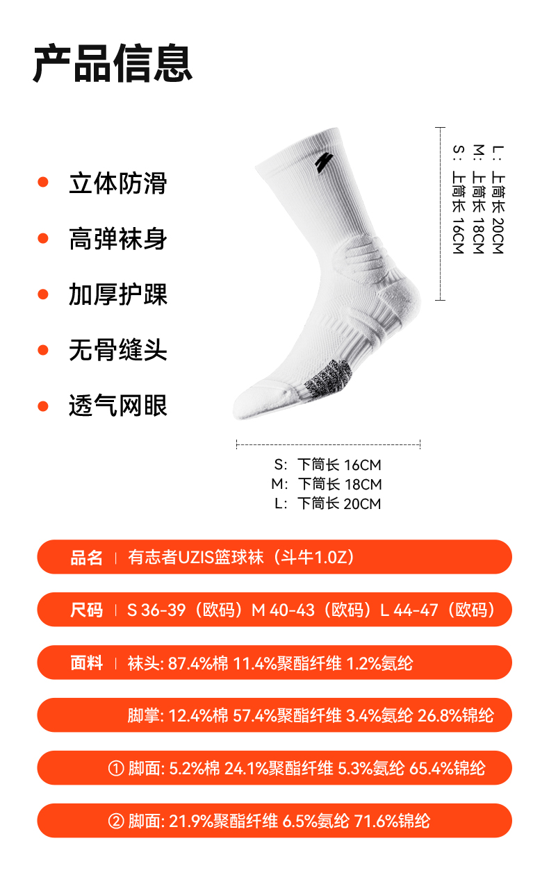 【会员专享价】有志者UZIS 实战篮球袜男专业防滑精英袜长筒加厚运动袜[斗牛1.0Z