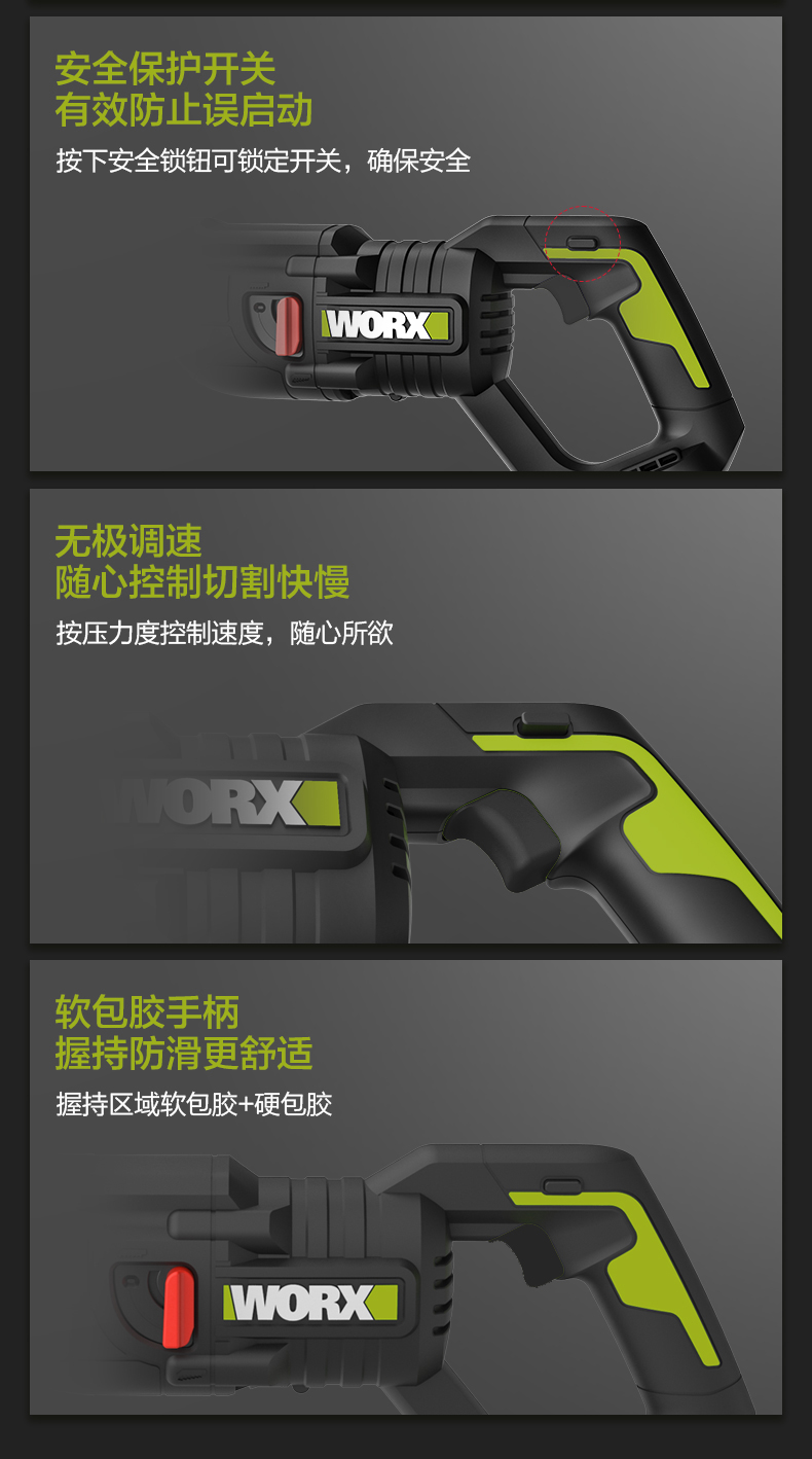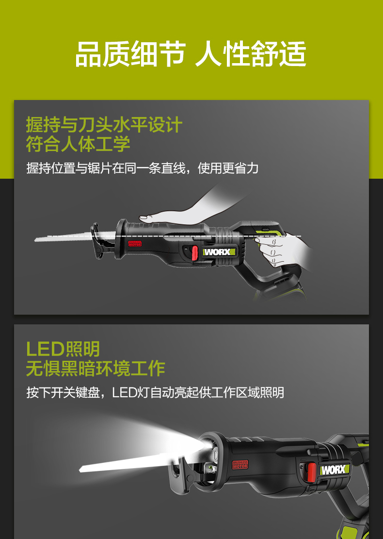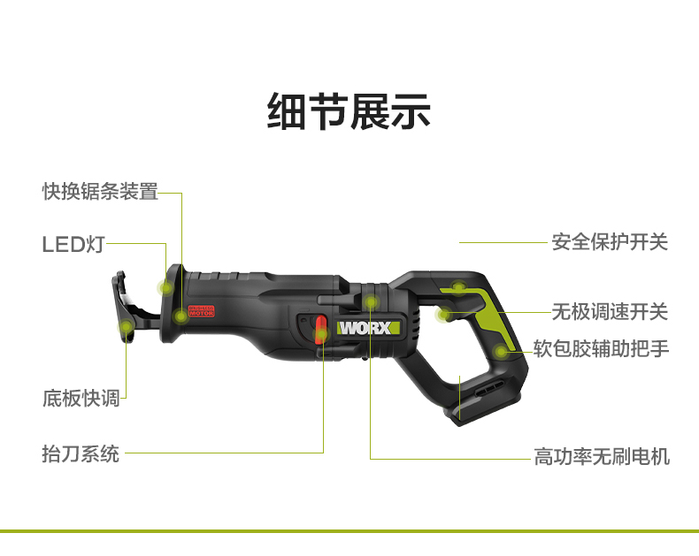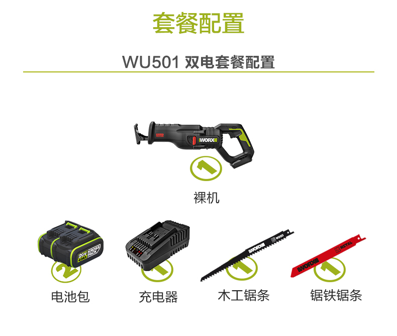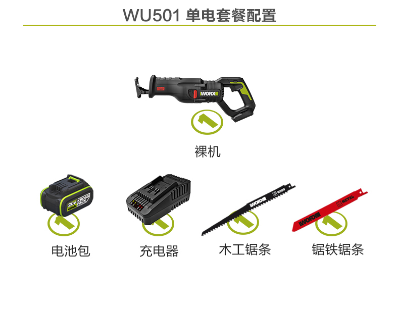 威克士20V无刷往复锯WU501 锂电动马刀锯小型多功能手持切割锯片