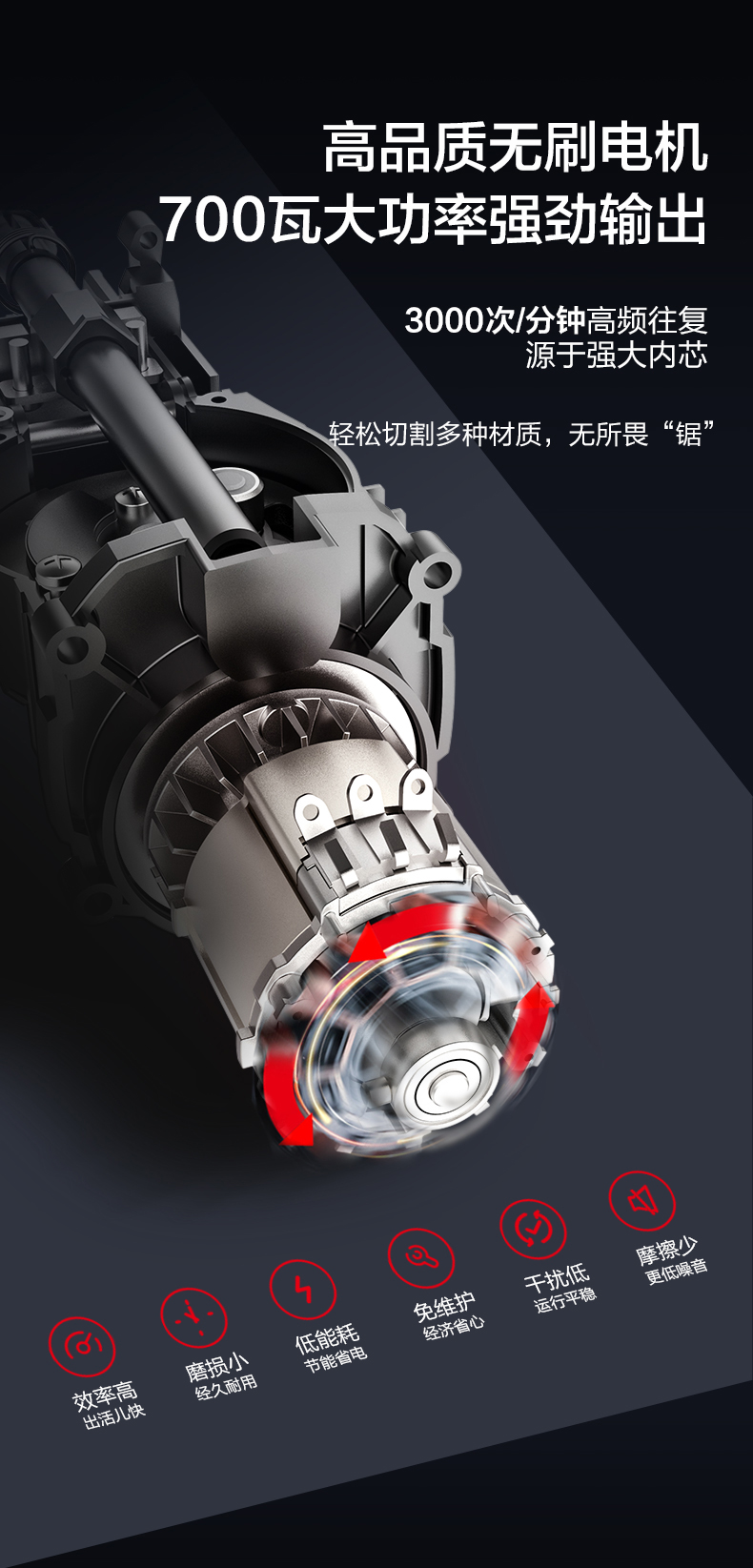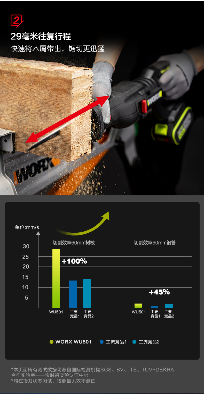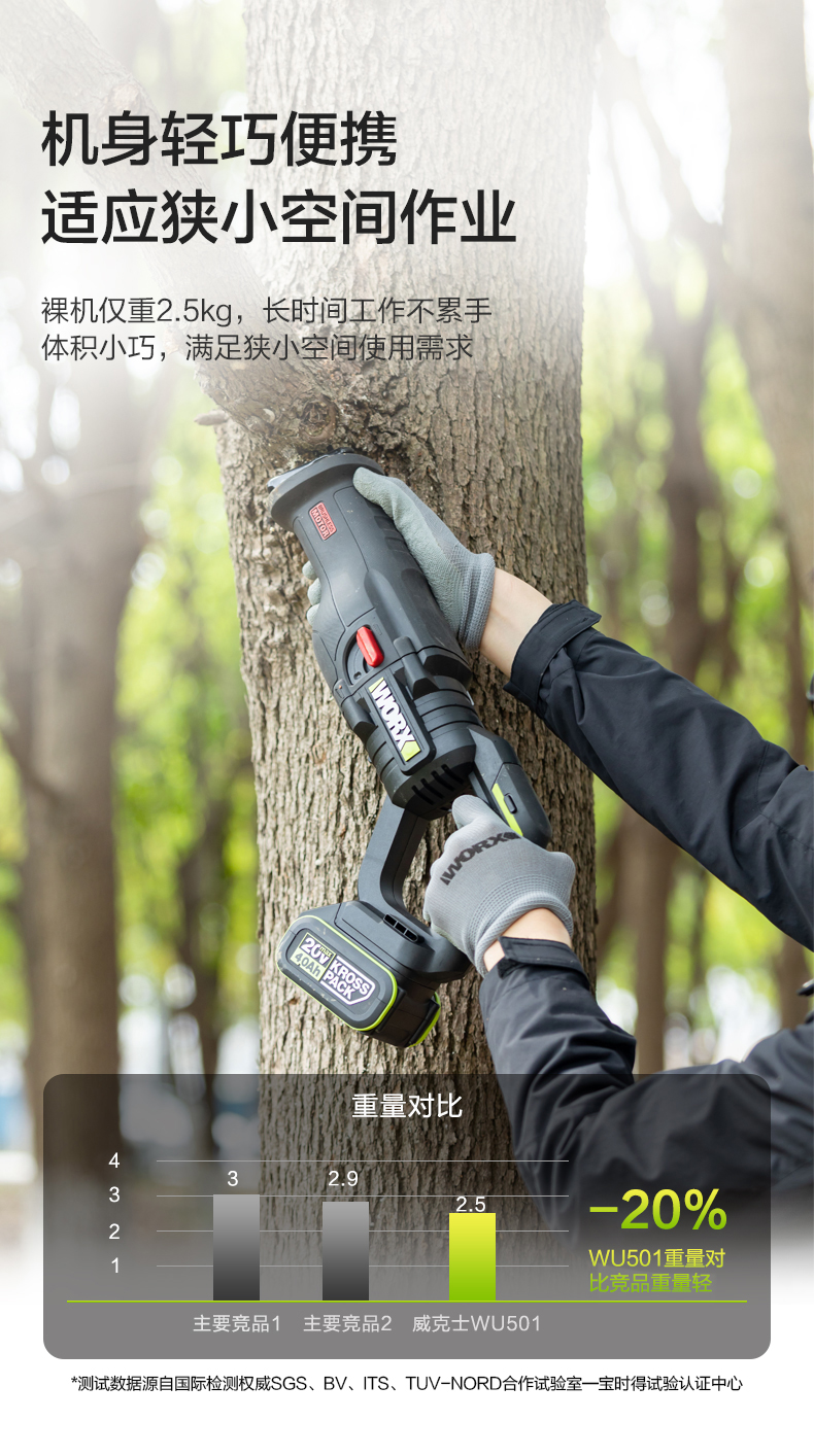 威克士20V无刷往复锯WU501 锂电动马刀锯小型多功能手持切割锯片