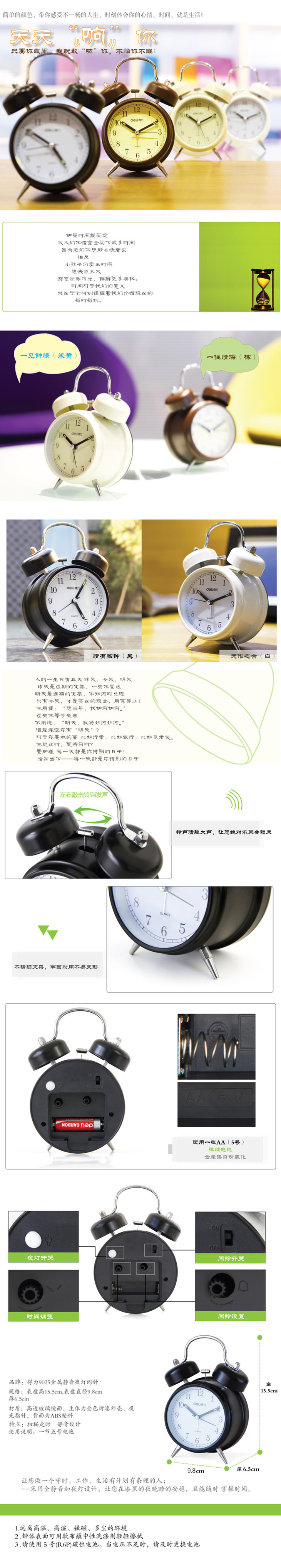 得力闹钟9025混色(3.5寸)