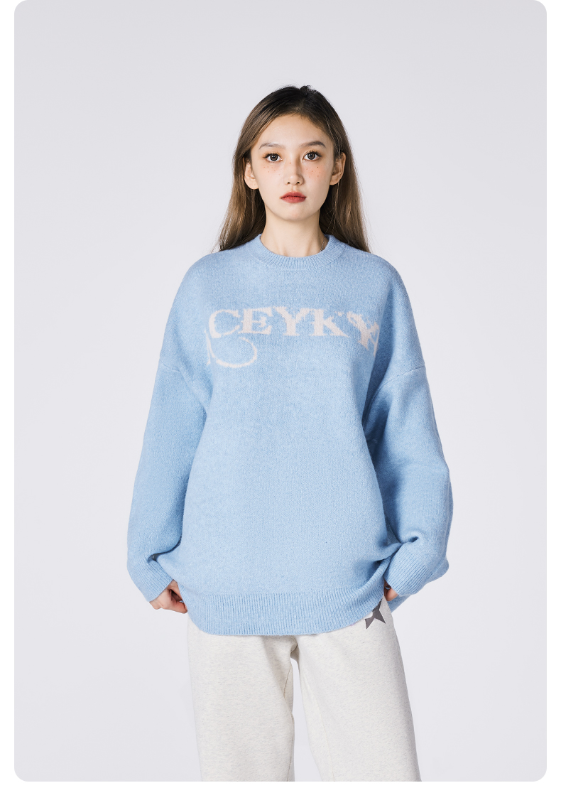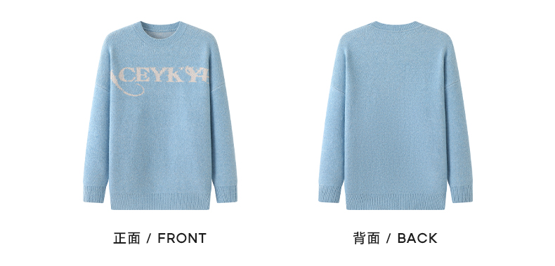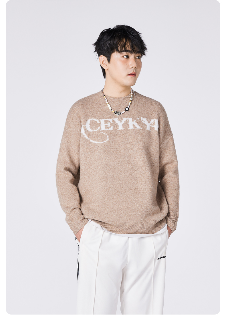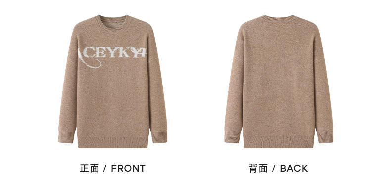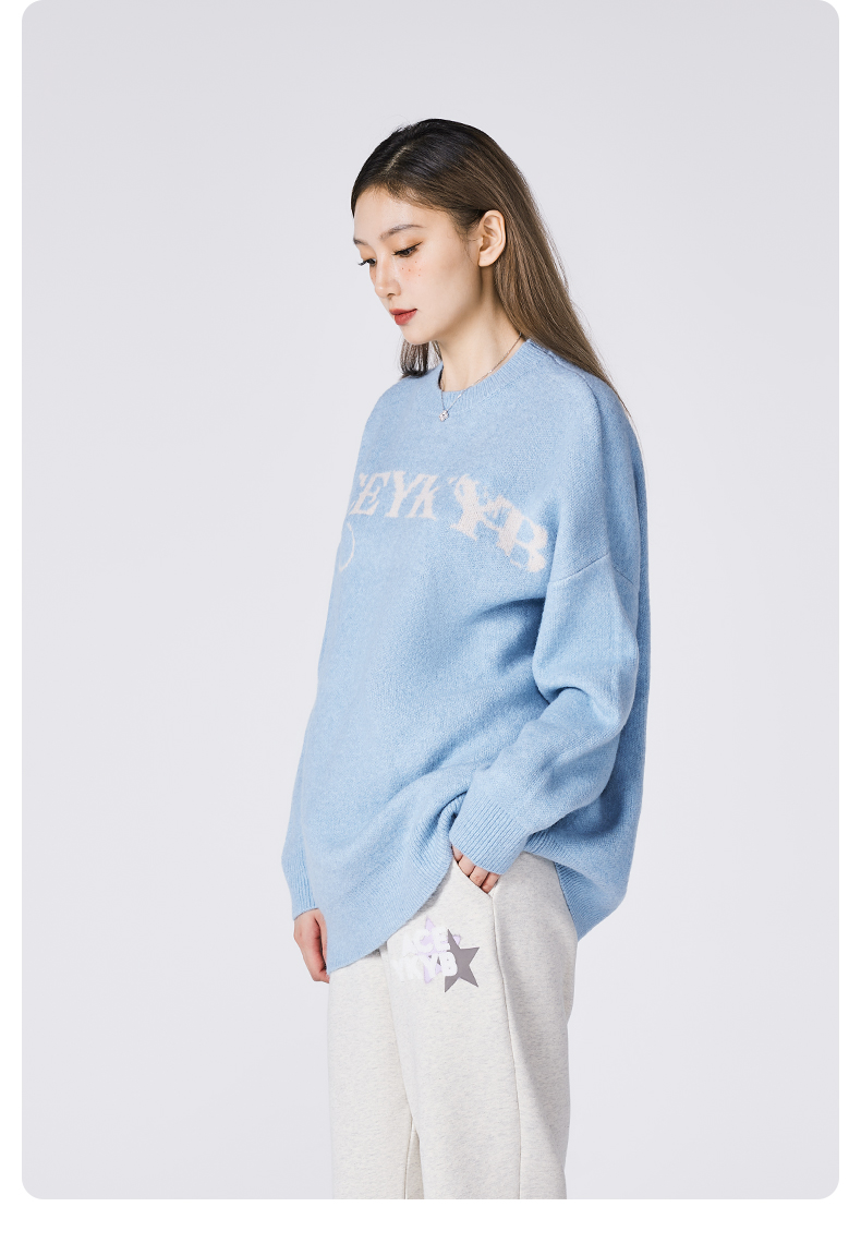 YKYB针织衫冬季潮牌LOGO提花圆领百搭外套羊毛混纺宽松落肩毛衣