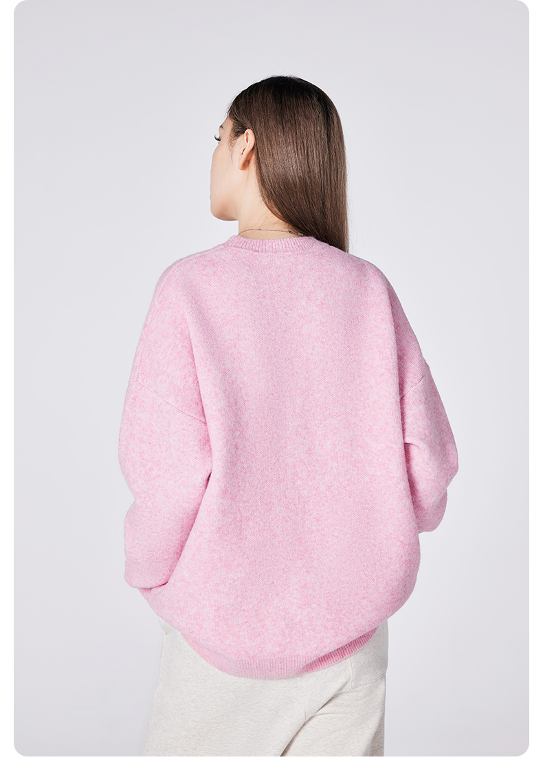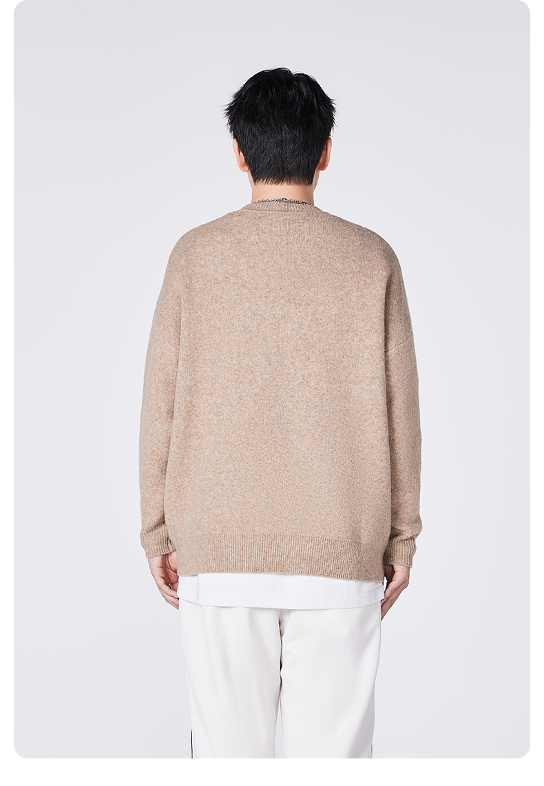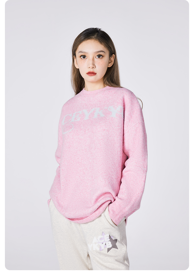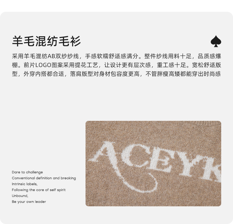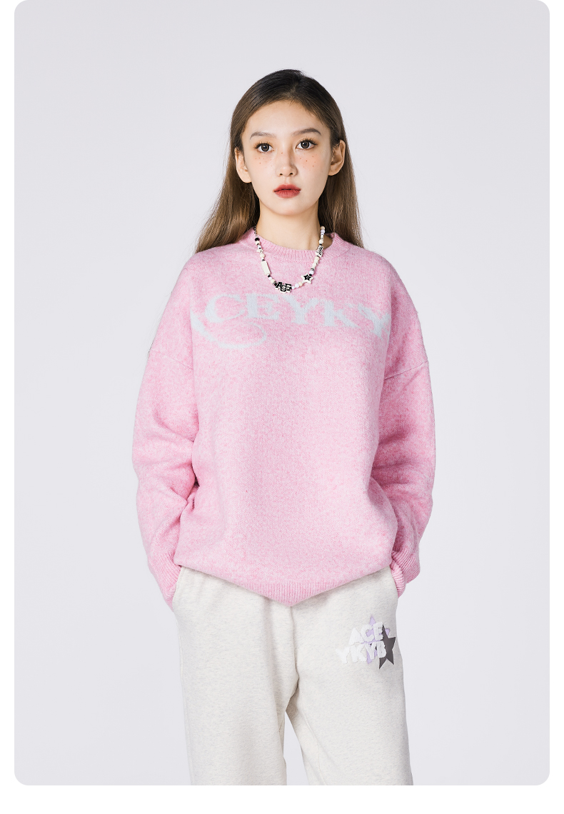 YKYB针织衫冬季潮牌LOGO提花圆领百搭外套羊毛混纺宽松落肩毛衣