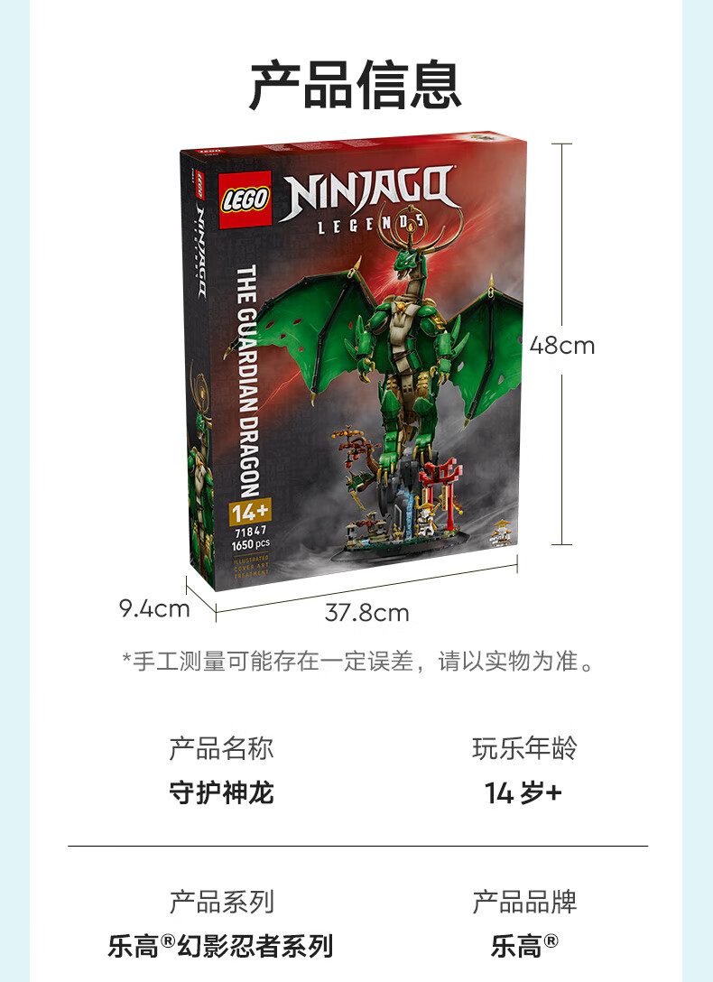 乐高积木 L71847 乐高幻影忍者系列守护神龙