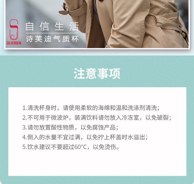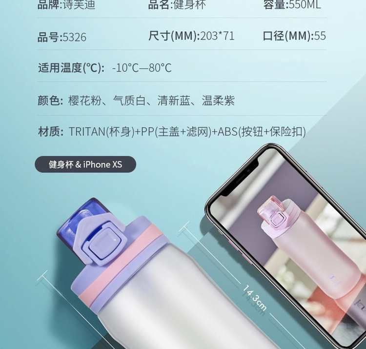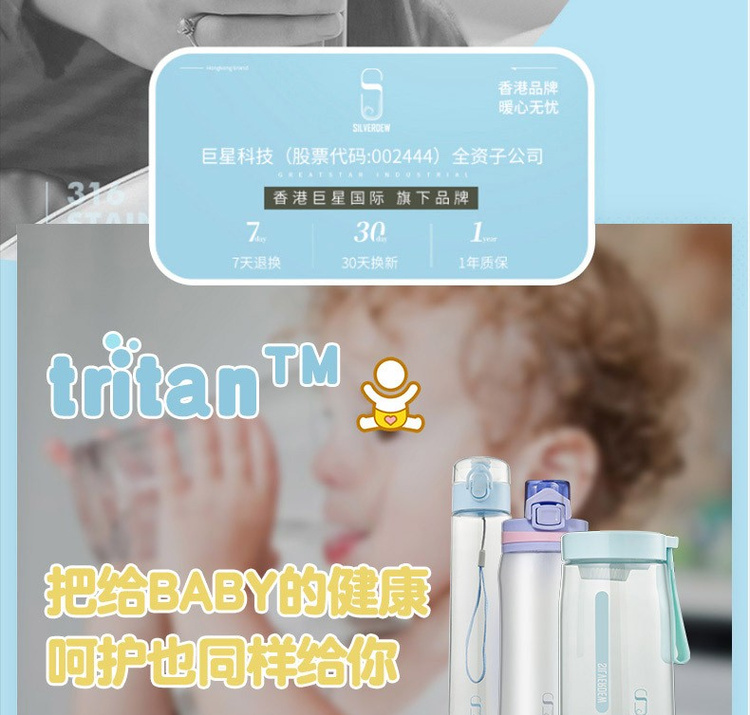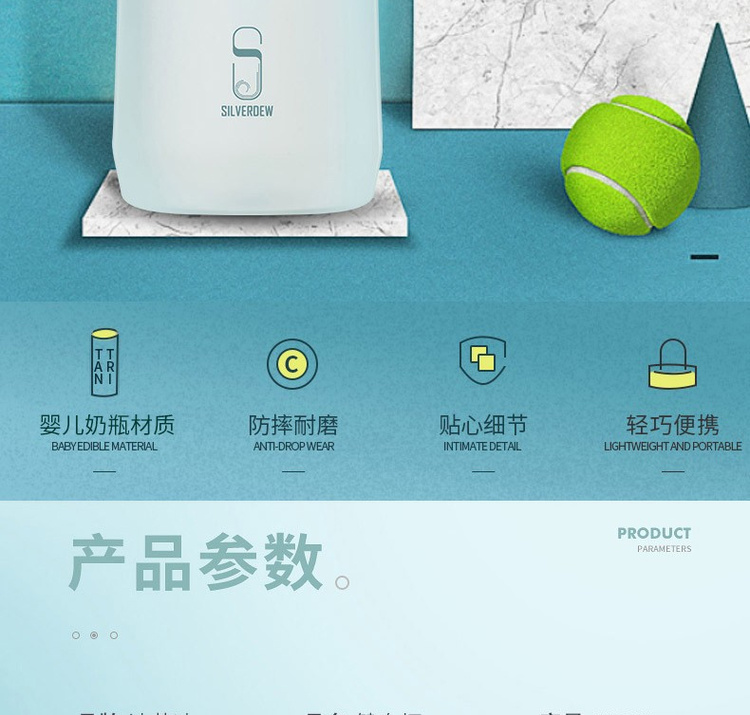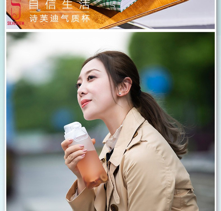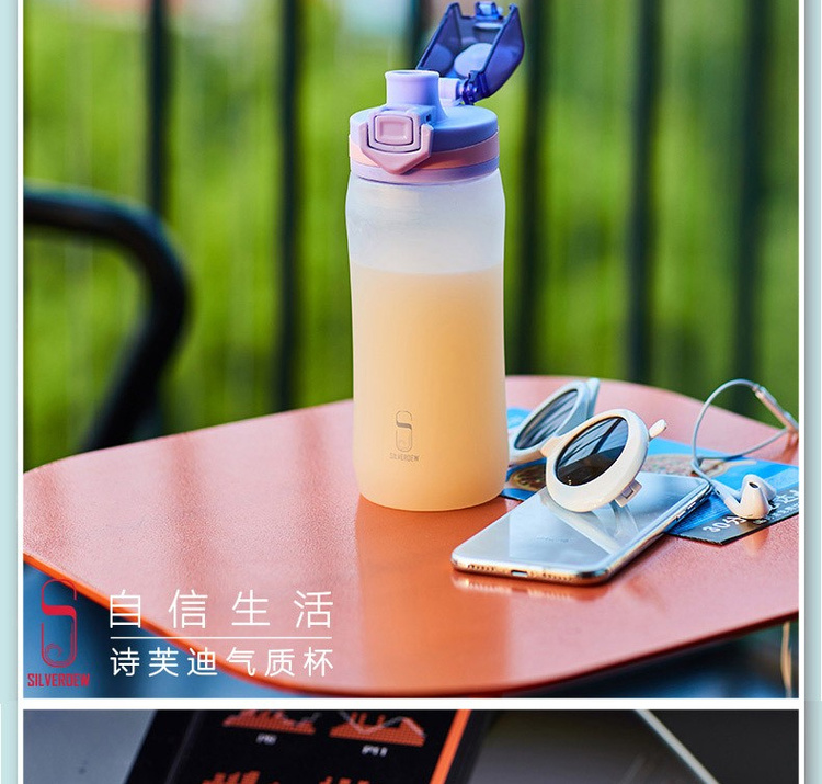 诗芙迪(SILVERDEW)Tritan水杯塑料水杯子女日式清新密封防漏便携带提手550ml