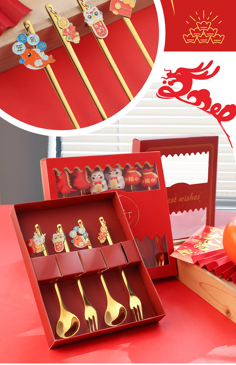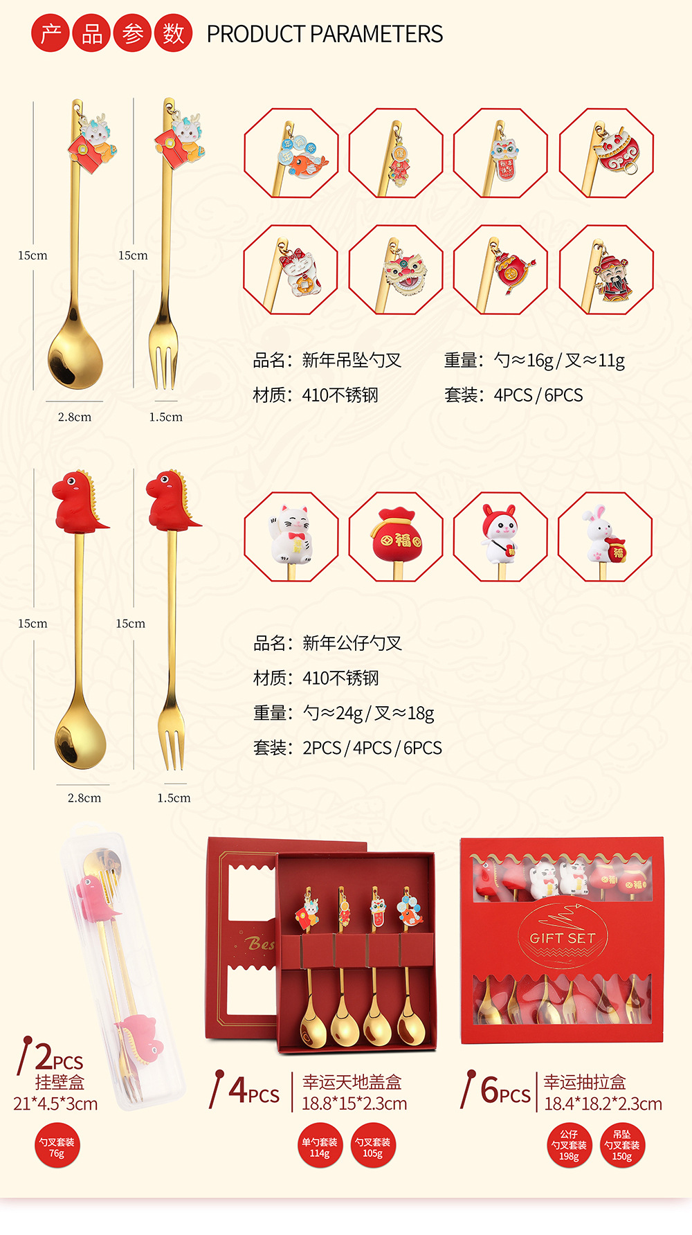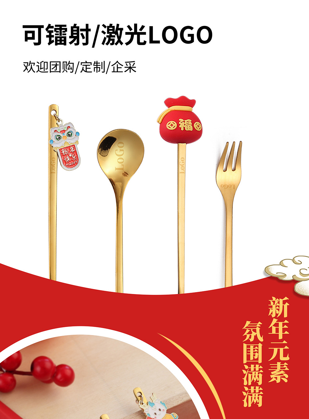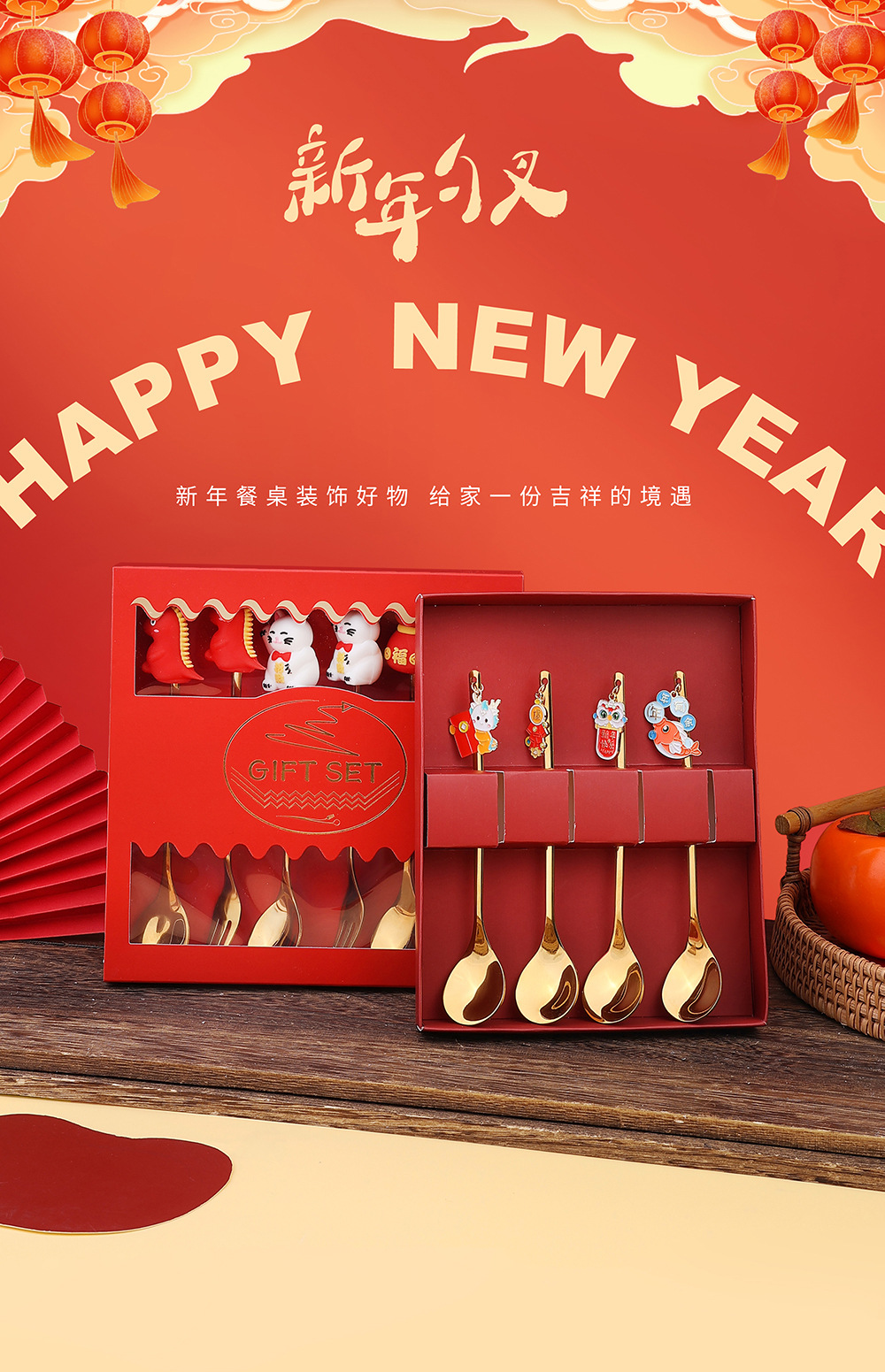 「6件套!新年佳礼」新年小礼物勺子餐具套装 咖啡勺水果叉小勺招财猫礼品公仔厨房用品餐饮用具