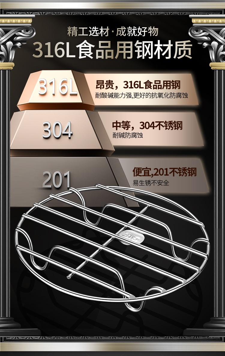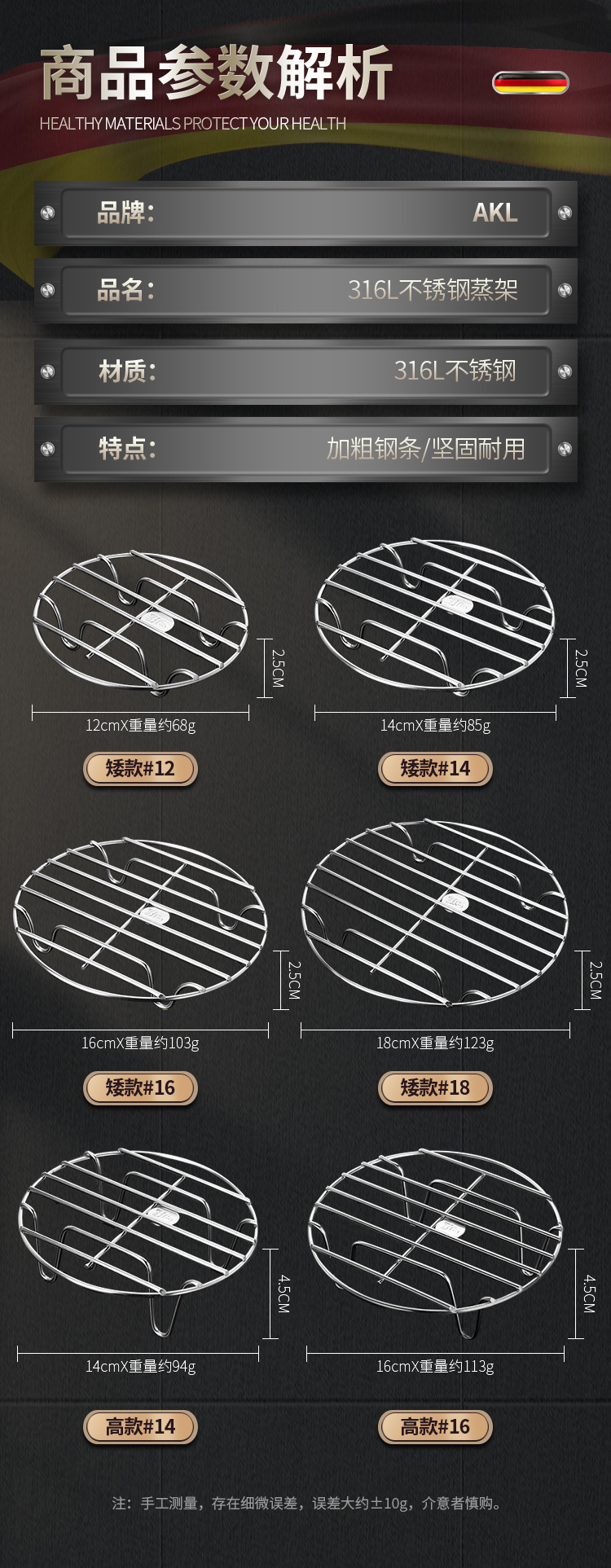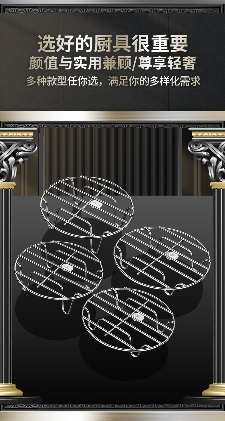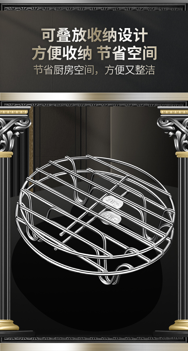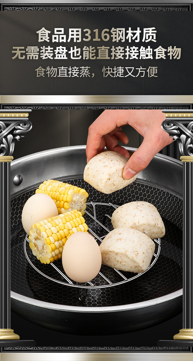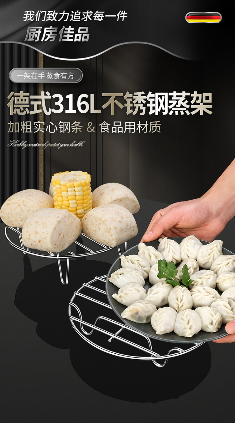【跨境出口316蒸架】316不锈钢蒸架厨房烹饪加厚实心蒸格家用电饭锅高脚隔水蒸笼架子