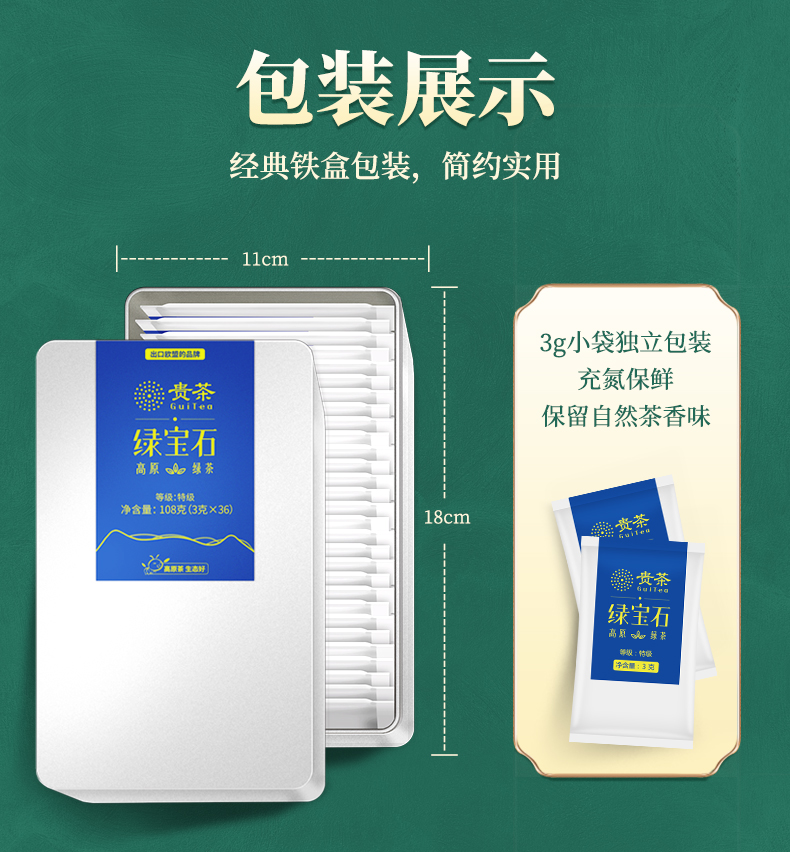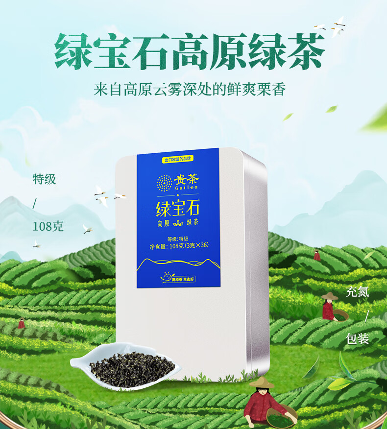 贵茶叶 特级新茶2025年春茶绿宝石绿茶 独立小包铁盒装108g