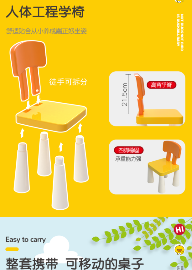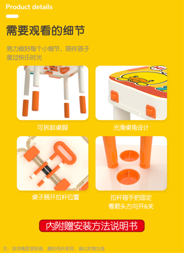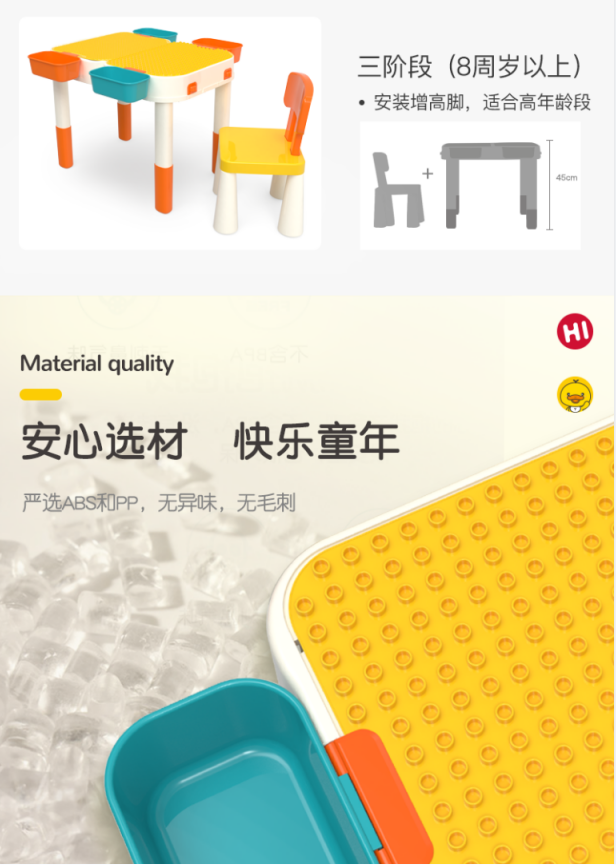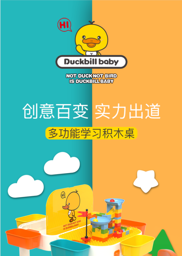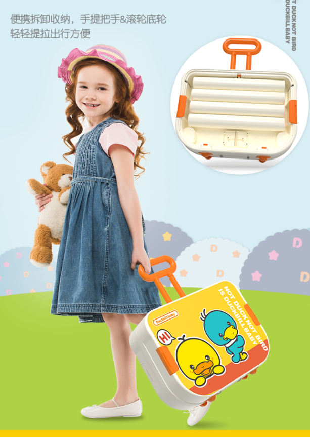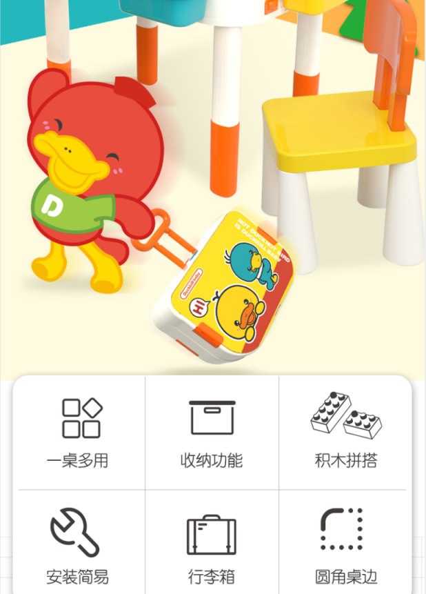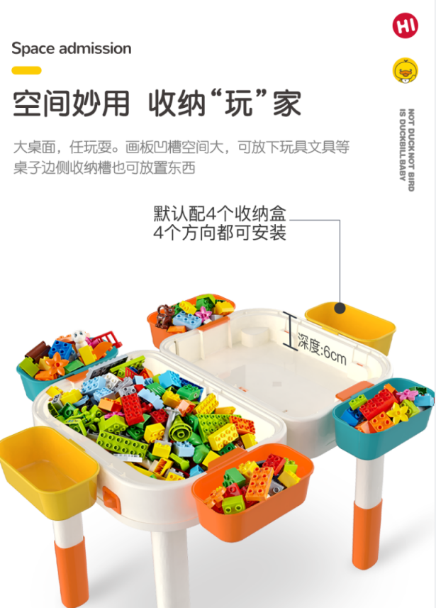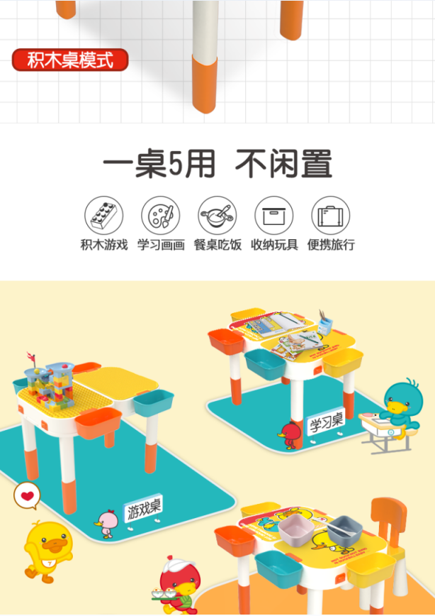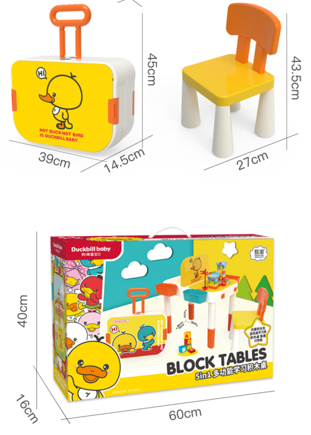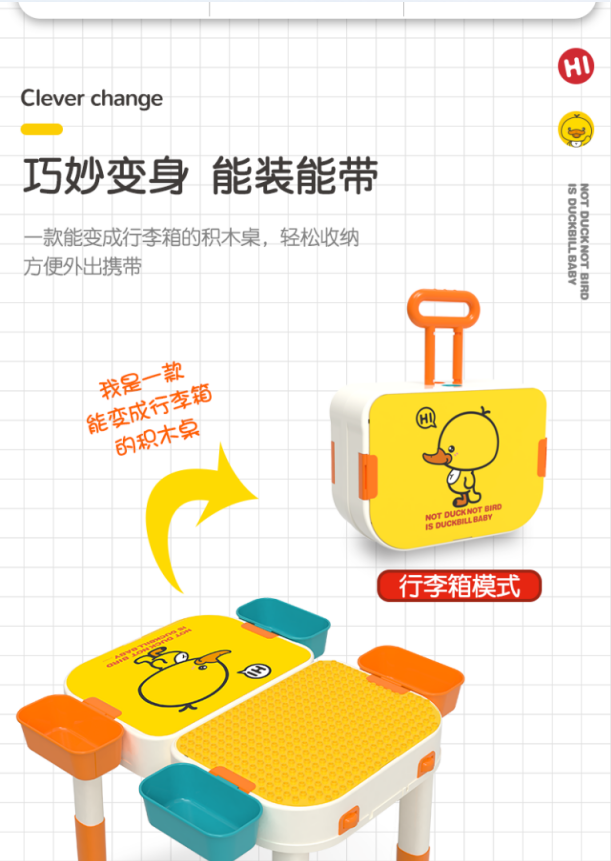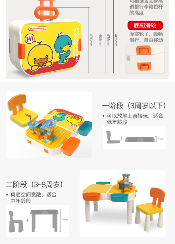 缔俐大黄鸭儿童多功能积木桌可折叠二合一行李箱宝宝积木桌