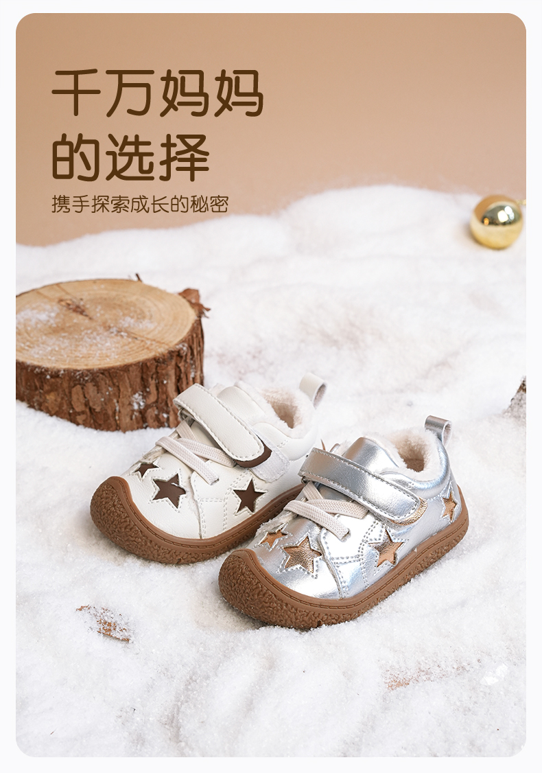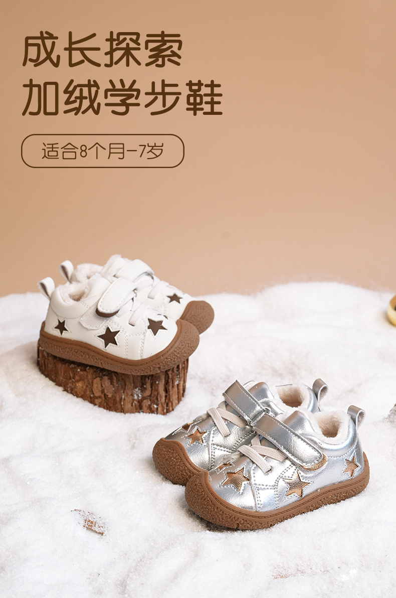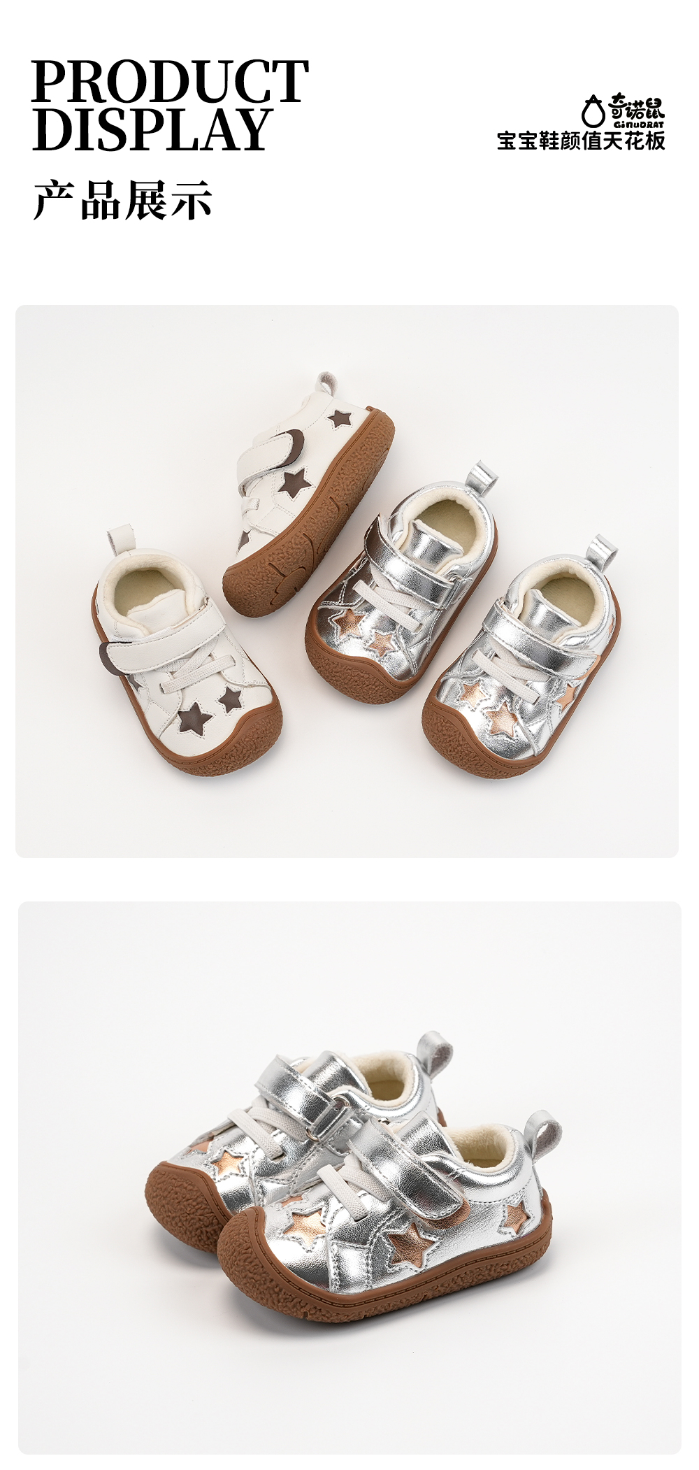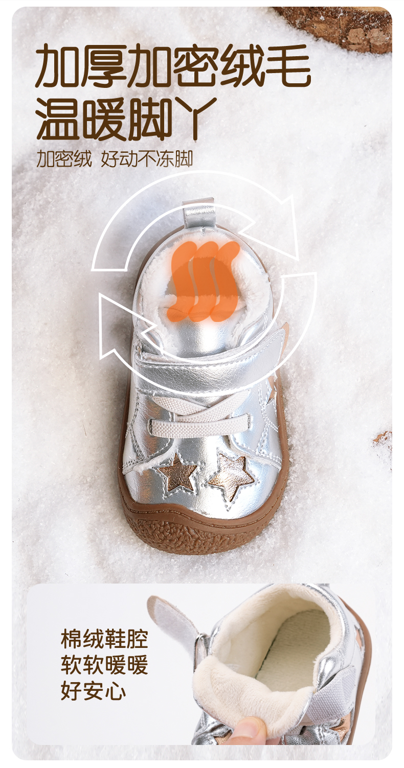 【奇诺鼠品牌直发18—30码】男宝宝加绒星星板鞋冬季新款婴儿棉鞋女小童软底学步鞋聚
