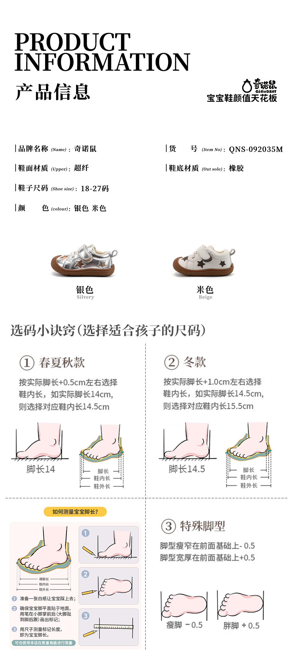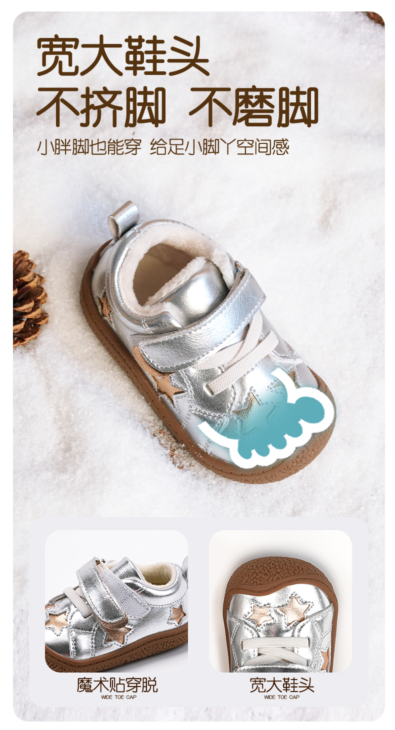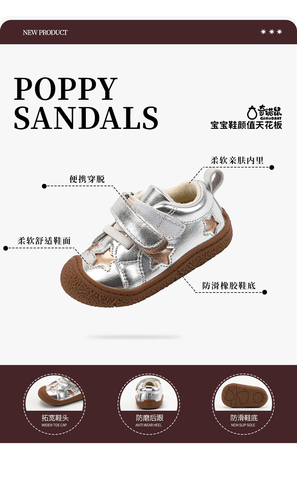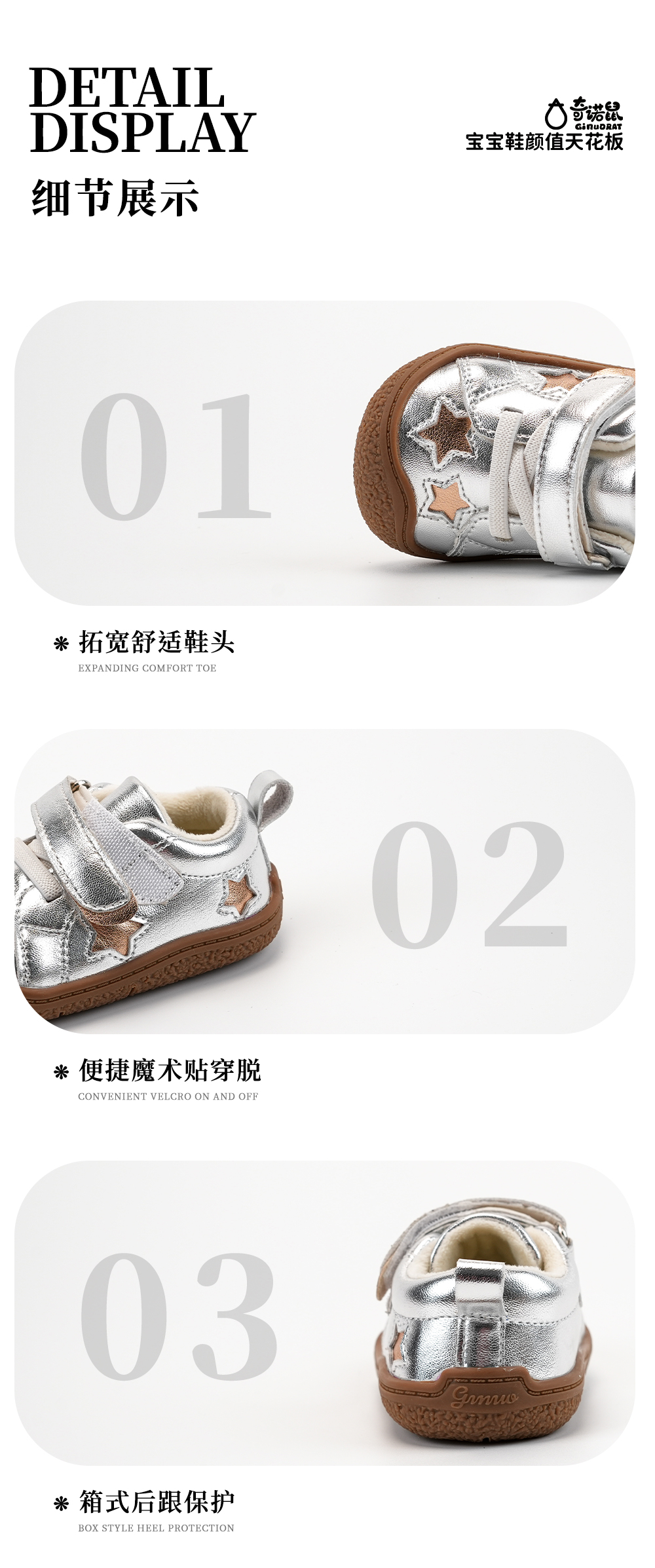 【奇诺鼠品牌直发18—30码】男宝宝加绒星星板鞋冬季新款婴儿棉鞋女小童软底学步鞋聚