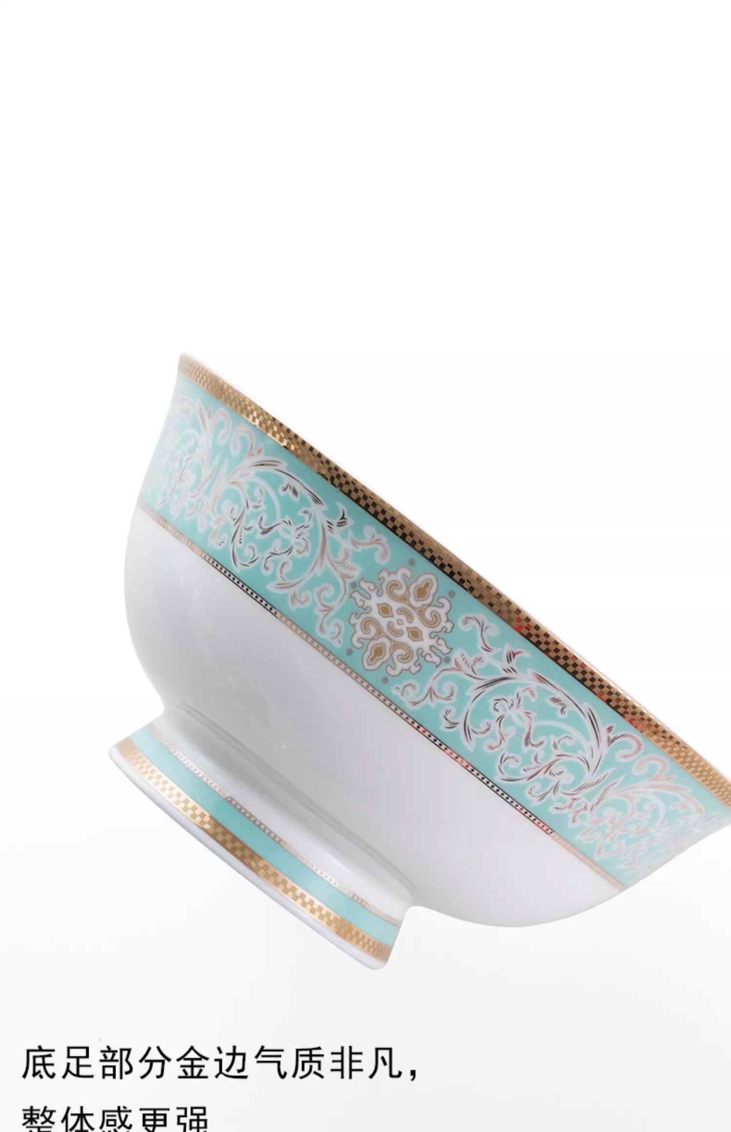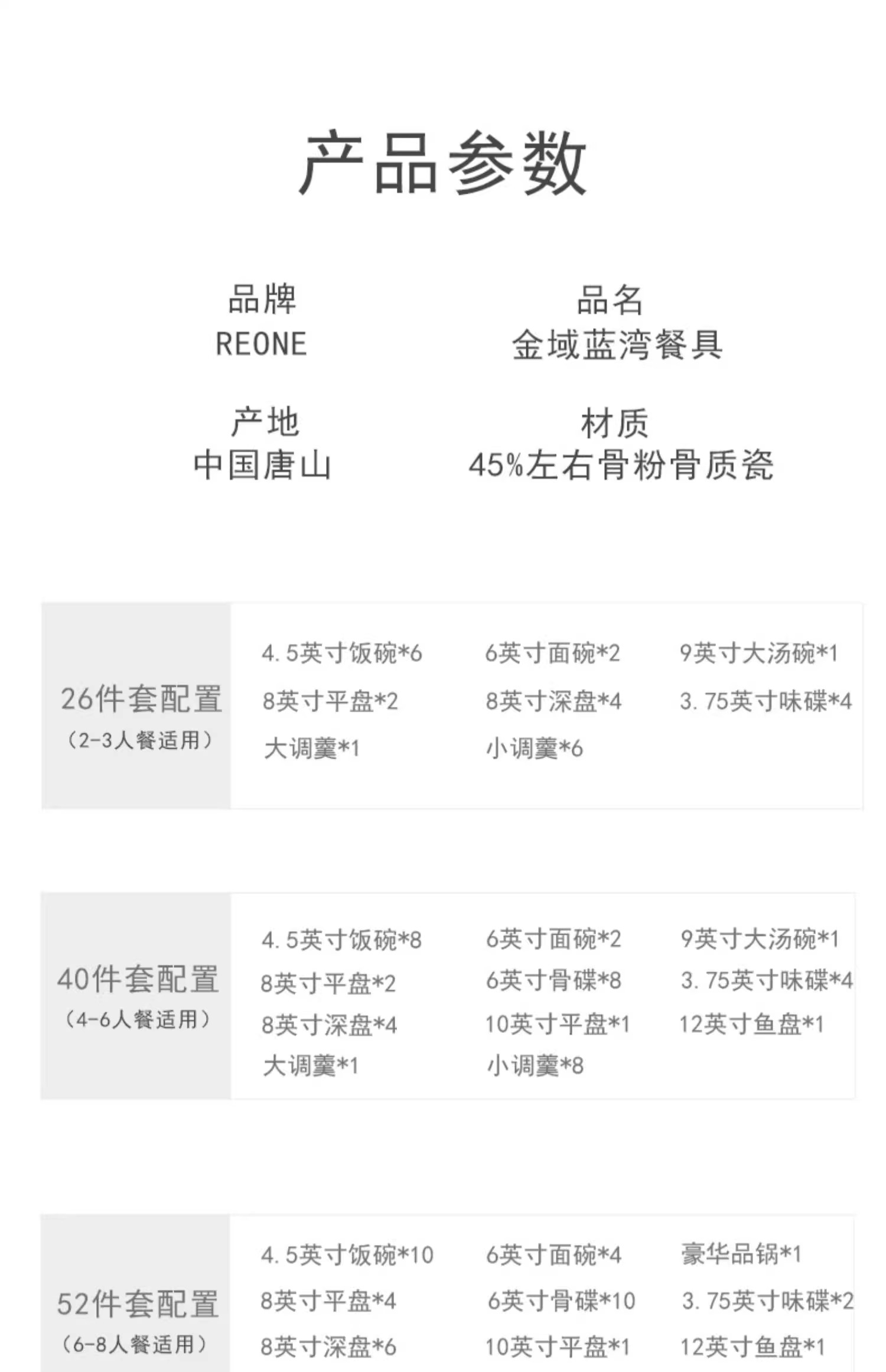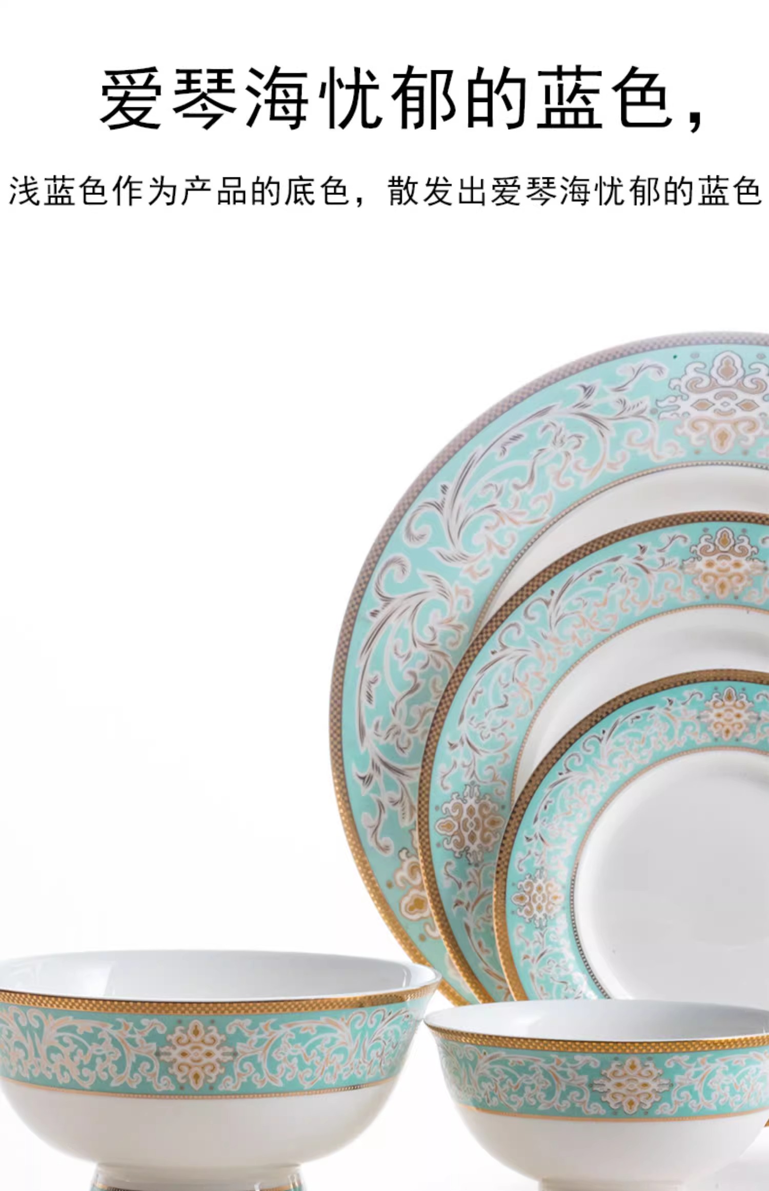 【样品特惠5.5折,无原包装仅1套,无货退款】雷澳娜高档骨瓷餐具碗碟套装家用欧式金边碗盘结婚礼品金域蓝湾10人用52头中餐具【不支持补差,非质量问题不退不换】S