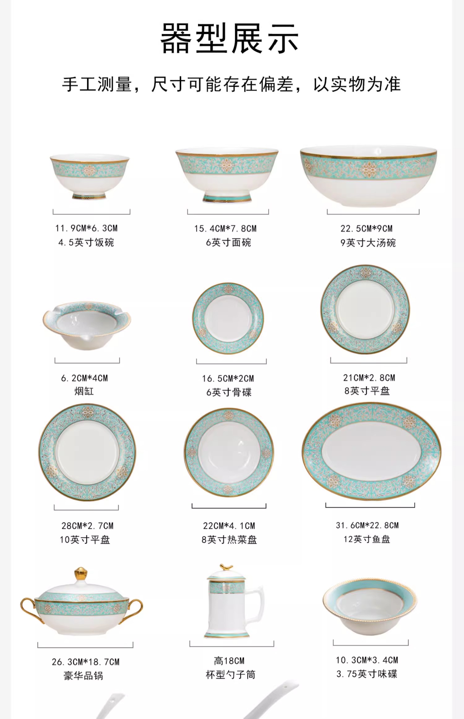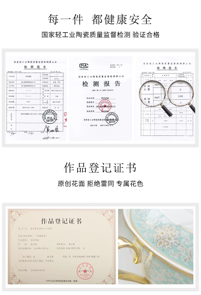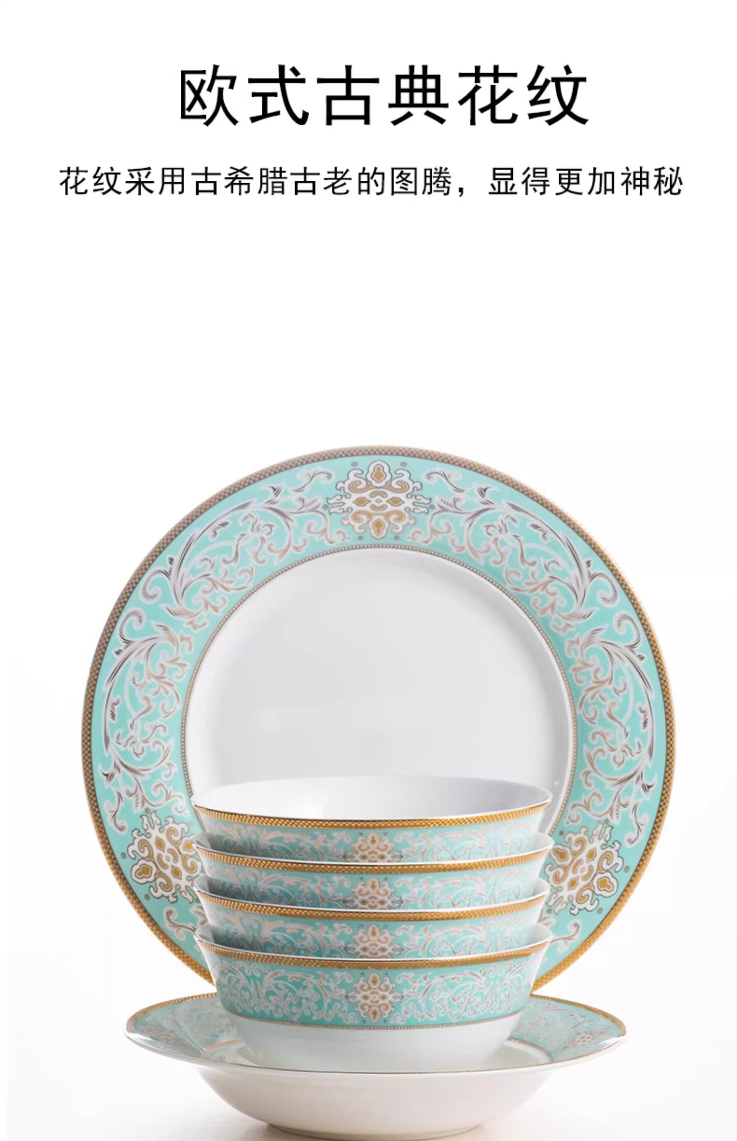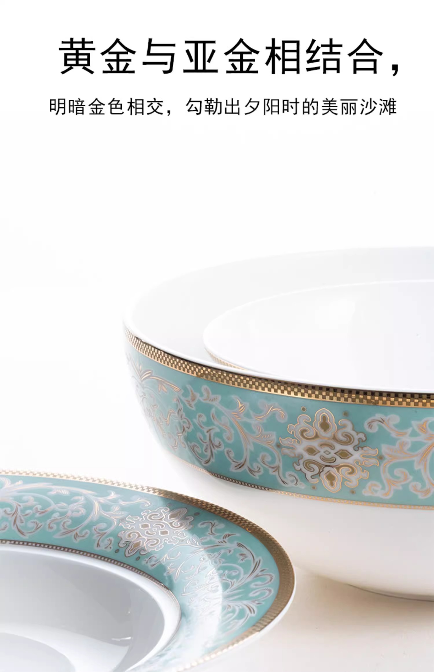 【样品特惠5.5折,无原包装仅1套,无货退款】雷澳娜高档骨瓷餐具碗碟套装家用欧式金边碗盘结婚礼品金域蓝湾10人用52头中餐具【不支持补差,非质量问题不退不换】S