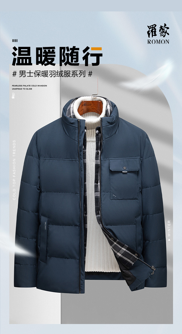 【可拆卸衬衫领】罗蒙秋冬男装时尚假两件男士羽绒服休闲百搭羽绒服男舒适保暖男士外套