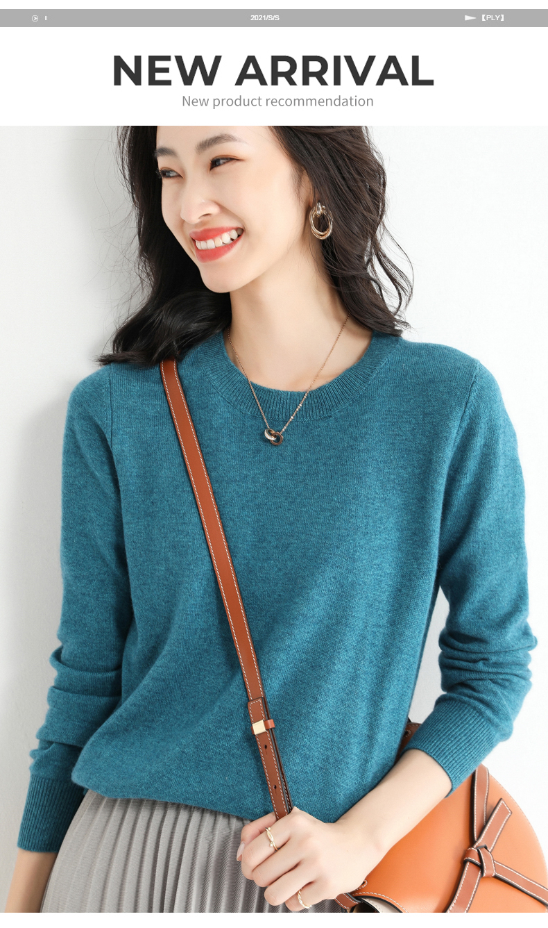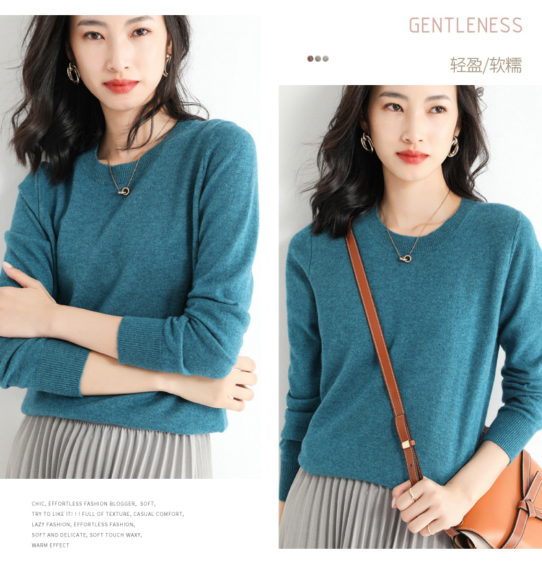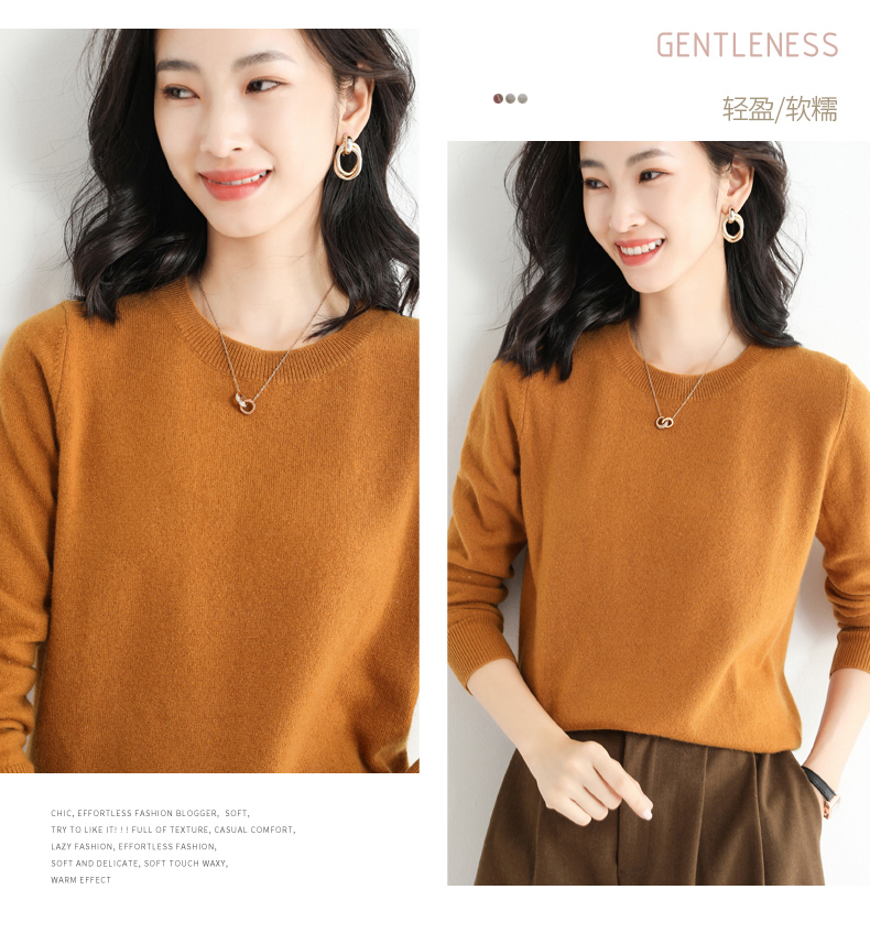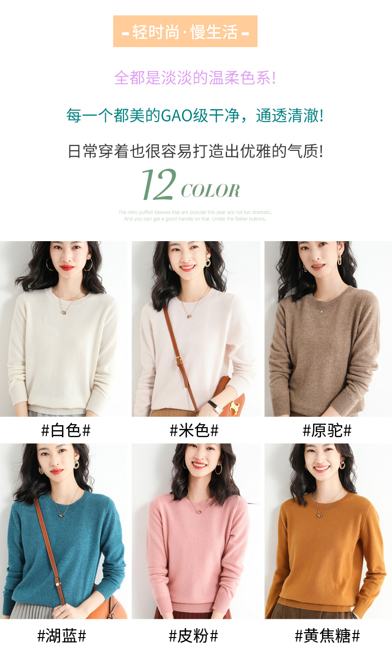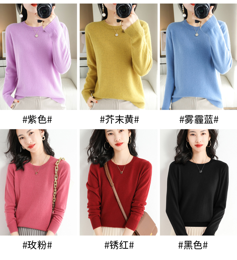 秋季新款新品秋冬季新款套头毛衣女修身纯色针织衫长袖圆领打底短款