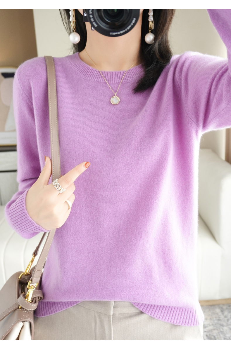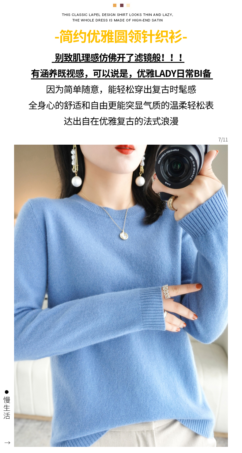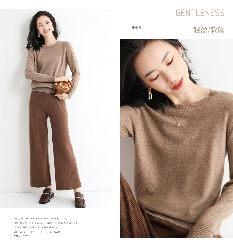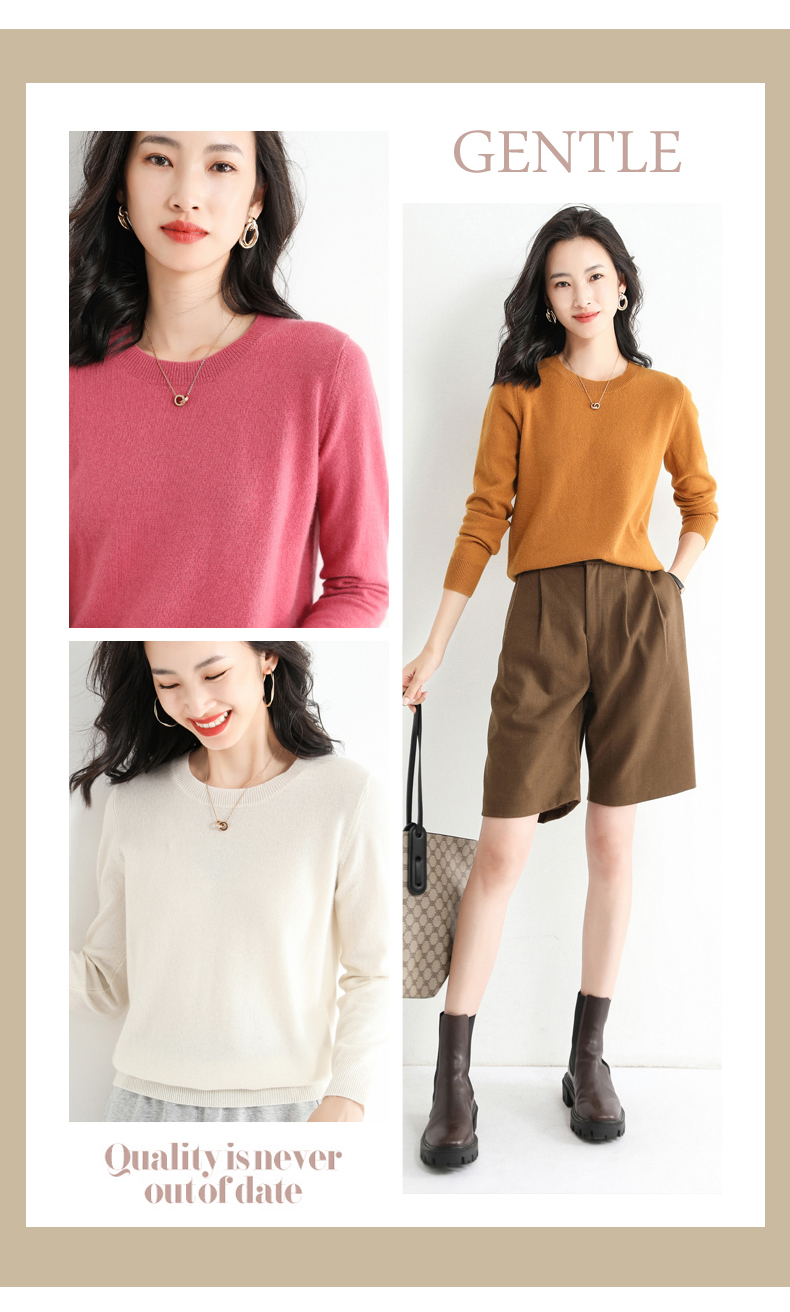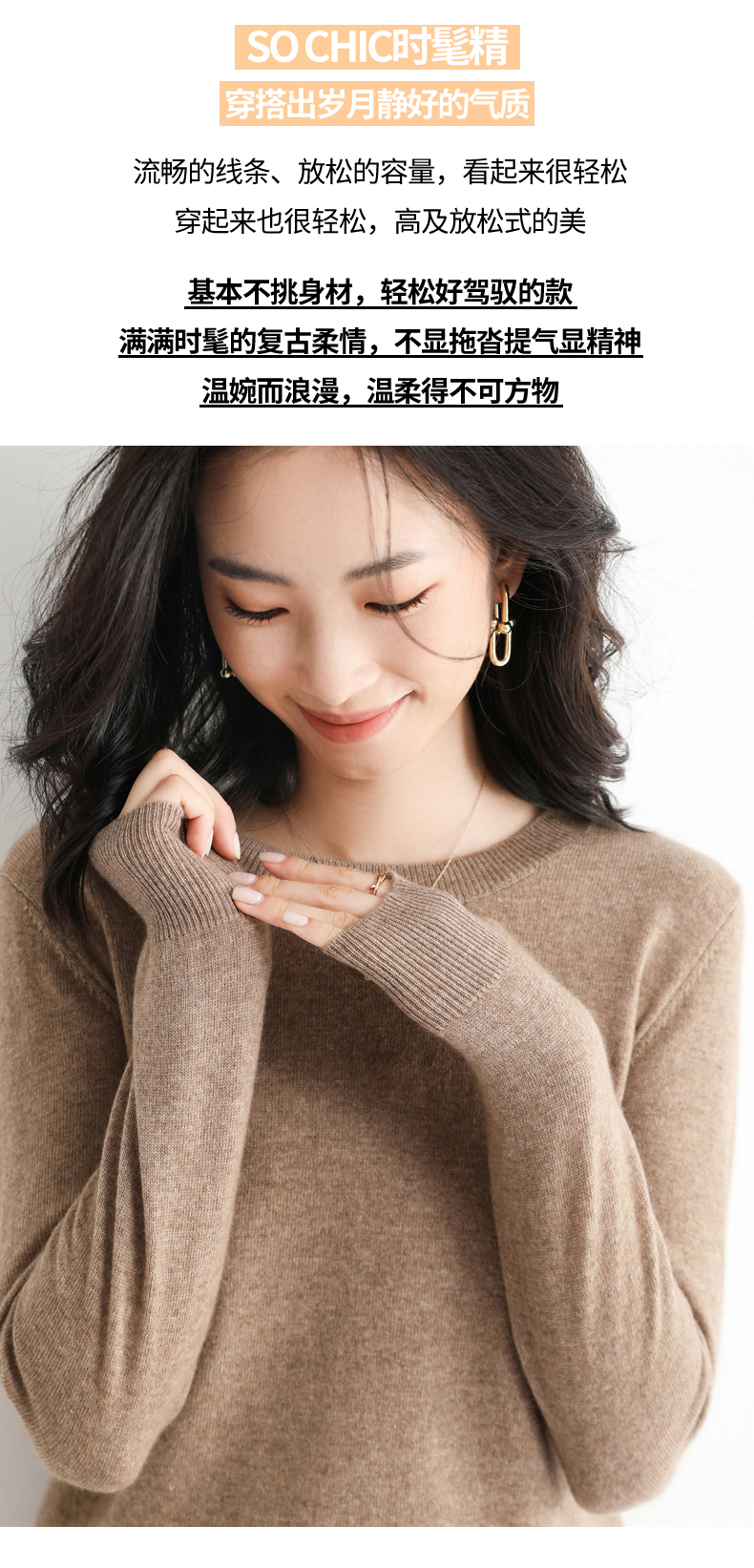 秋季新款新品秋冬季新款套头毛衣女修身纯色针织衫长袖圆领打底短款