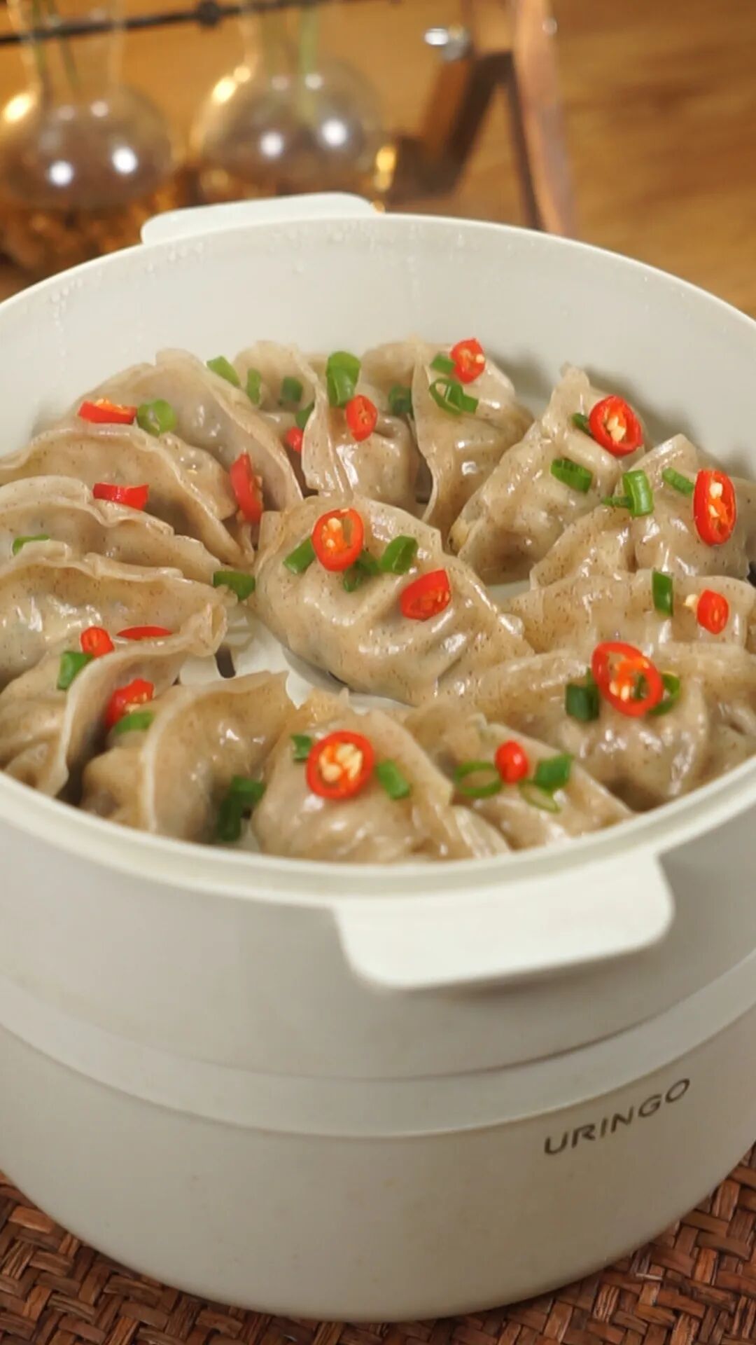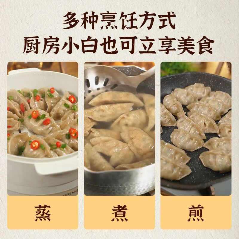 ①蒸 → 在蒸锅内加入1/3的水,沸腾之后,拿出蒸饺,无需解冻,放在蒸屉上中火蒸7-9分钟即可。