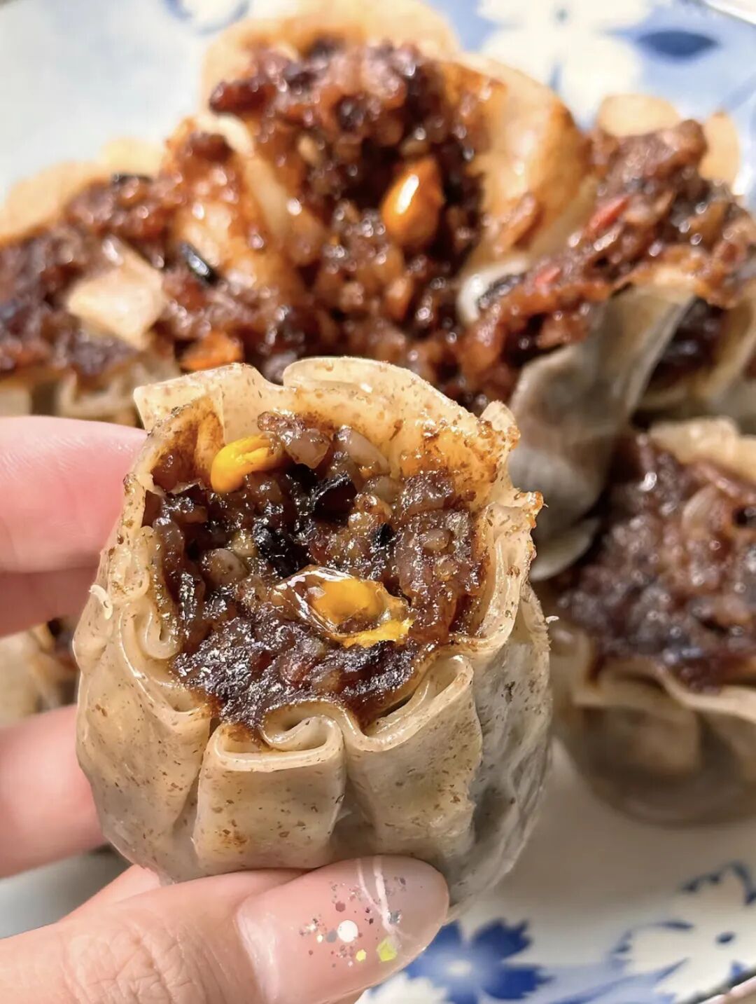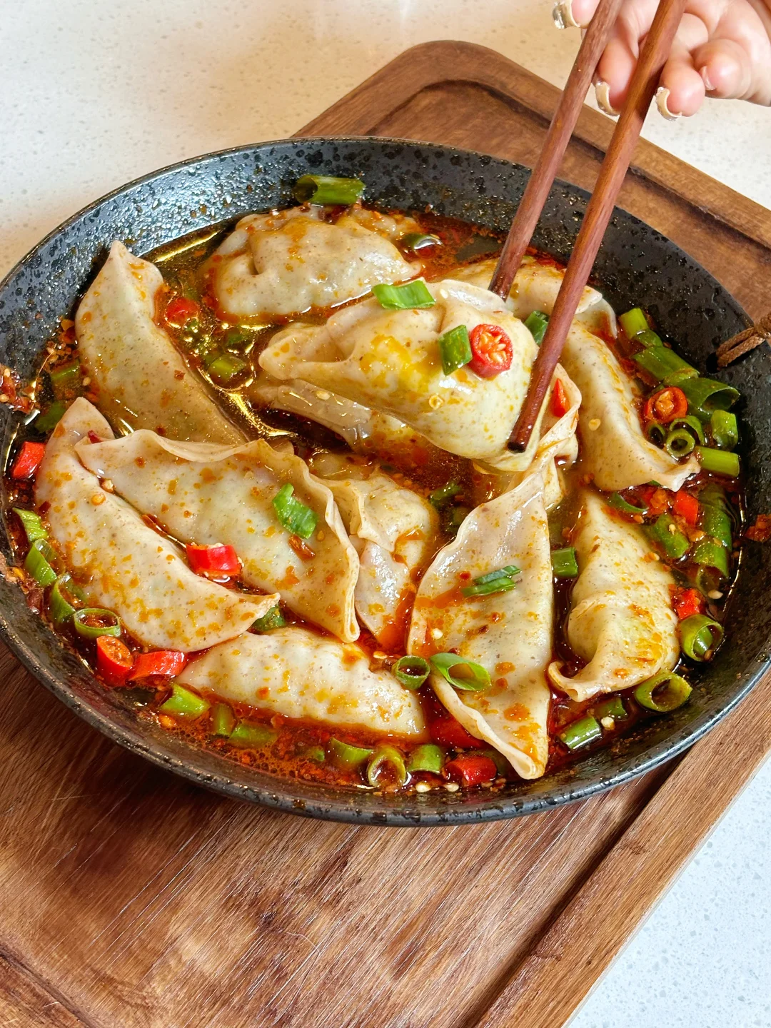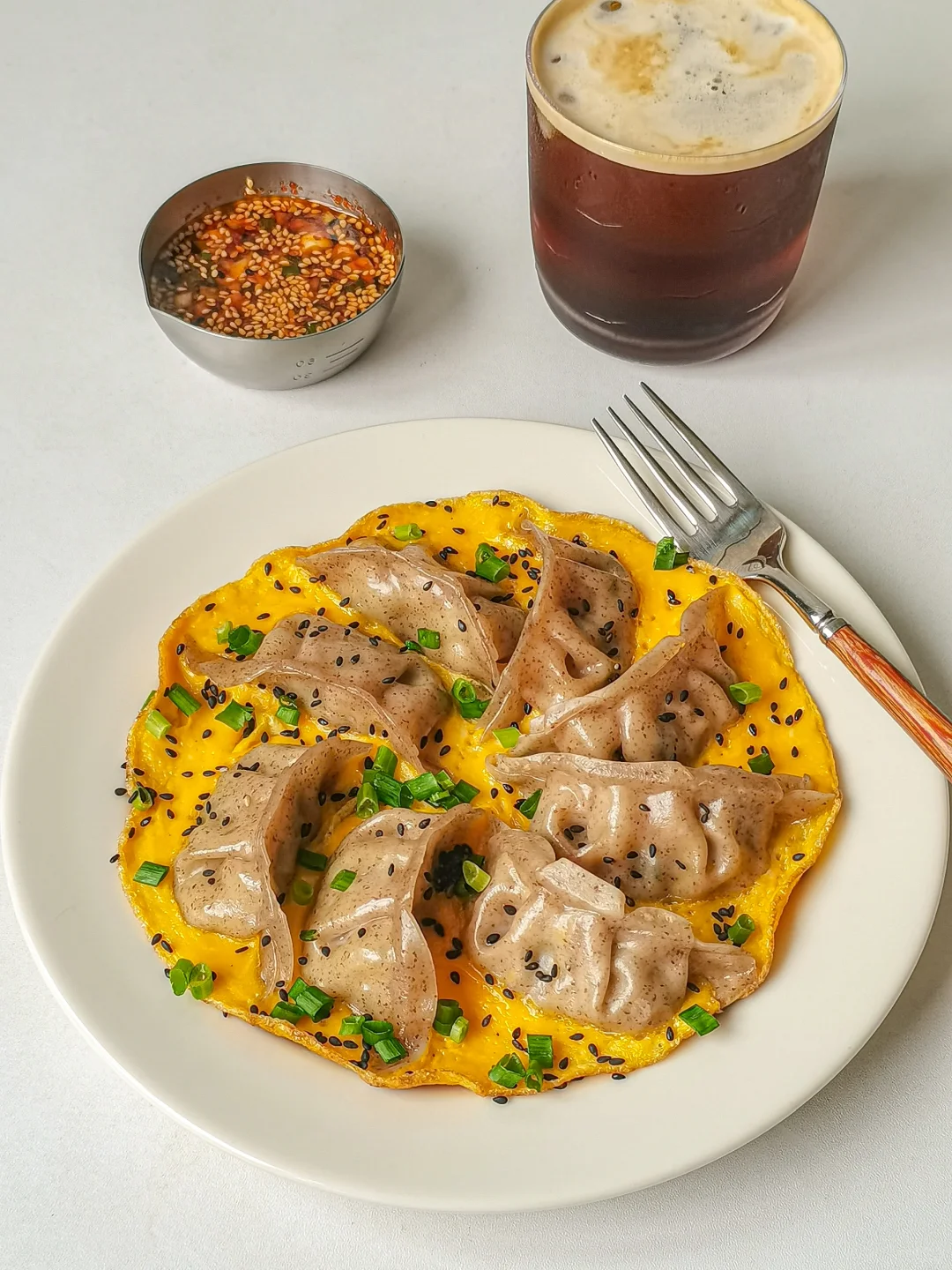 ④煎 → 将平底锅大火预热,锅底刷少许油,无需解冻,将蒸饺放入锅中,中火煎 1-2分钟底部呈浅金黄色。