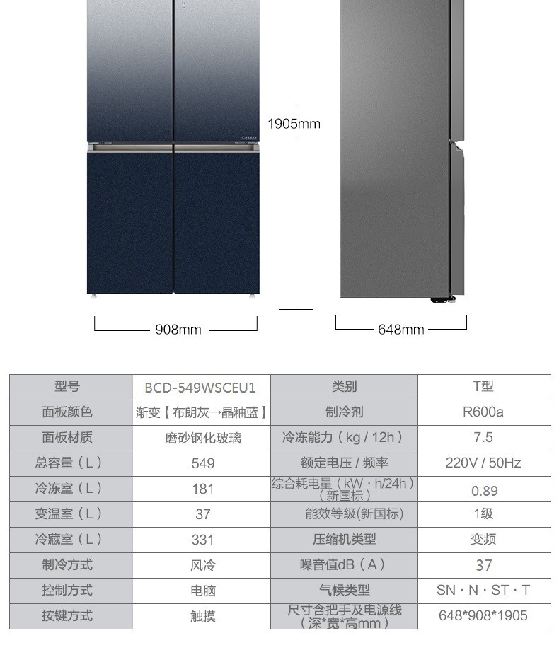 海尔冰箱十字对开门四门双开多门大容量双变频风冷无霜BCD-549WSCEU1