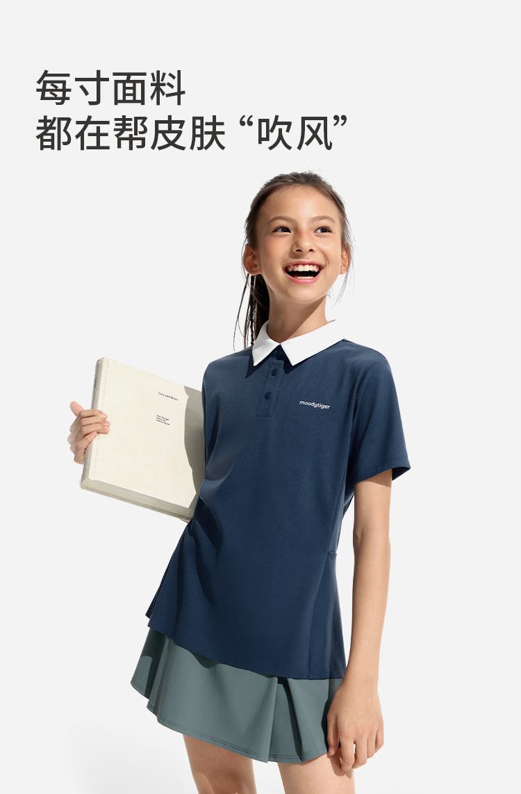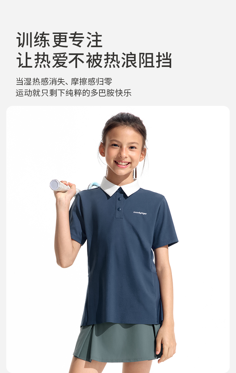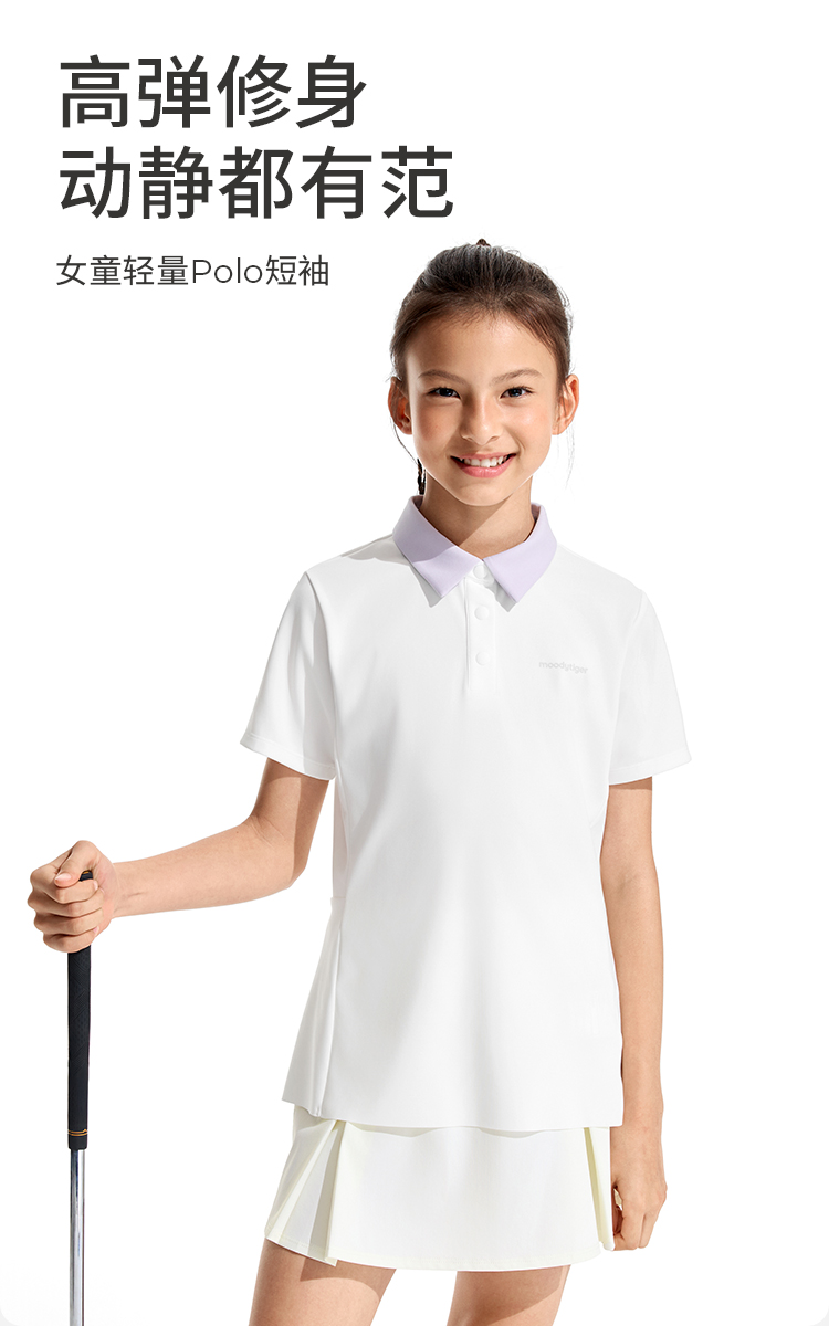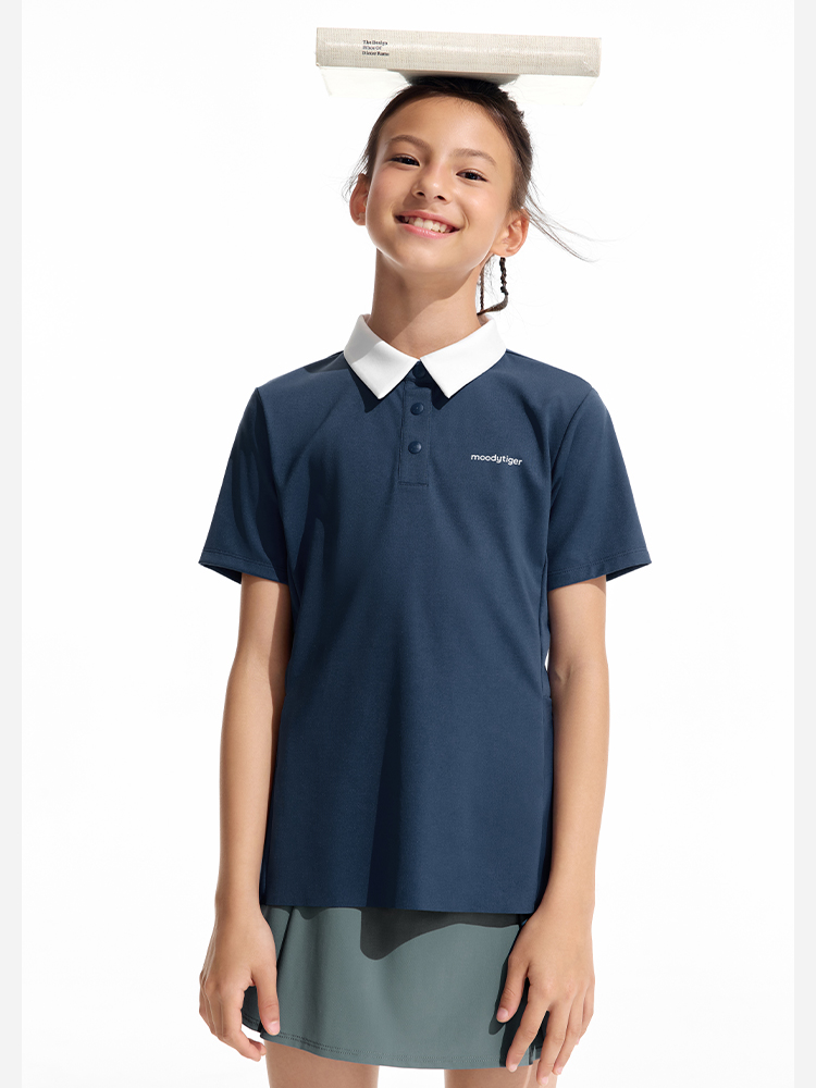 moodytiger女童轻量Polo短袖运动休闲翻领简约舒适62214103