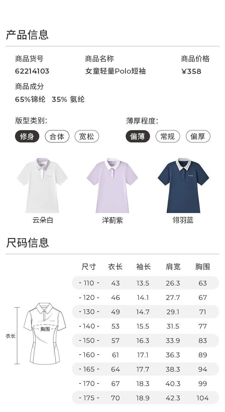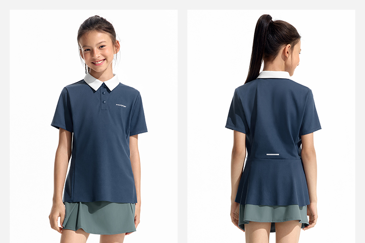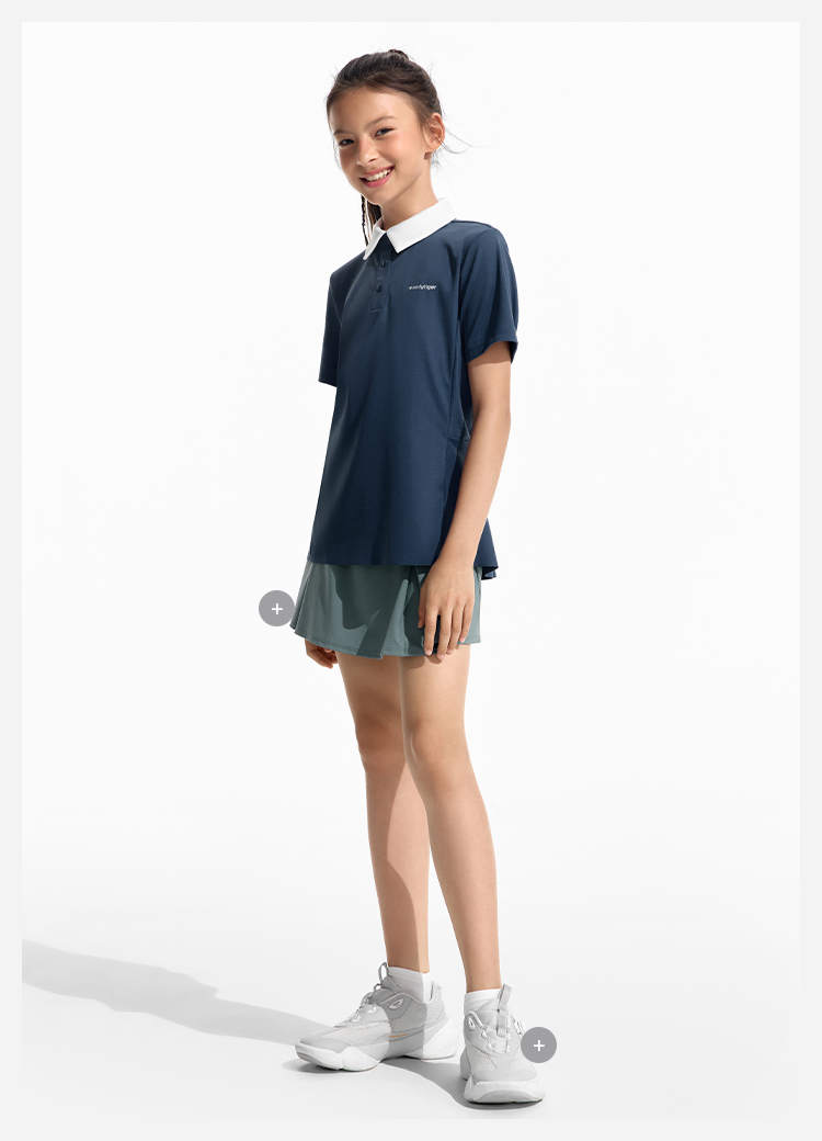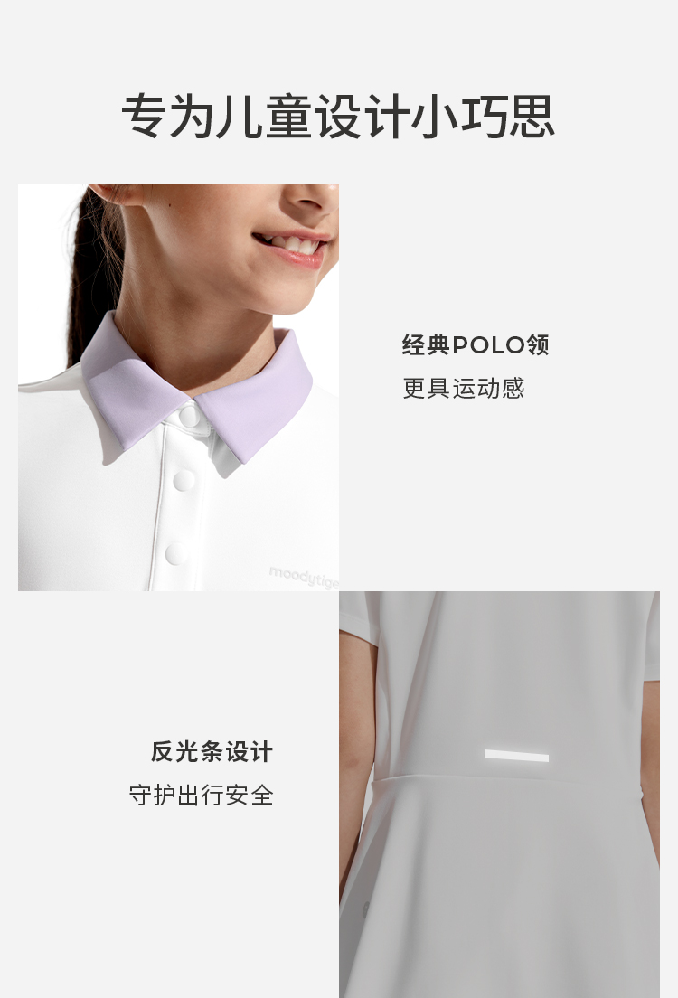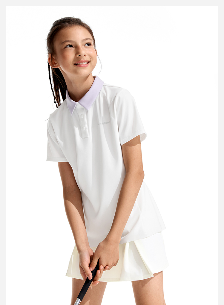 moodytiger女童轻量Polo短袖运动休闲翻领简约舒适62214103