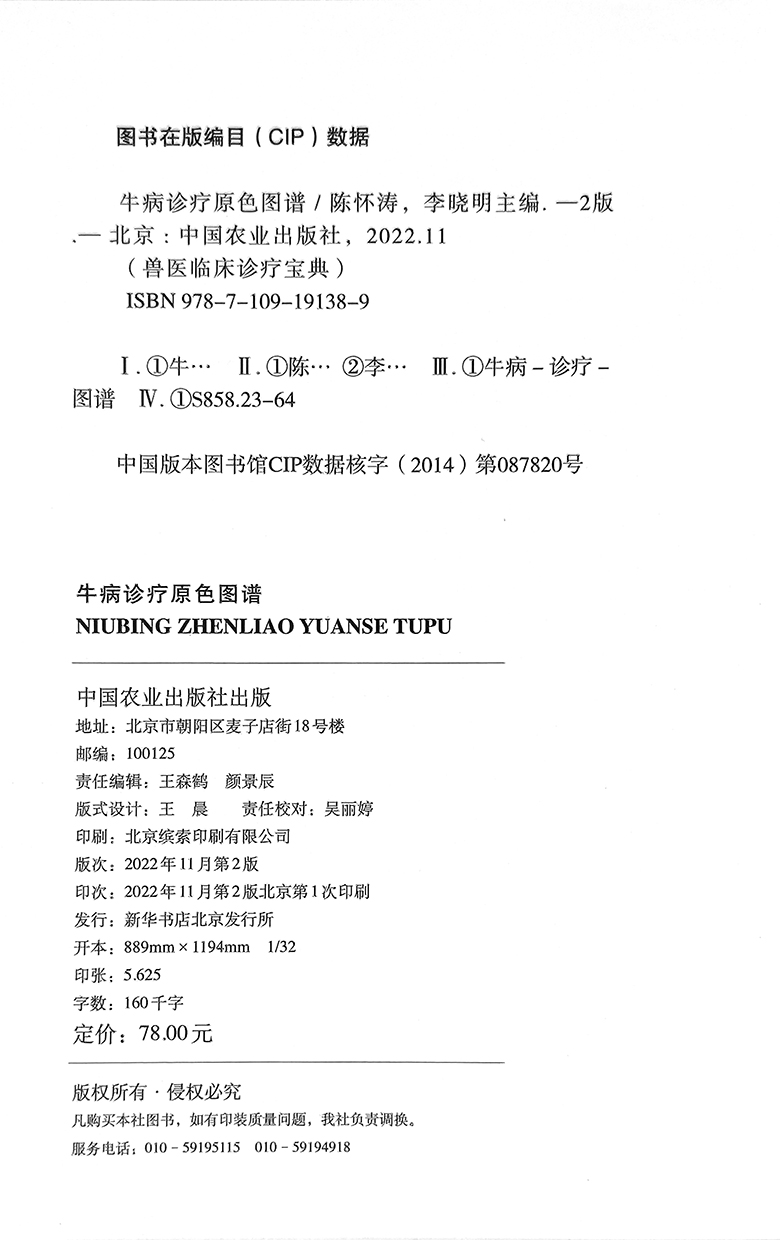 兽医临床诊疗宝典:牛病诊疗原色图谱 第二版 陈怀涛 李晓明 主编. 19138