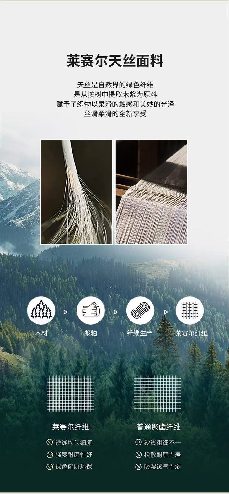 天丝是奥地利兰精公司的”王牌“,它被“会呼吸的纤维”,比棉更吸湿、比麻更清凉,是非常适合夏天的面料。