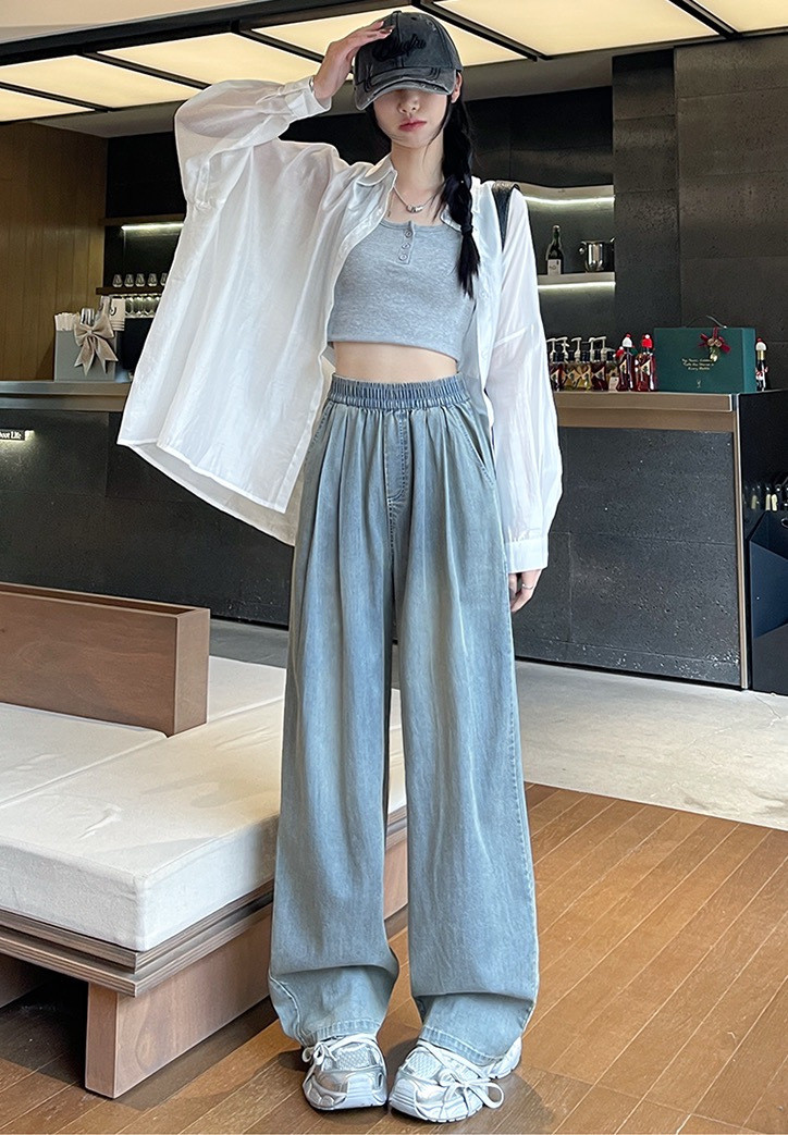 天丝还有着很好的透气吸湿性,配上宽松的裤腿,凉快不捂汗,很适合燥热的夏天穿~